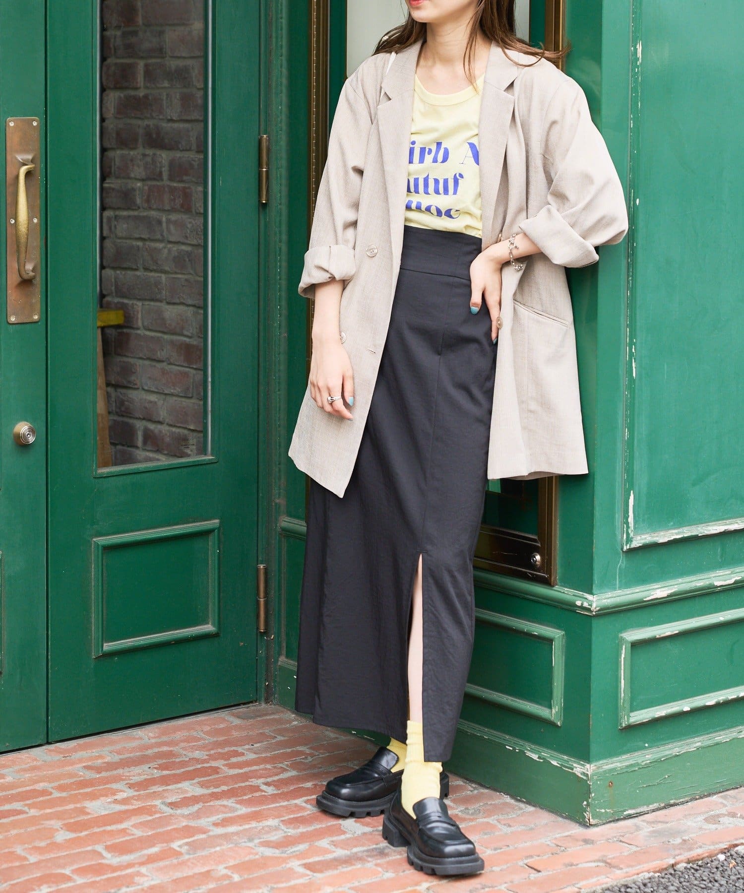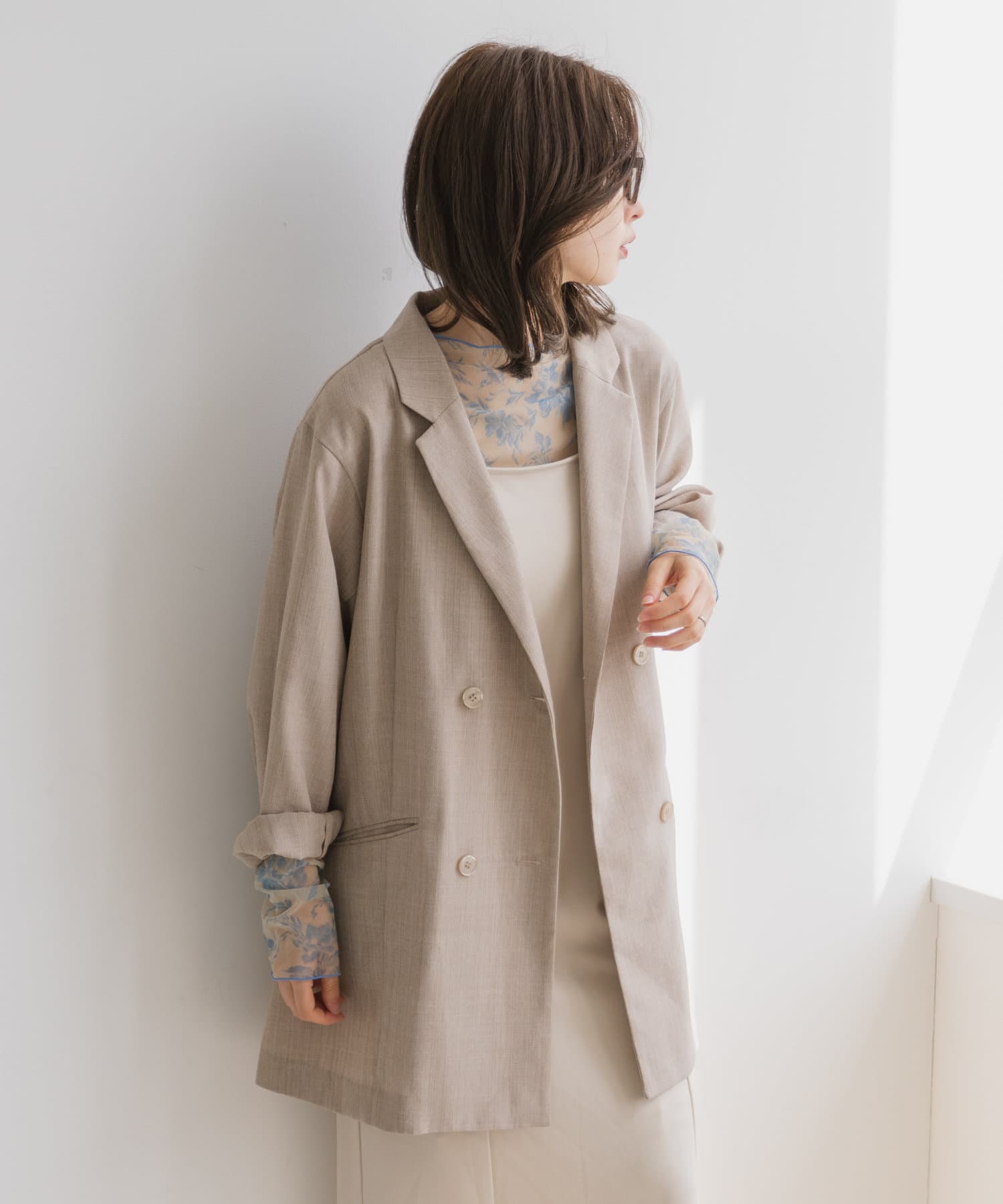 薄手で軽いのでササっと羽織るのにぴったり!オーバーサイズでゆるっと着ることができるので、堅い印象にもならず可愛いです。