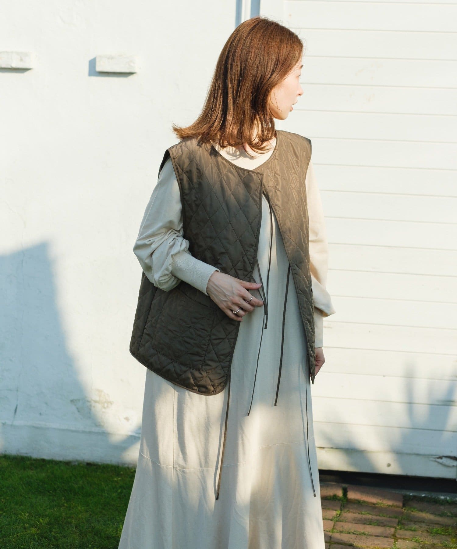 ベストの重ね着は、袖ももたつかず今年らしさが演出出来て◎