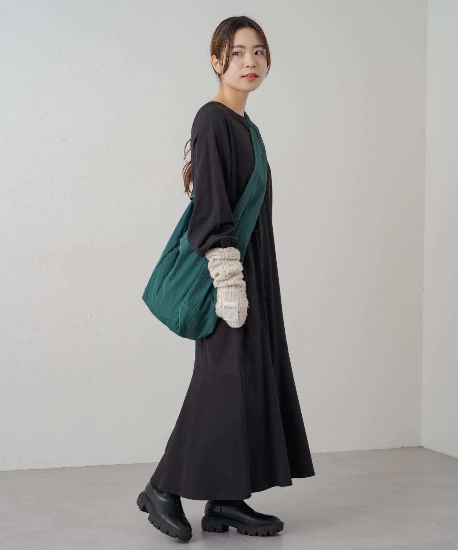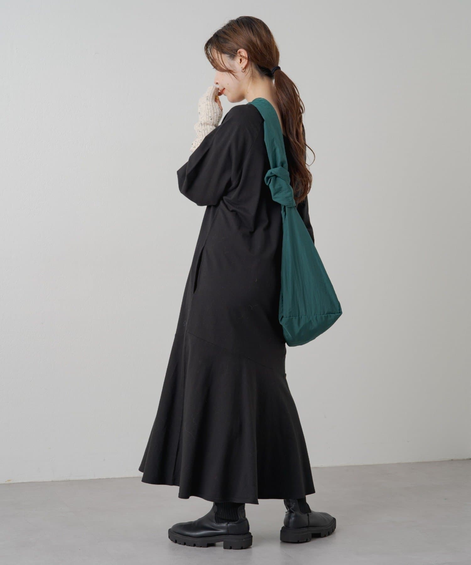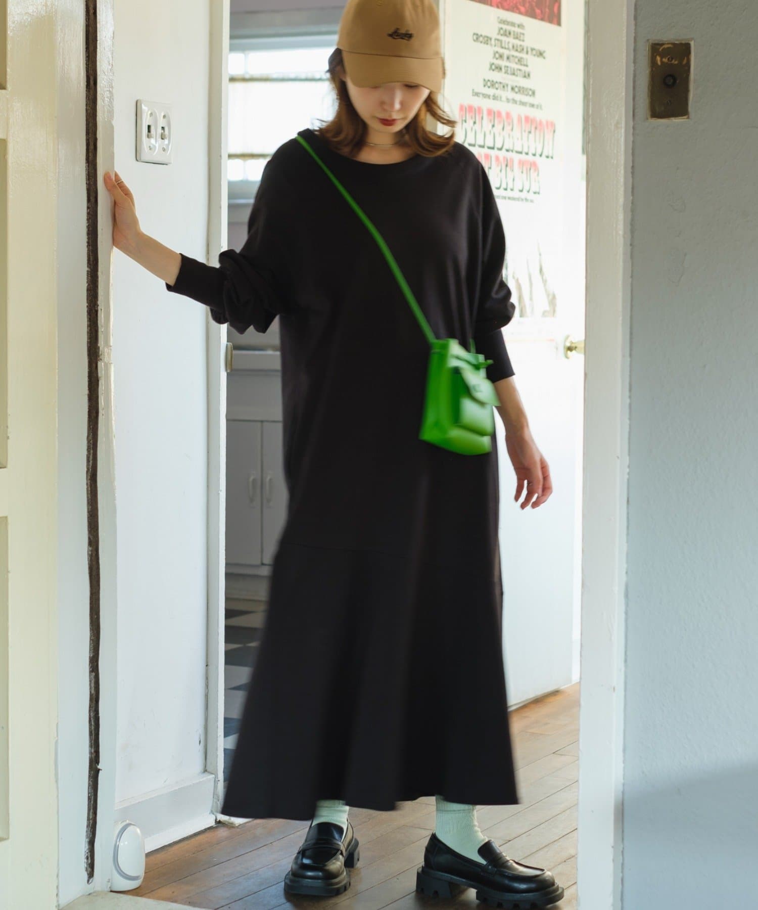 首元の開き具合や裾のマーメイドシルエット等、ラフなのに女性らしさもあるワンピースでした。