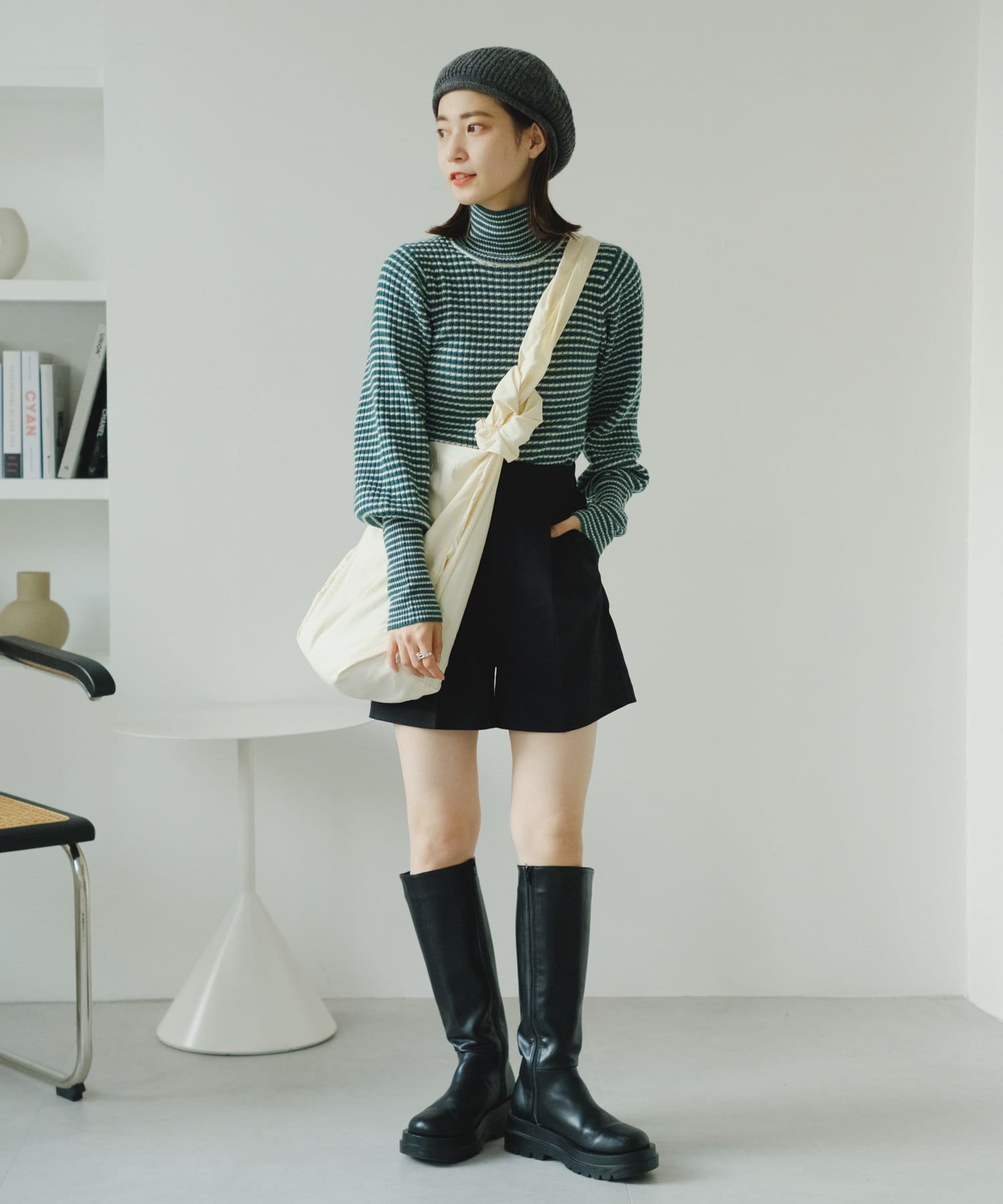 コーディネートのベースとなるシンプルなTシャツから、トレンドライクなハイネックデザインが登場。着心地のよさにもこだわり、柔らかな風合いのレーヨンコットン素材を使用しました。メインとしてはもちろん、インナーレイヤードにもおすすめ。着回しに役立つボーダー柄をご用意しました★