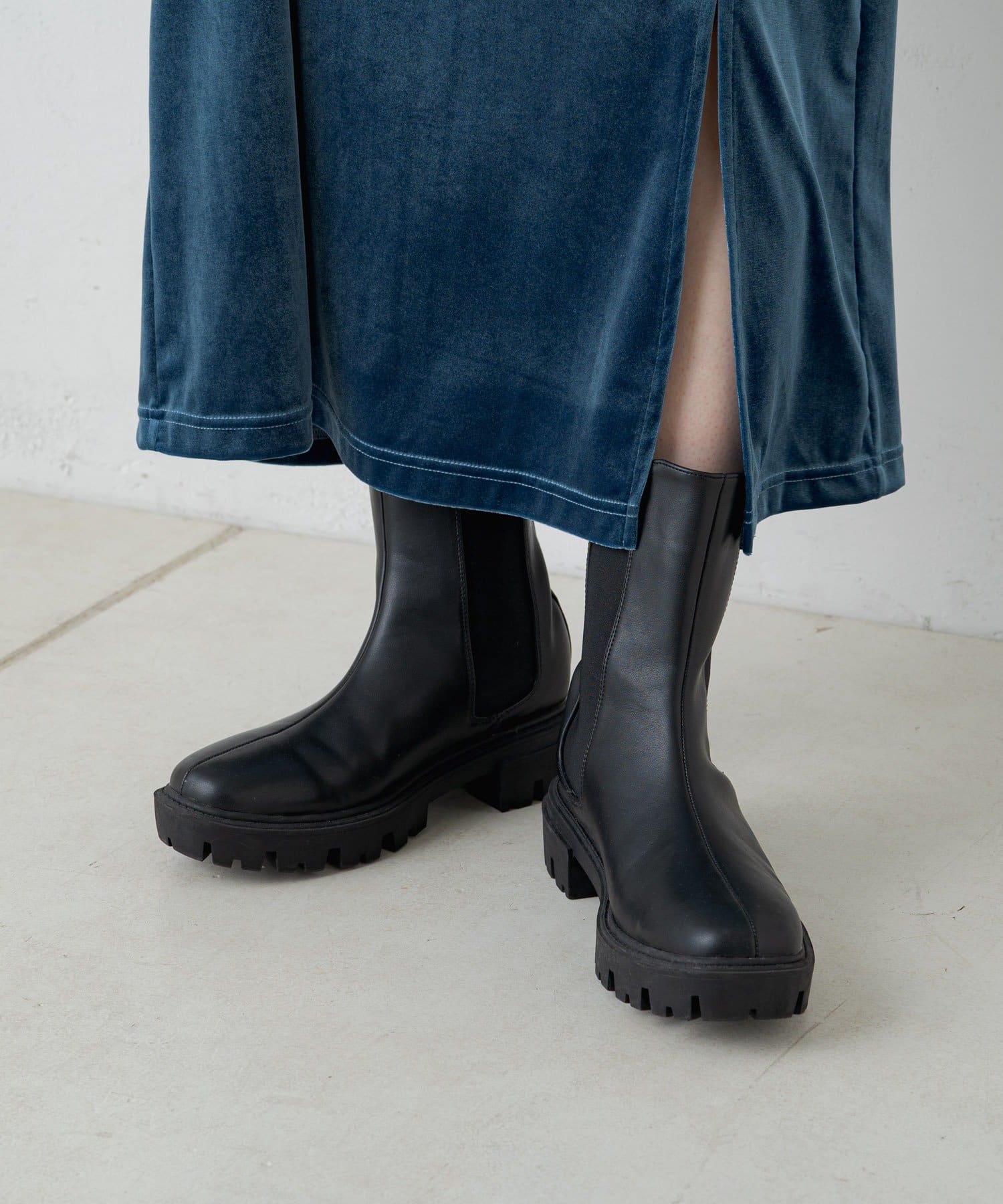 幅広いスタイリングに馴染む厚底ミドルブーツ