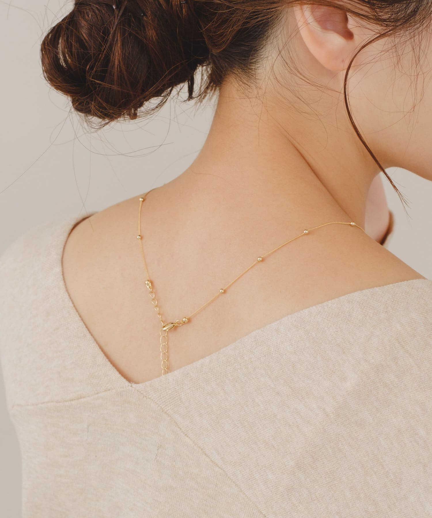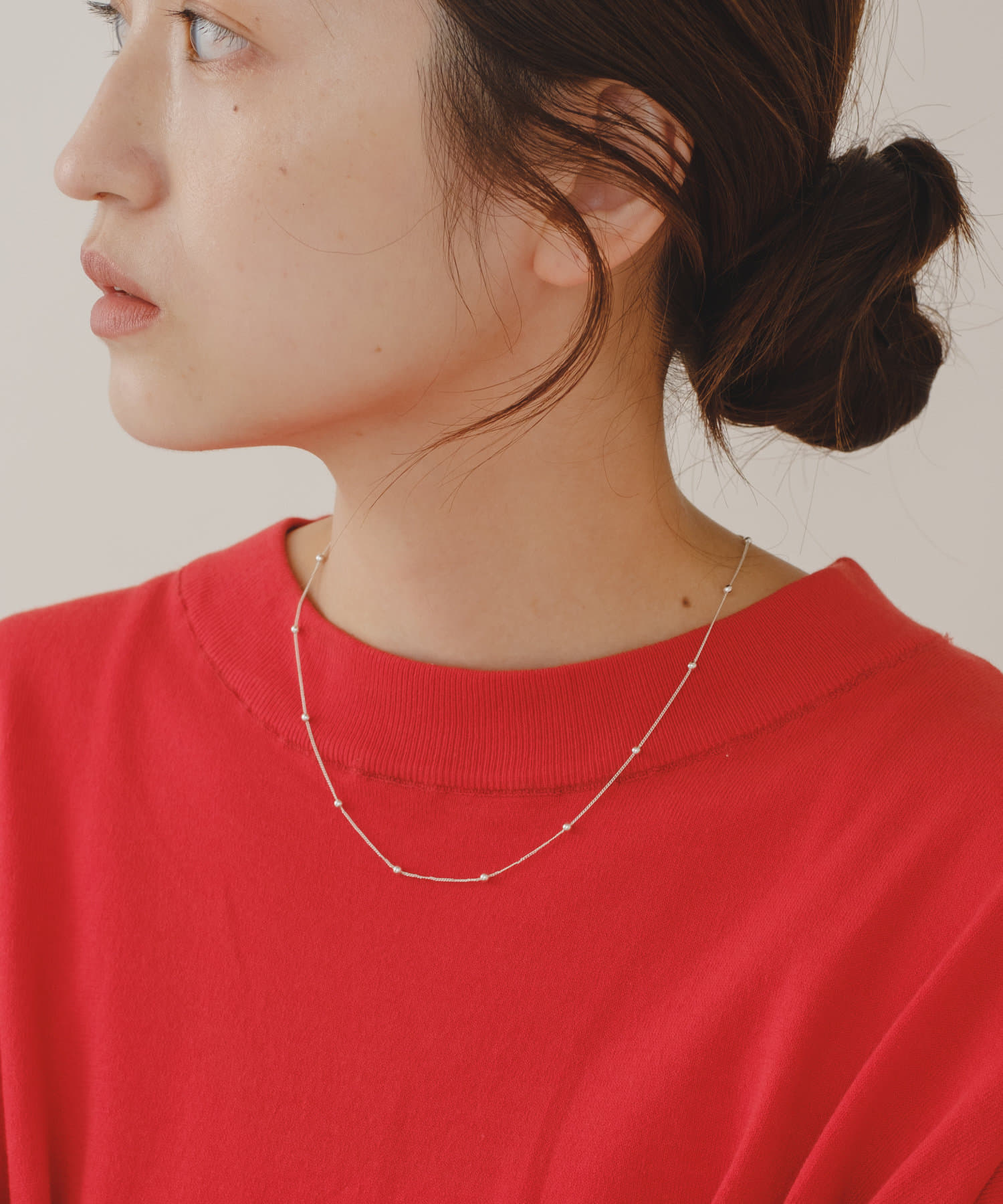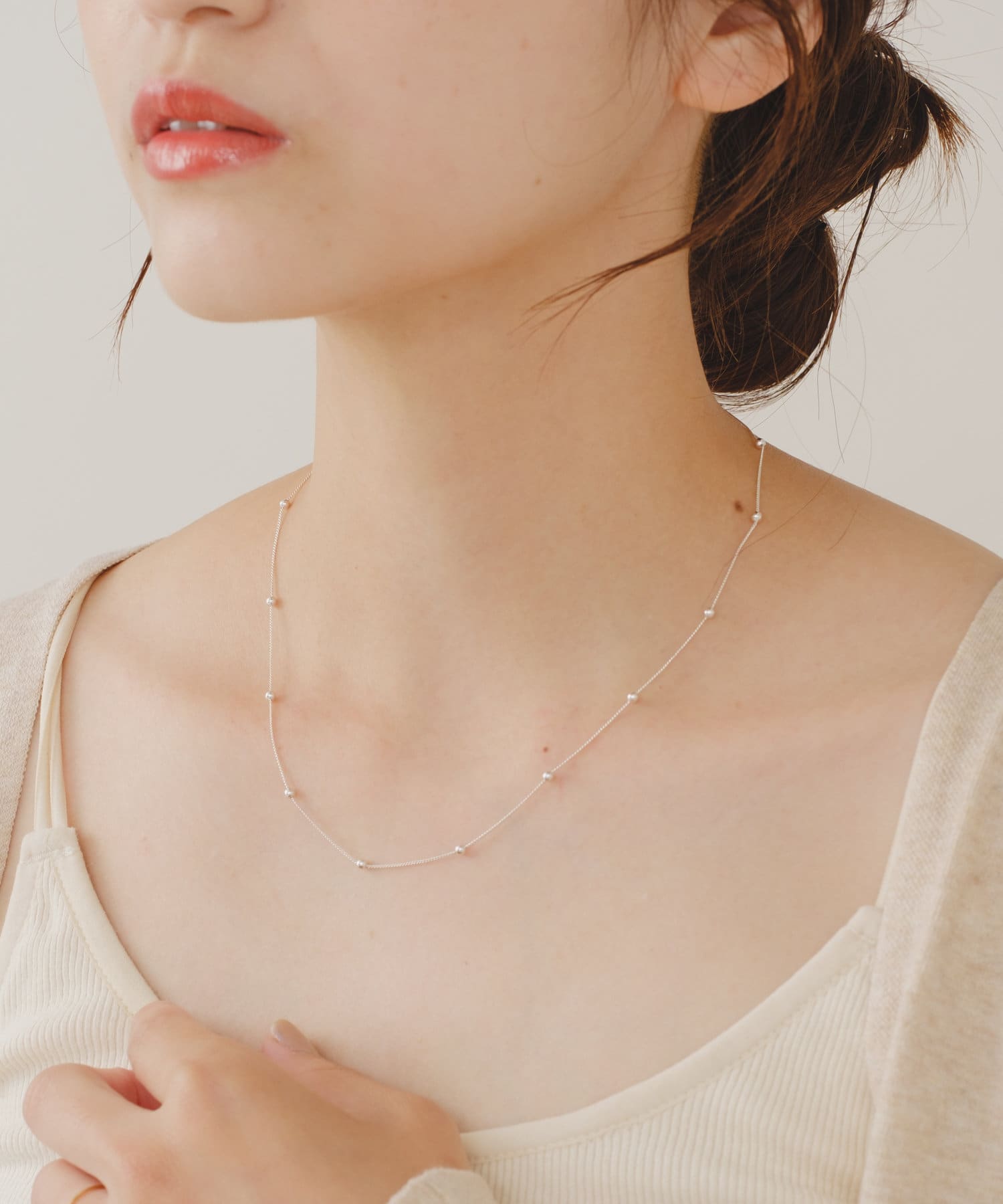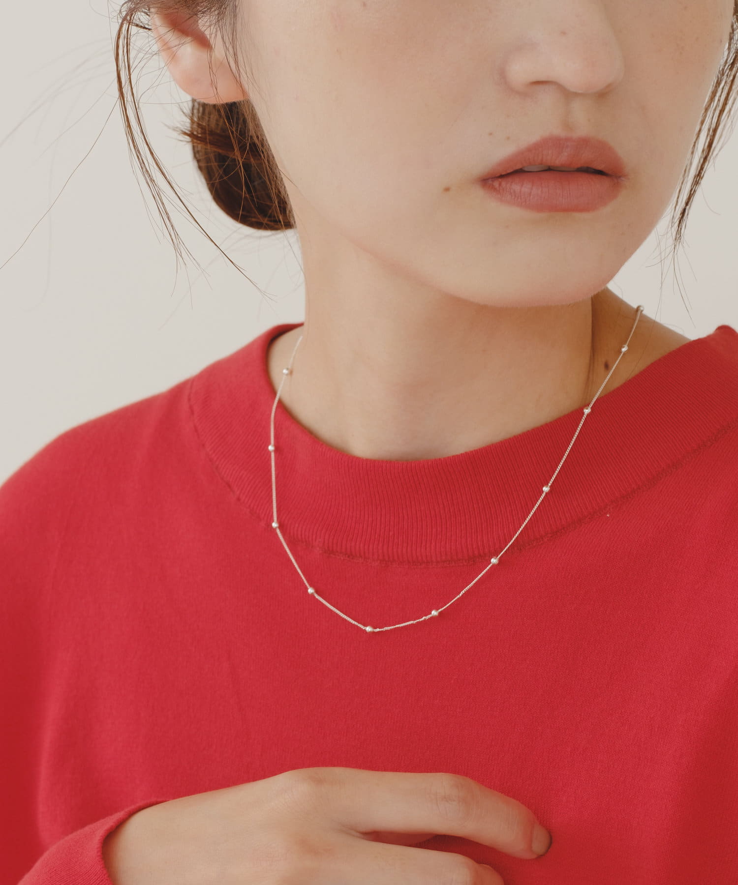 付けるだけでお顔回りを華やかに見せるドットチェーンネックレス