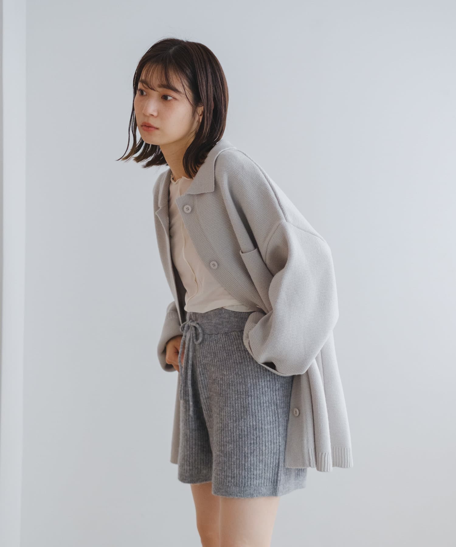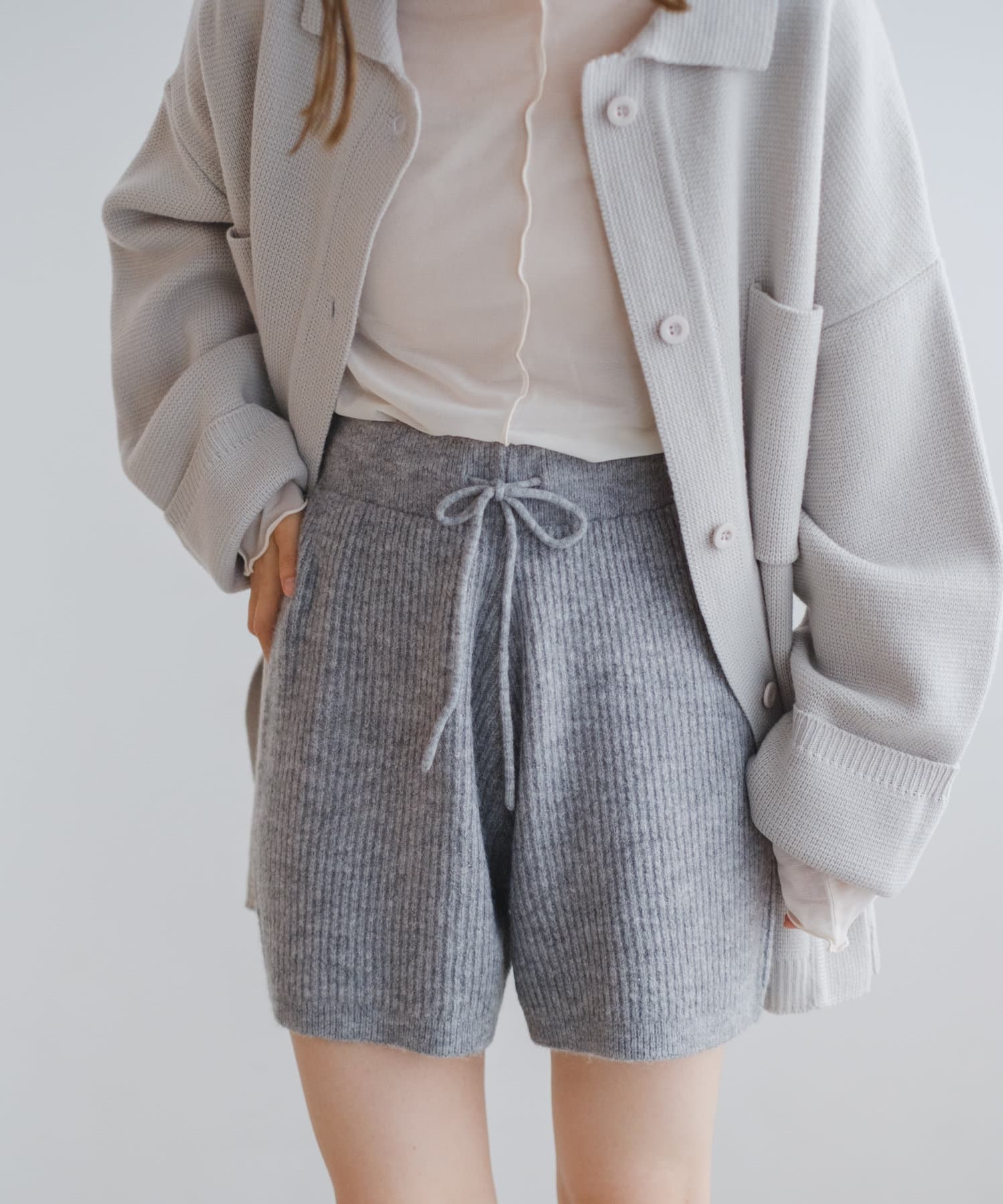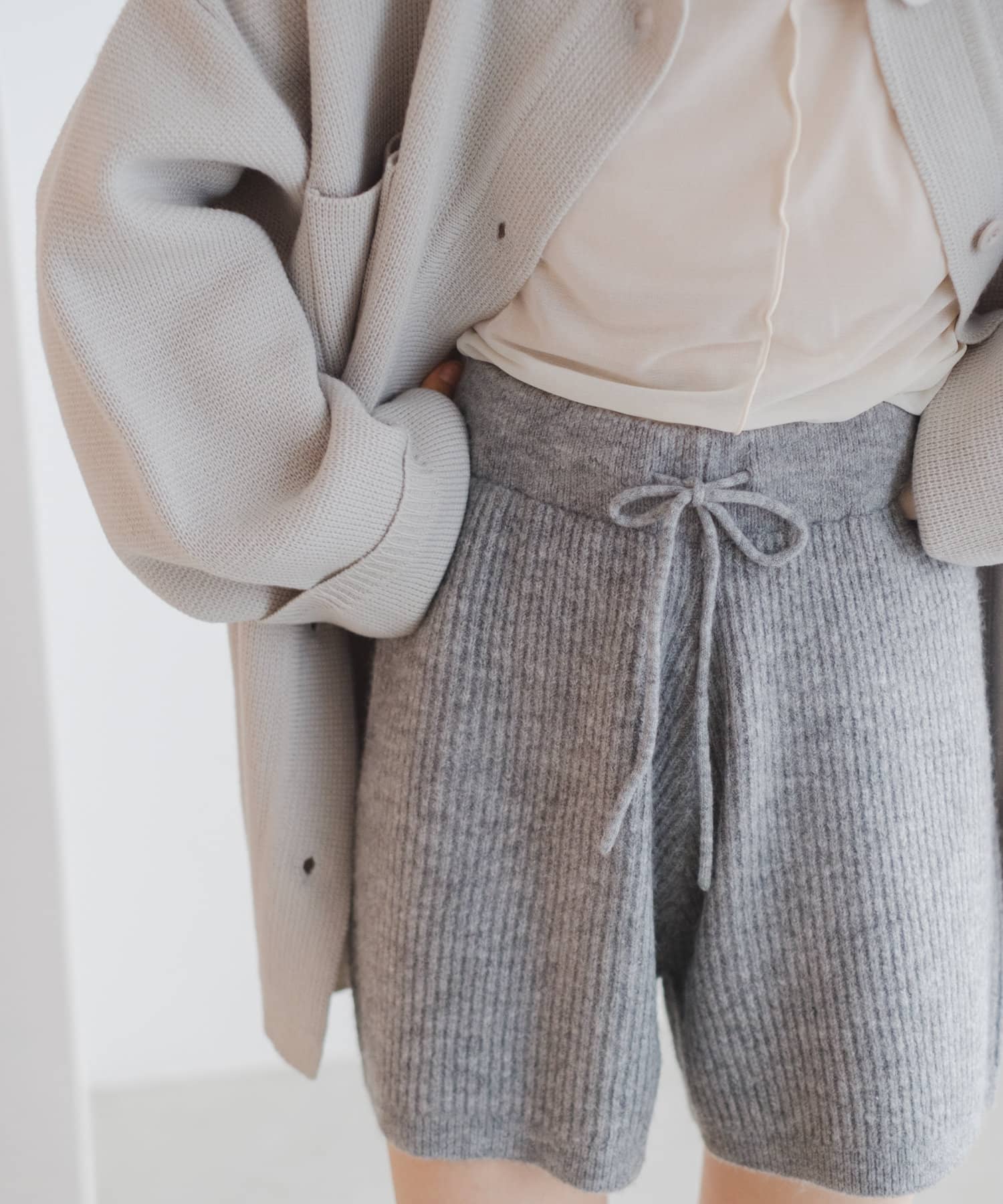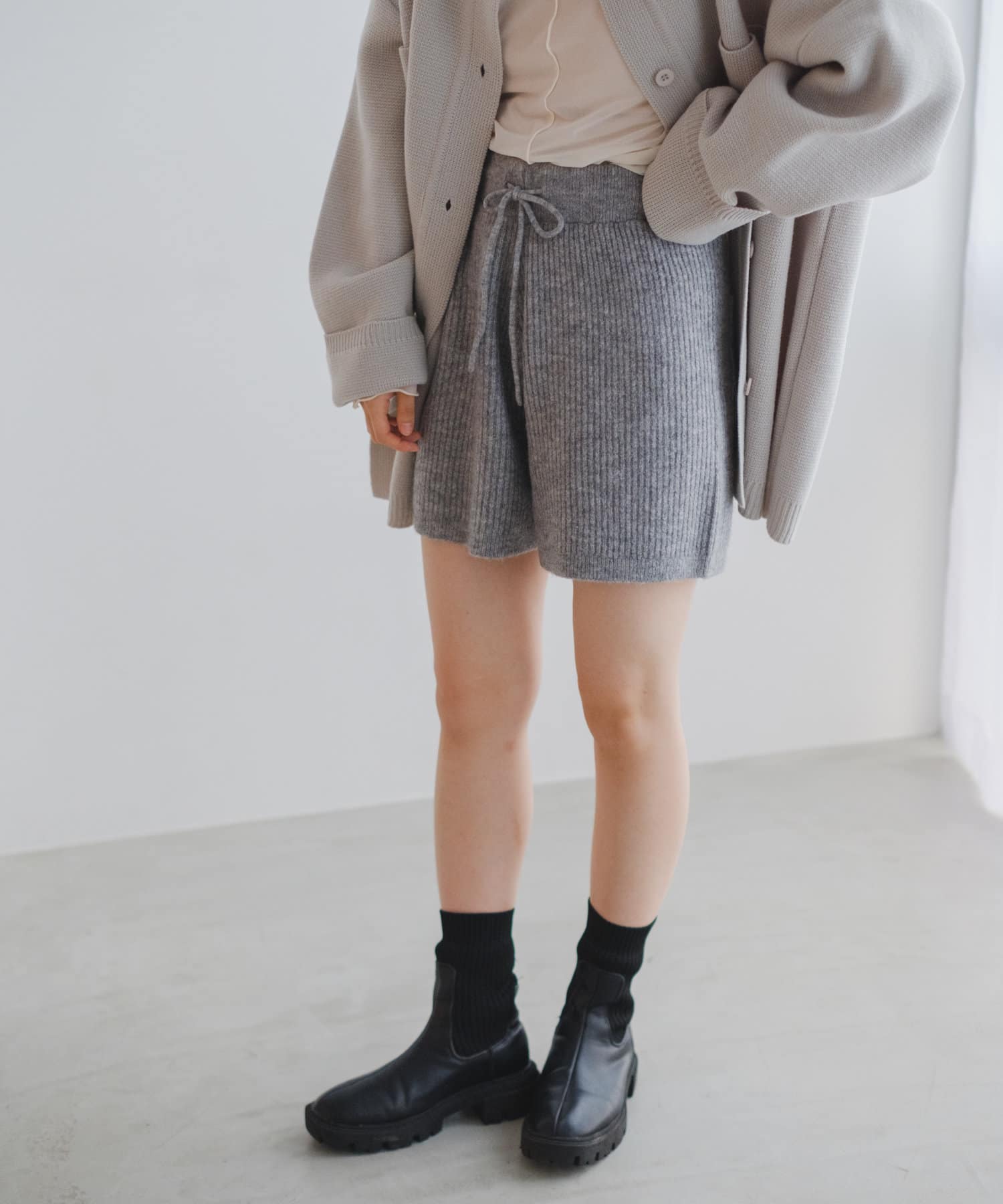 リブニット素材のショートパンツはこれからの時期にぴったり。
