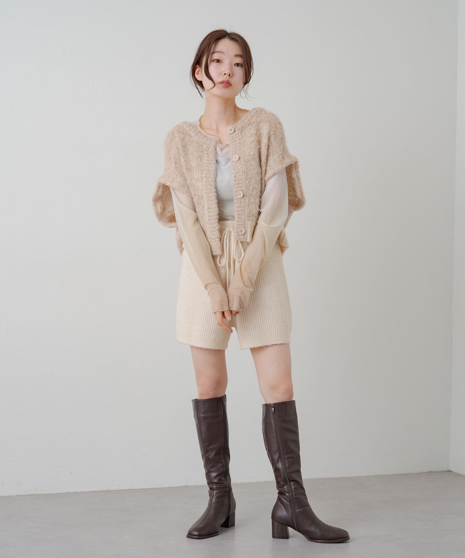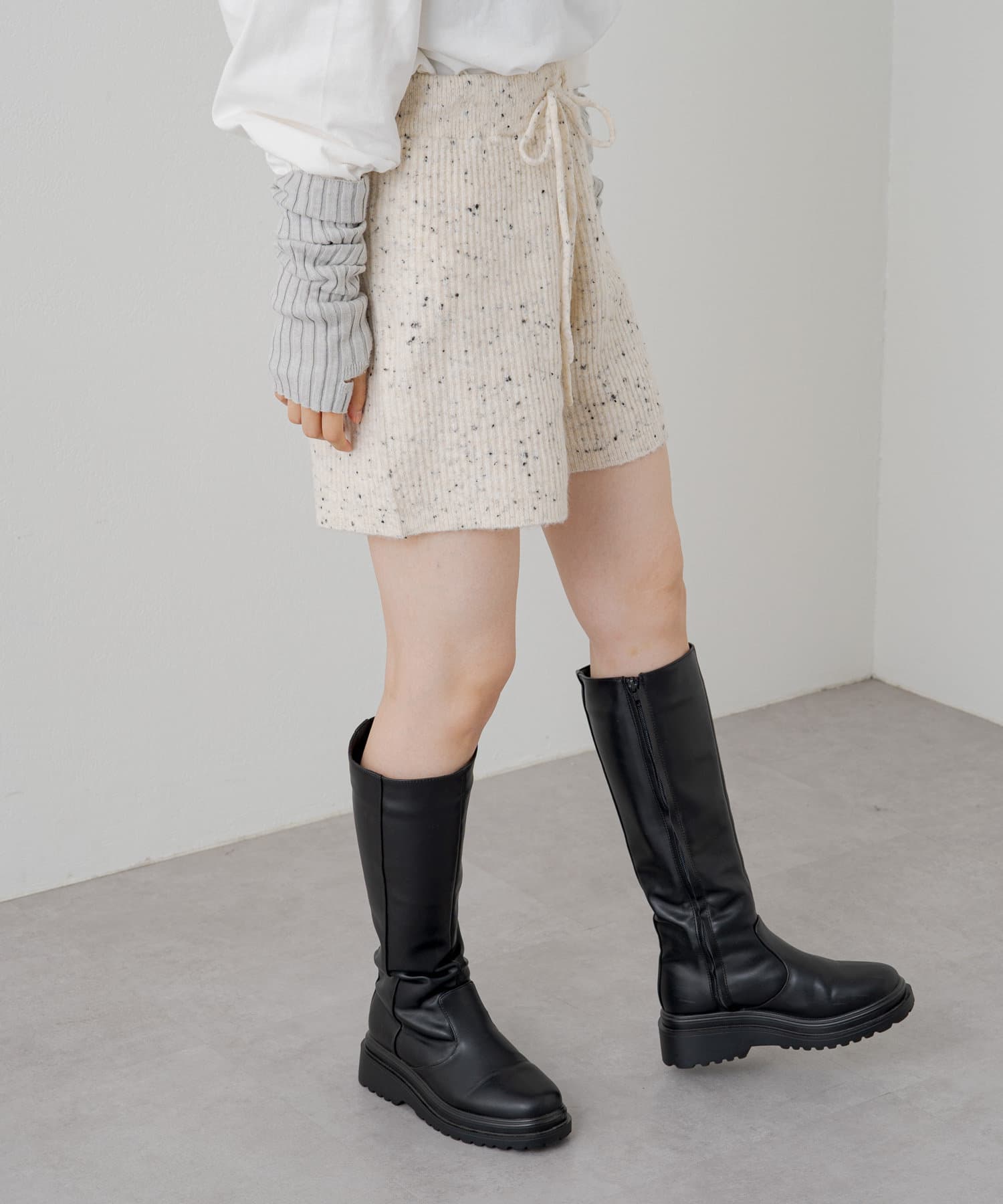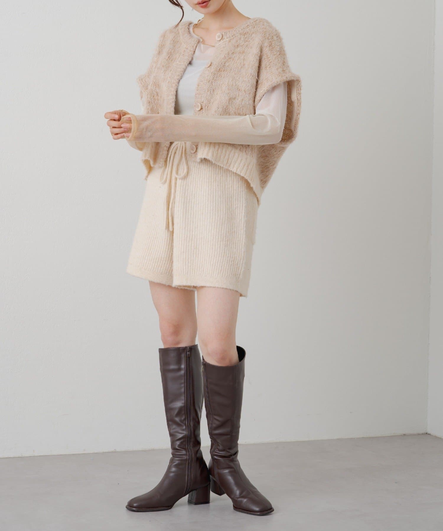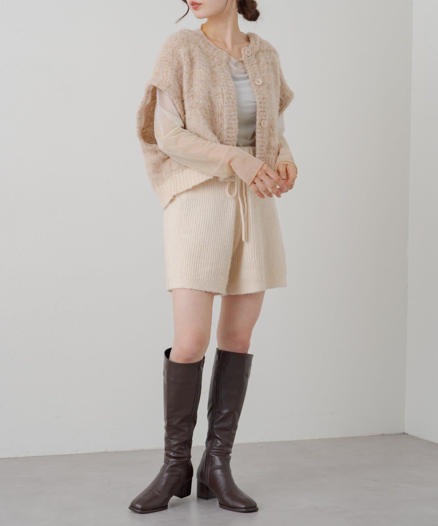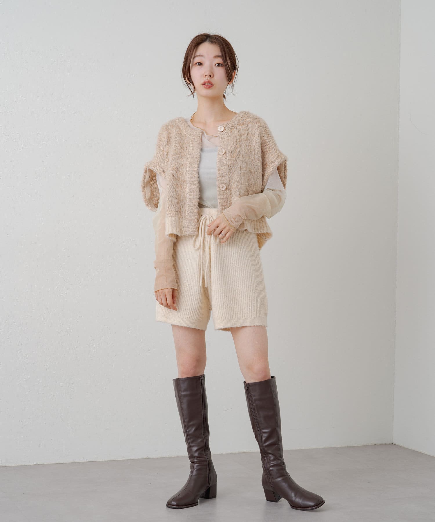 リブニット素材のショートパンツはこれからの時期にぴったり。