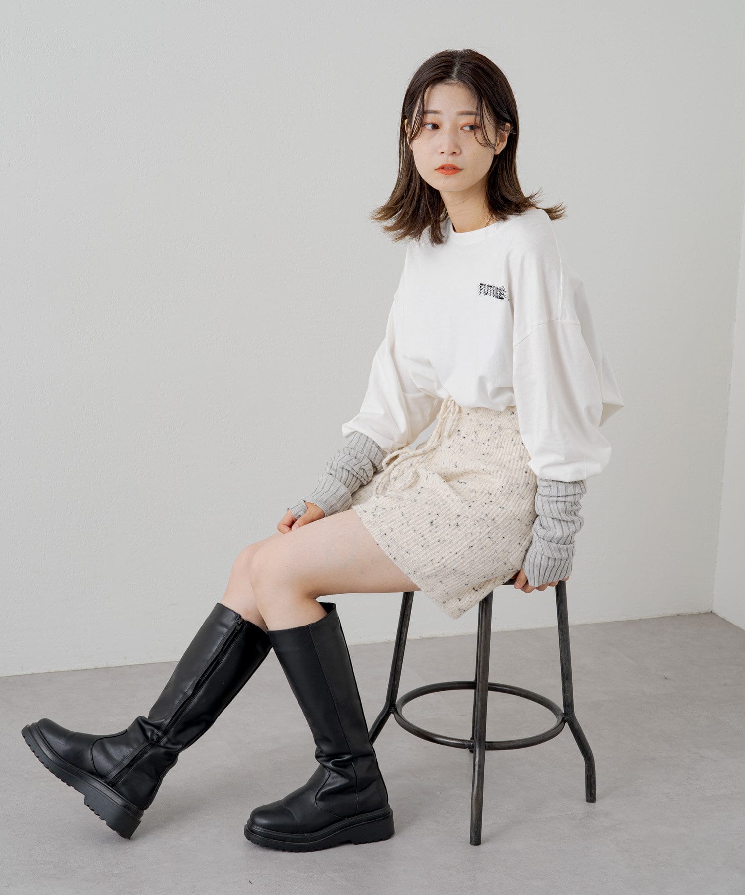ミニボトムに初挑戦でしたが、ロングブーツと合わせると挑戦しやすいです!