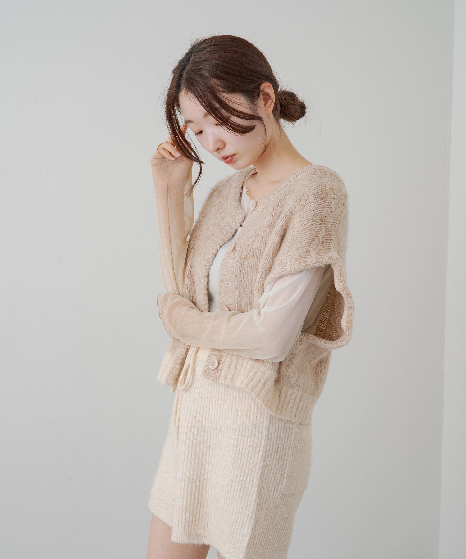 素材:アクリル59%,ポリエステル27%,ナイロン9%,ポリウレタン5%