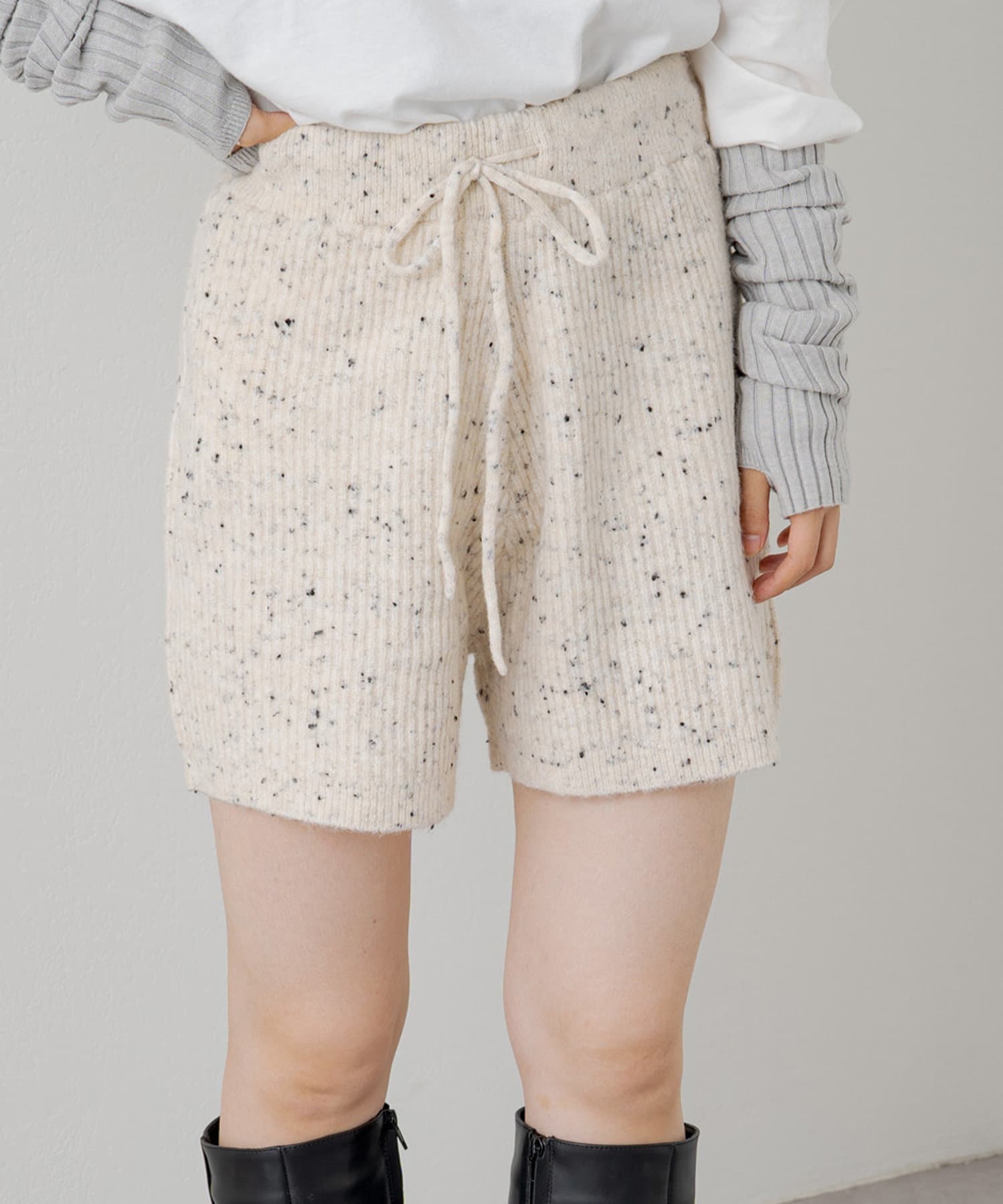 リブニット素材のショートパンツはこれからの時期にぴったり。