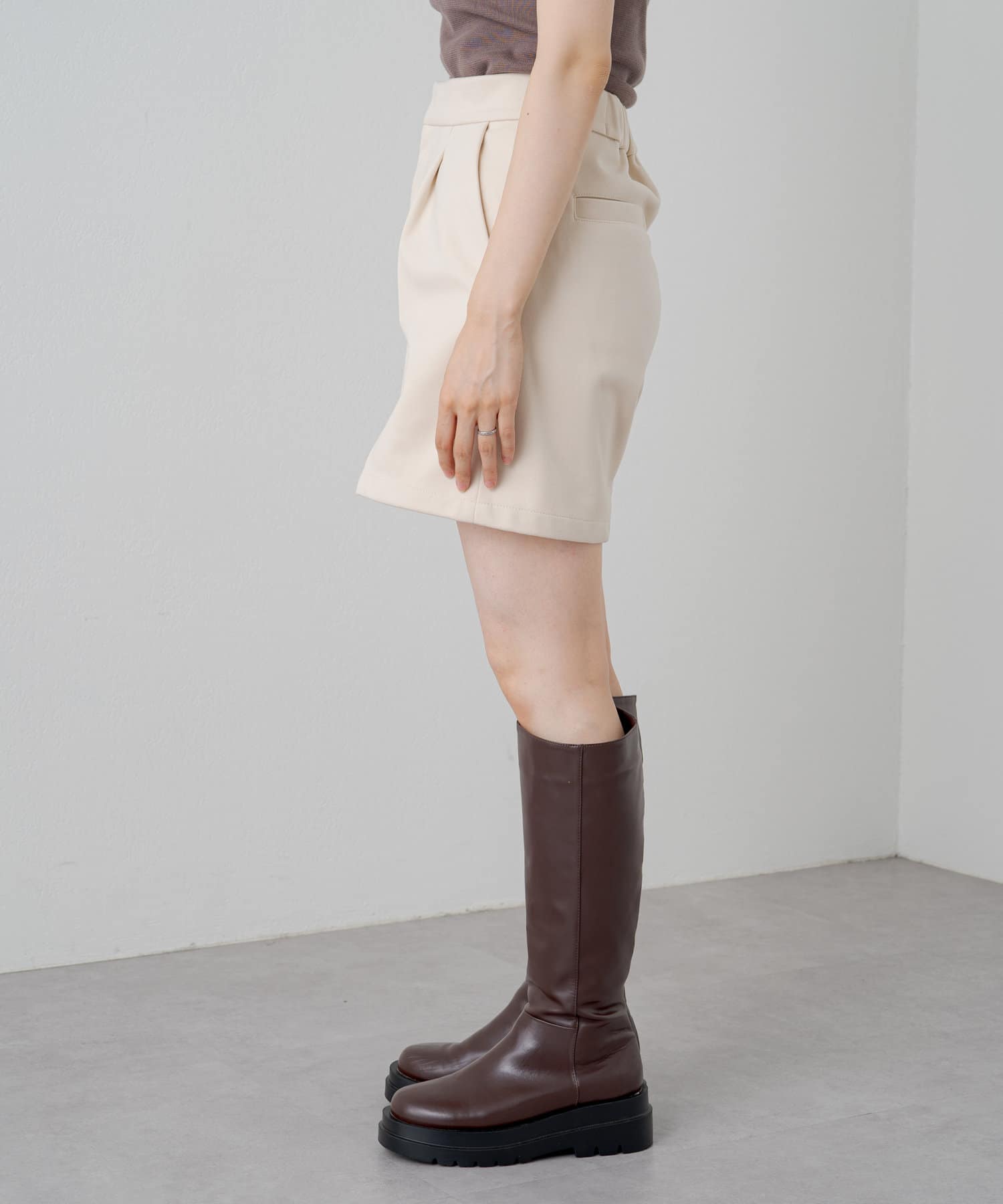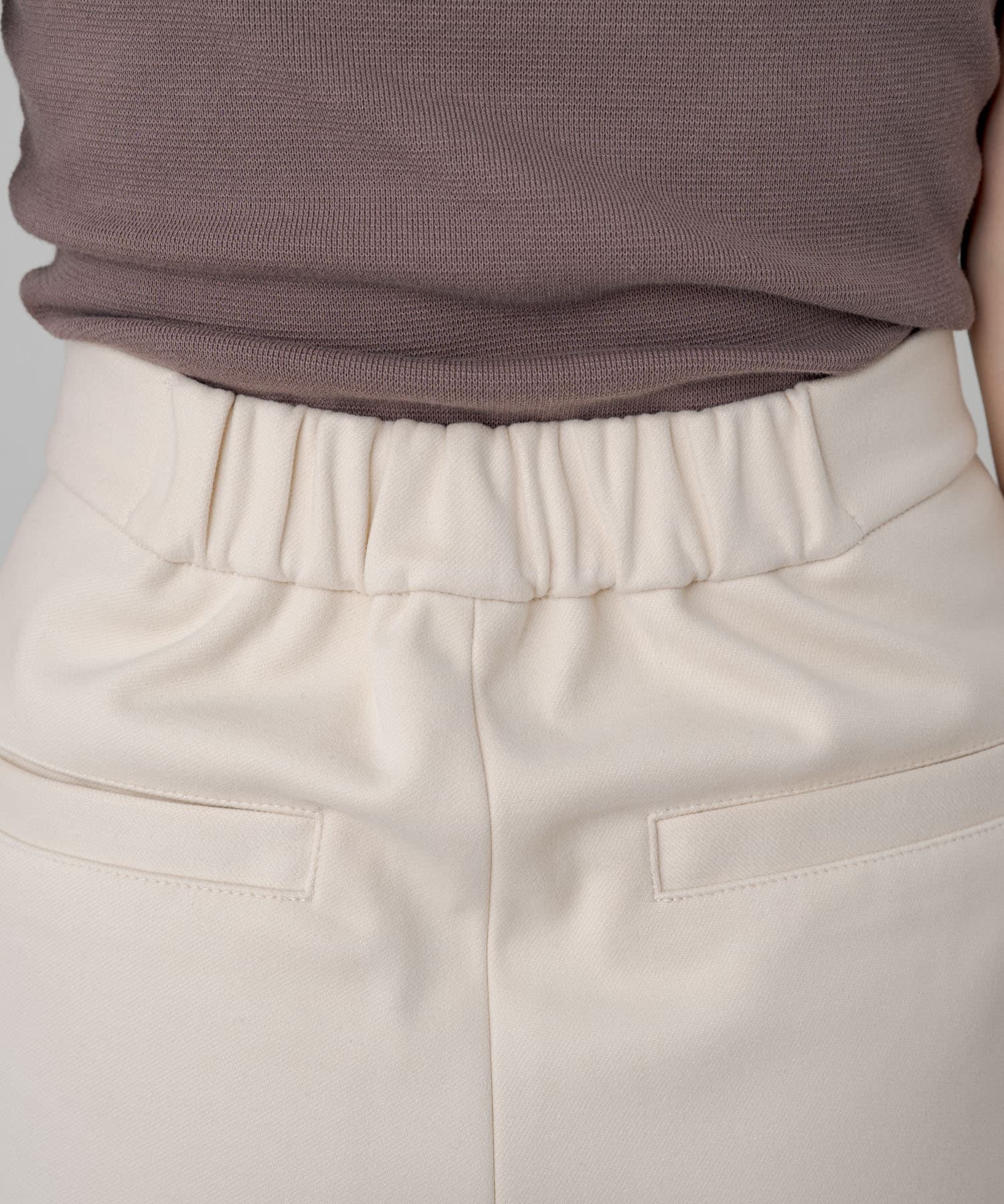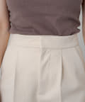 裾幅は程よいゆとりがあり、シンプルながらタックが入りシルエットにこだわった一着。