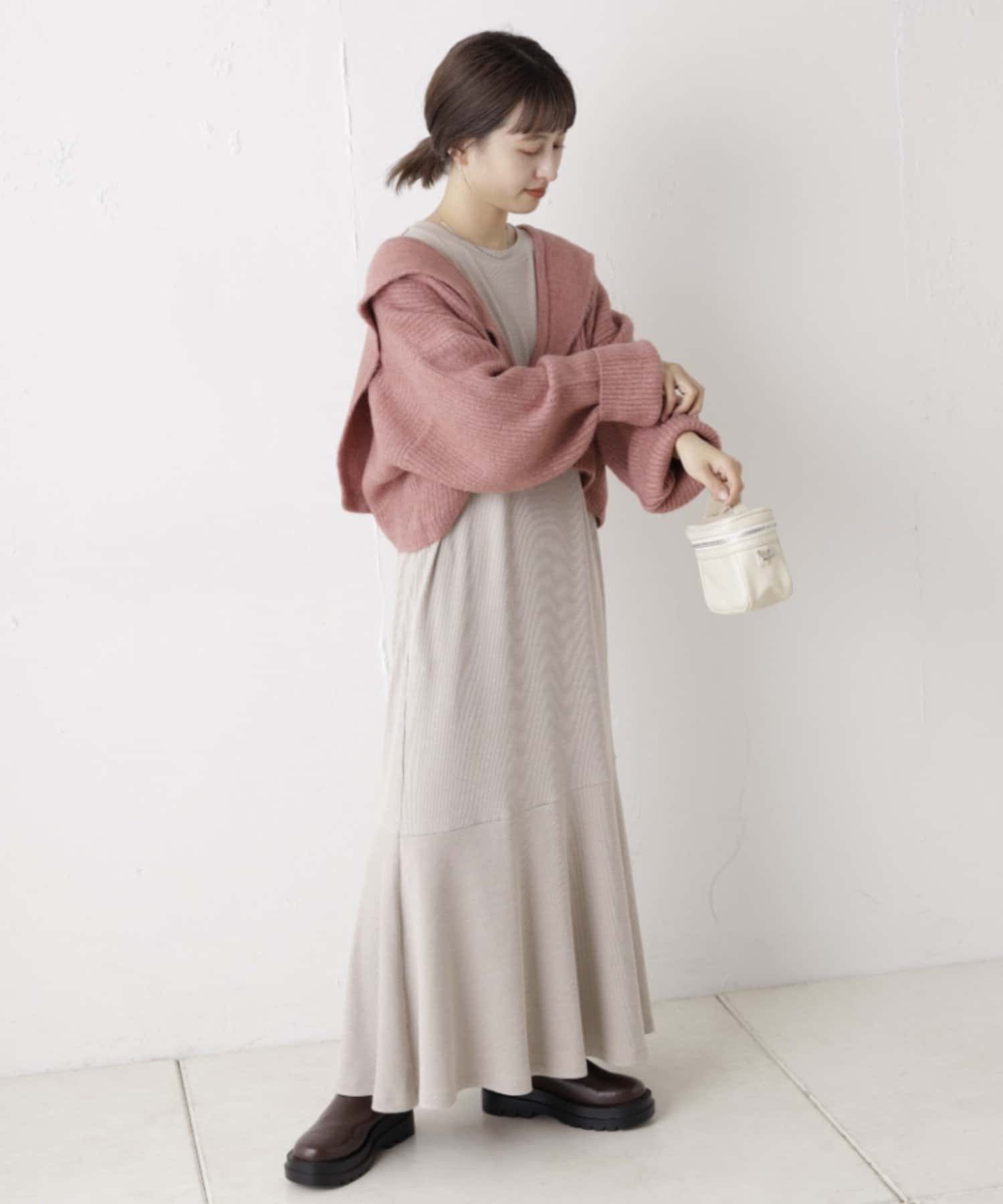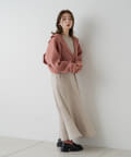 スカートで合わせれば女性らしく、フェミニンなスタイルにもマッチするアイテムです。