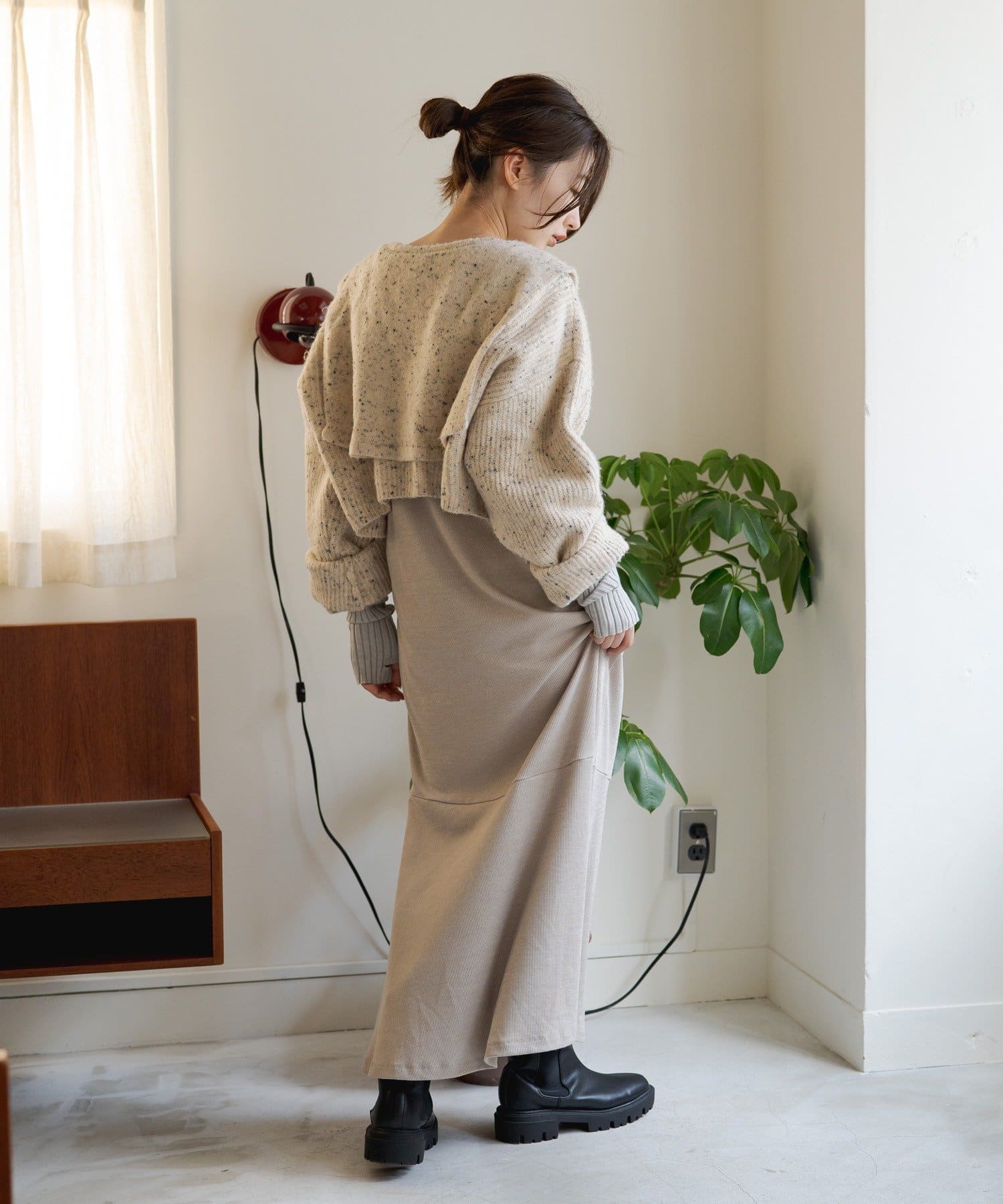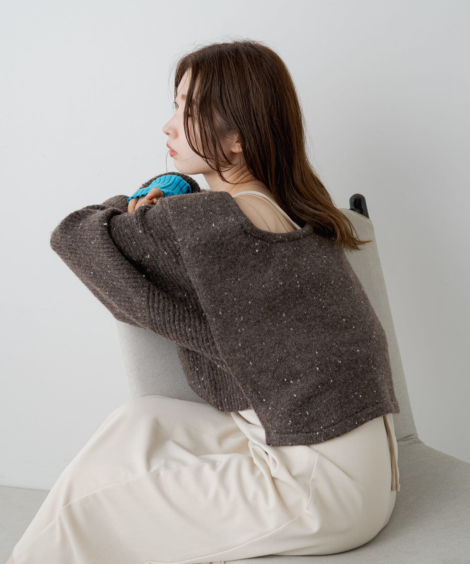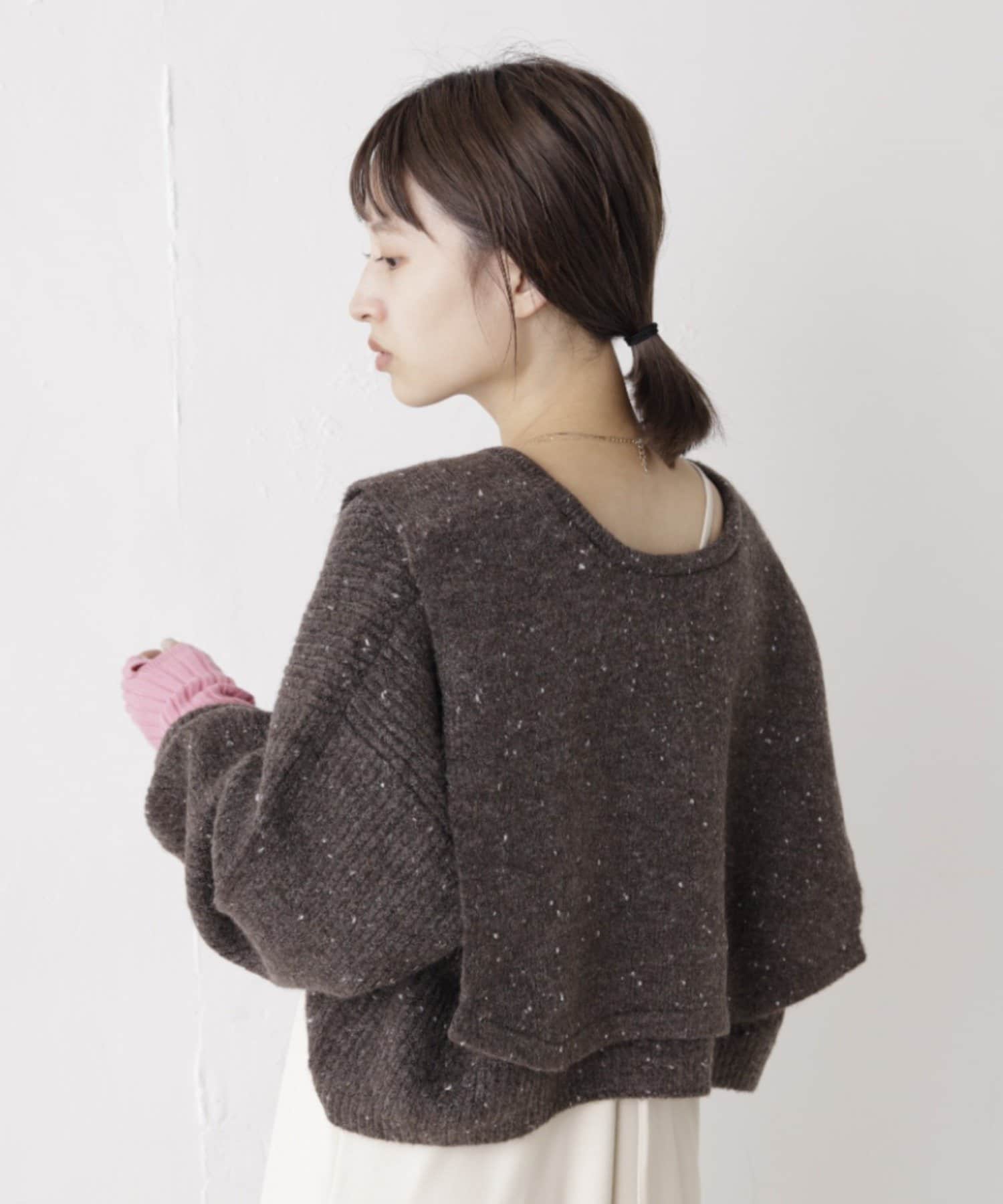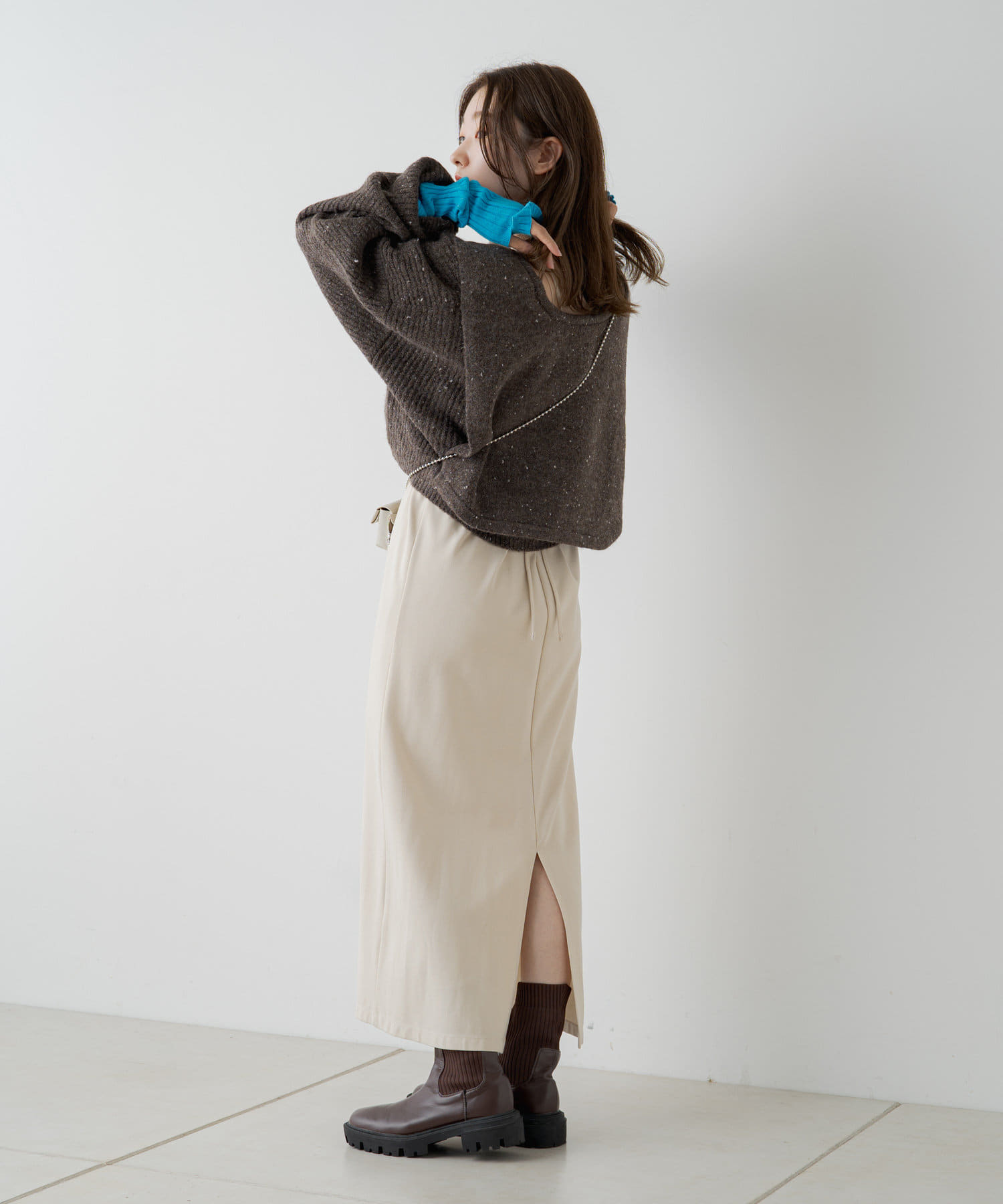 MIXカラーのニット素材が秋の雰囲気を高めてくれる温かみのあるひと品。