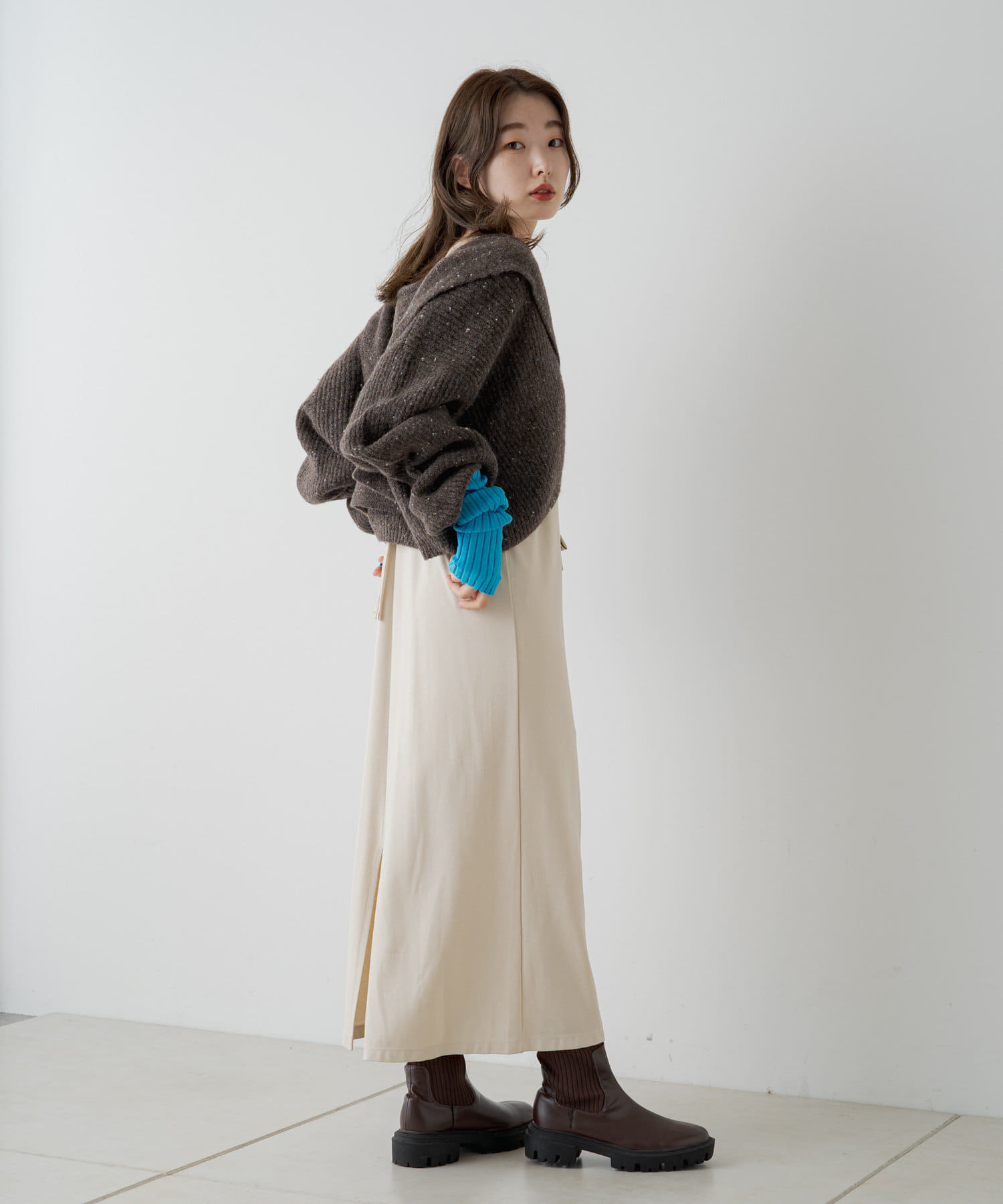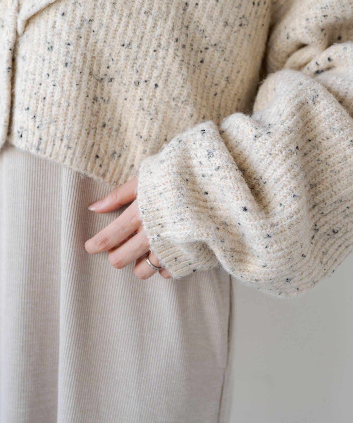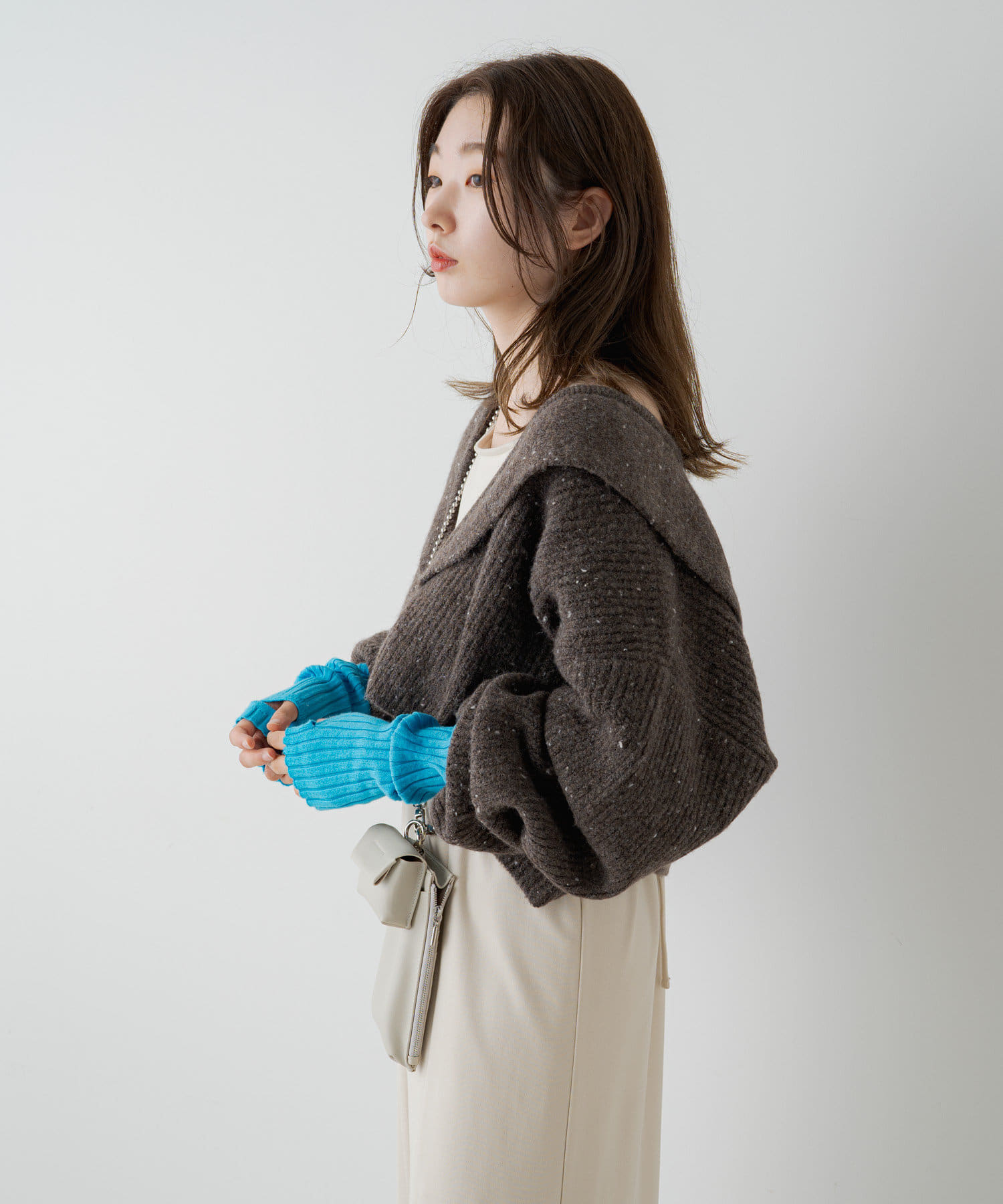 MIXカラーのニット素材が秋の雰囲気を高めてくれる温かみのあるひと品。