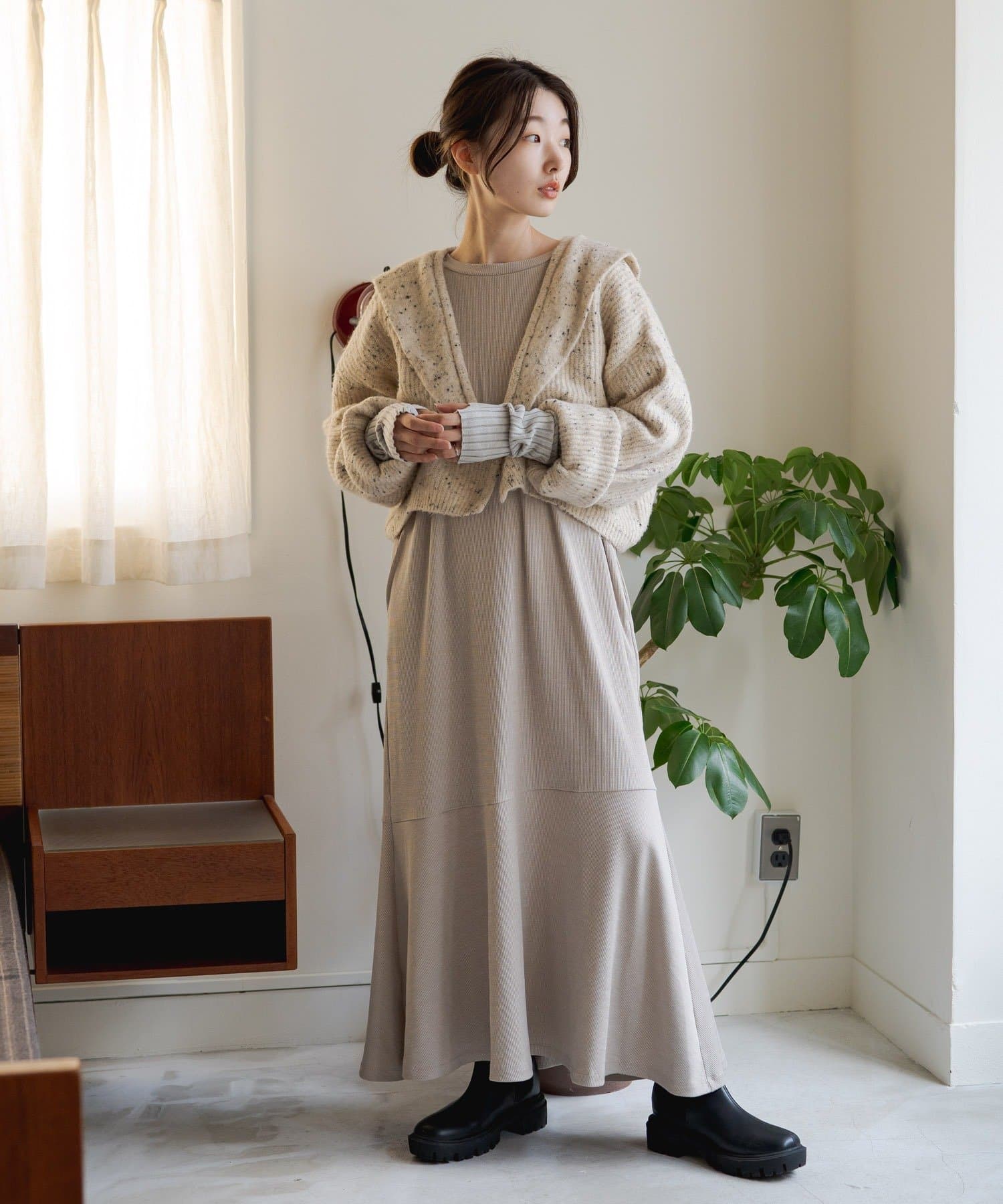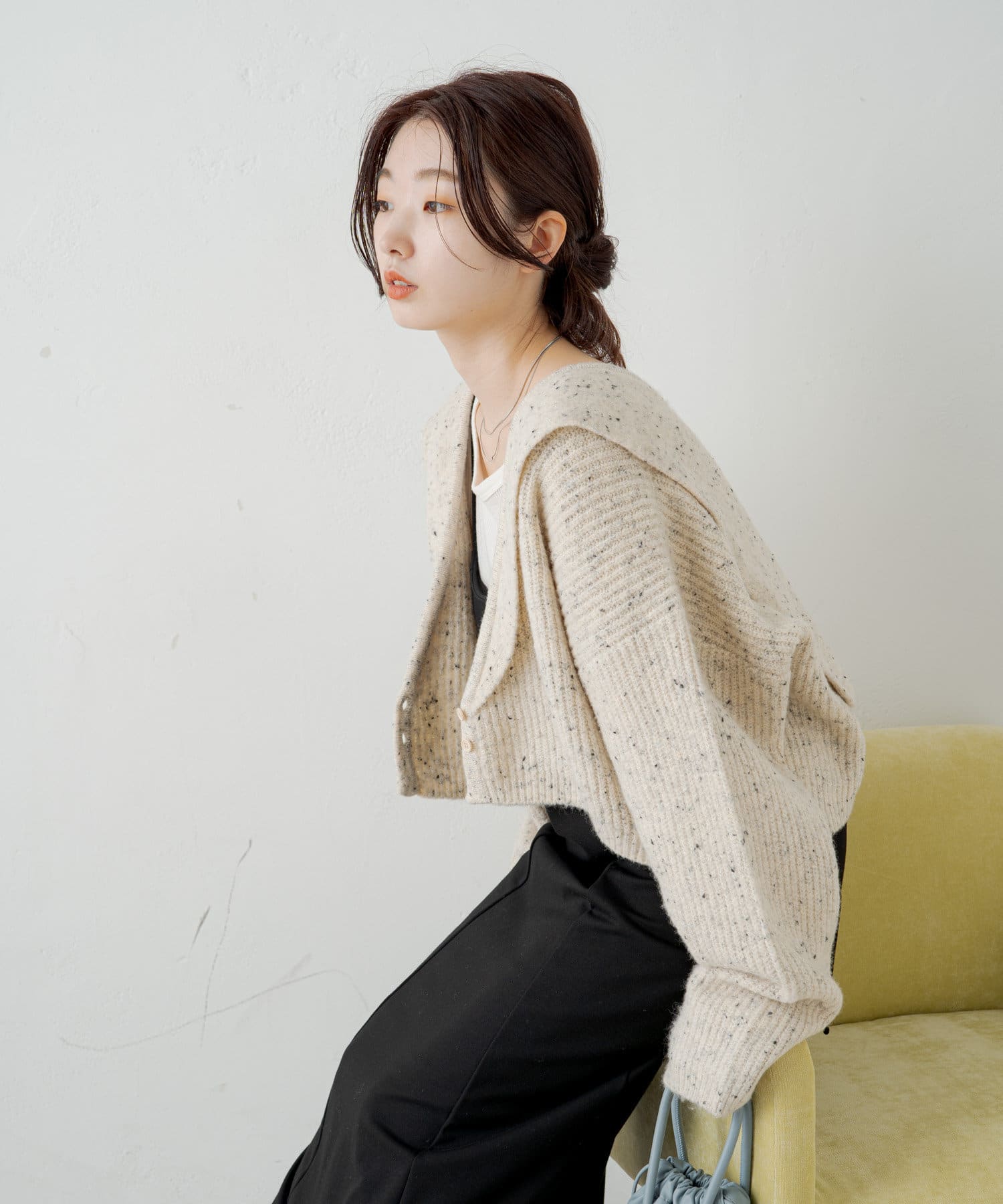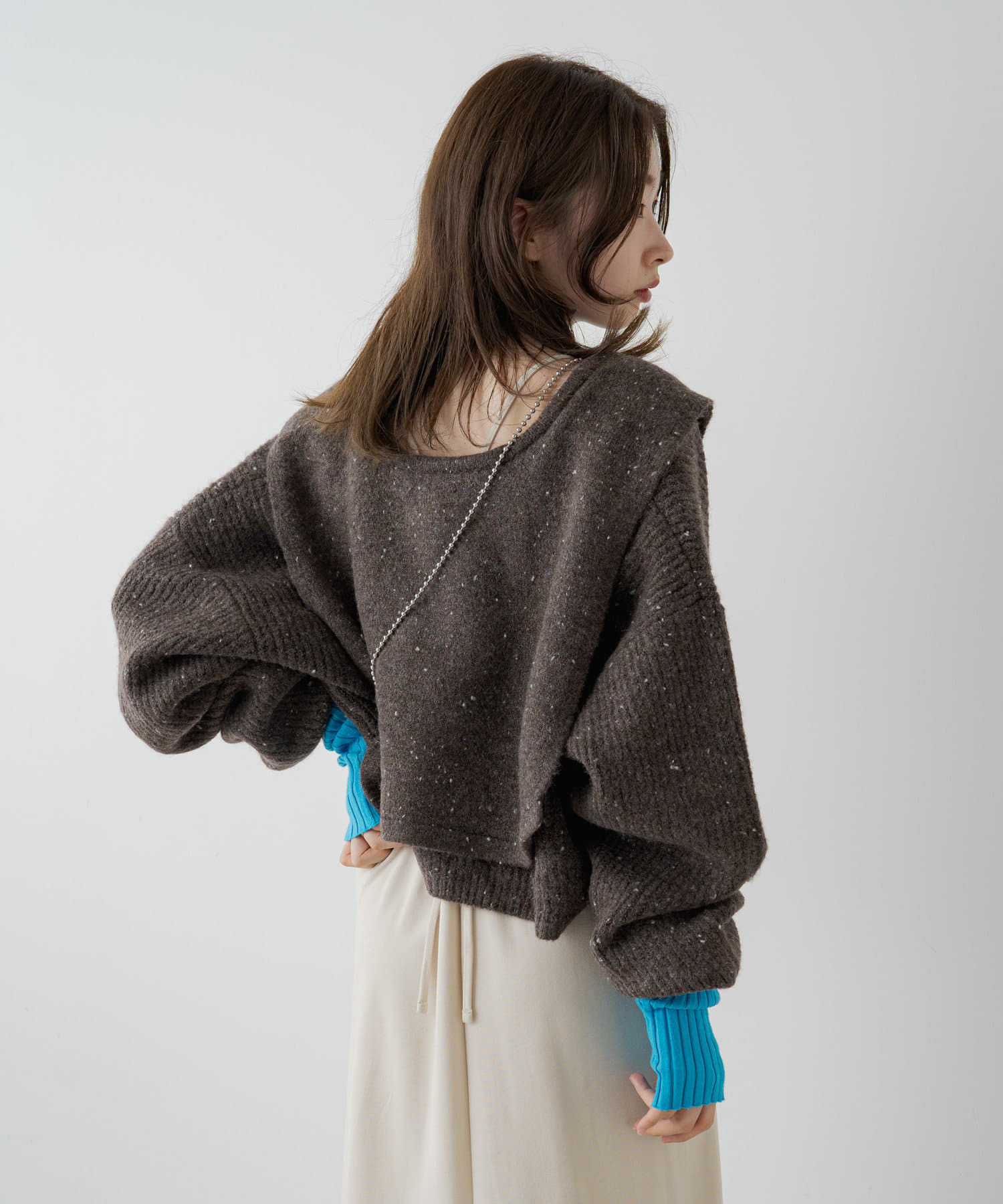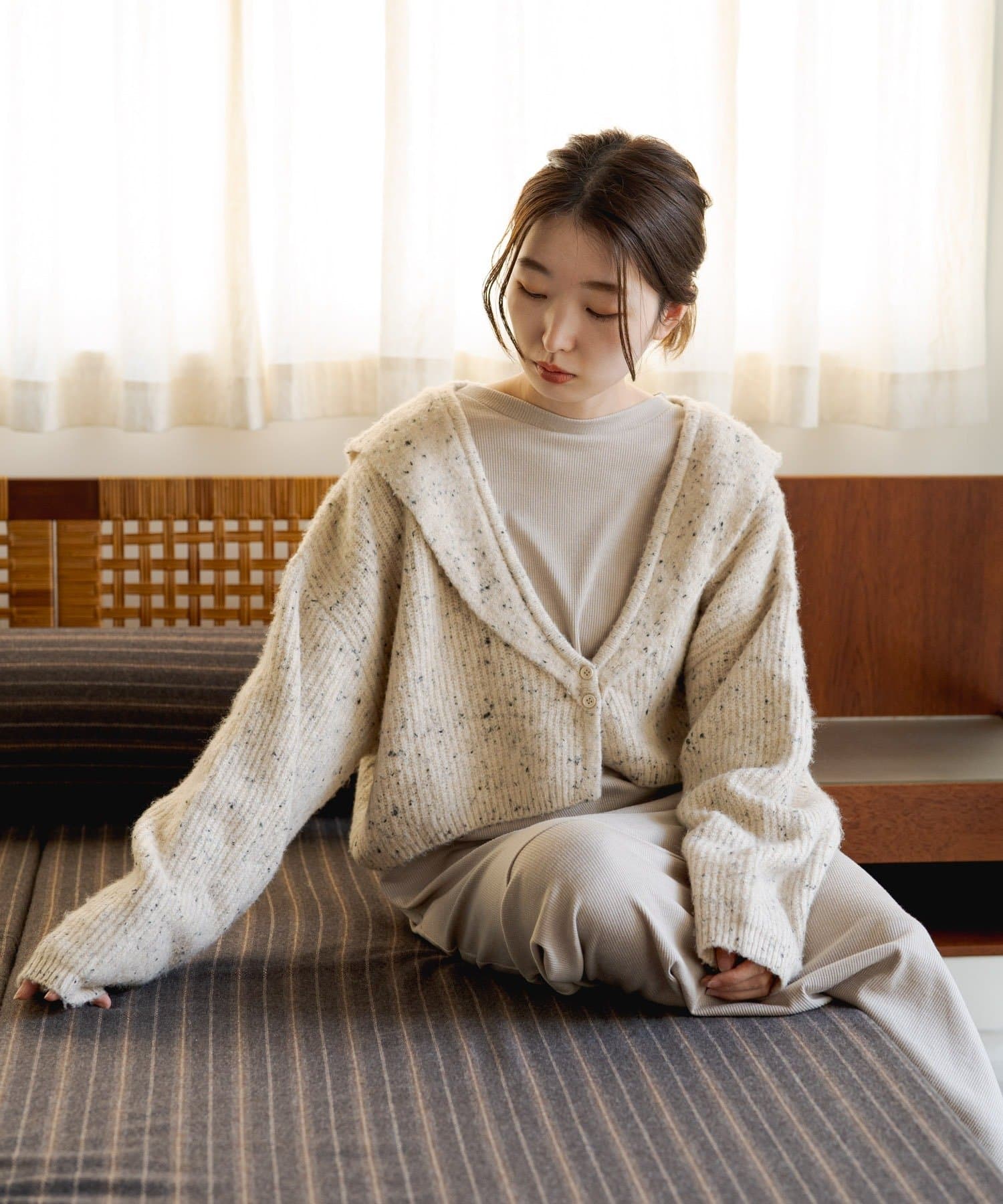 MIXカラーのニット素材が秋の雰囲気を高めてくれる温かみのあるひと品。