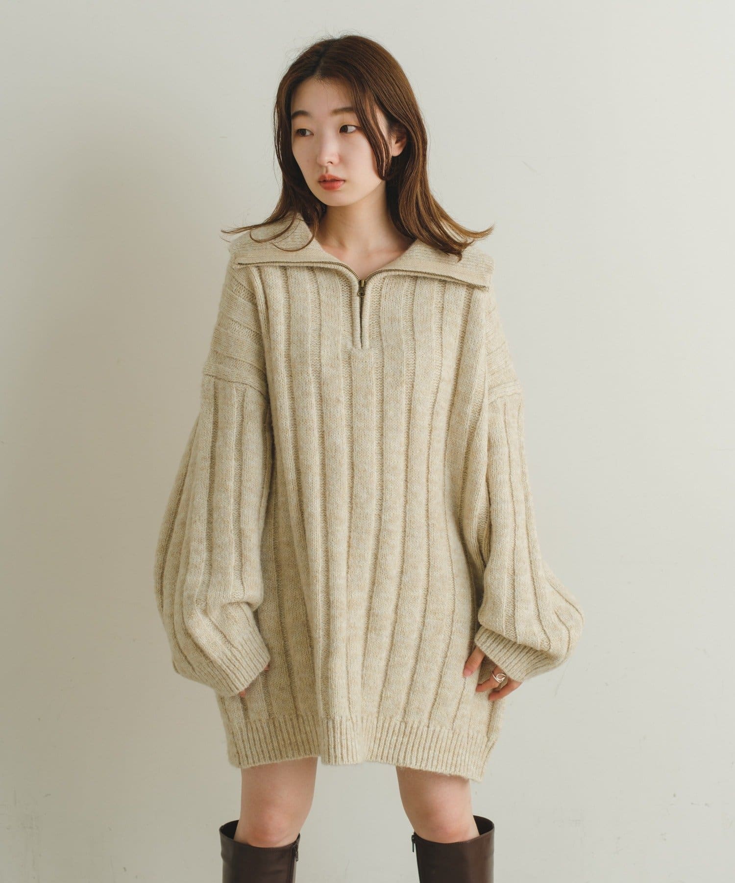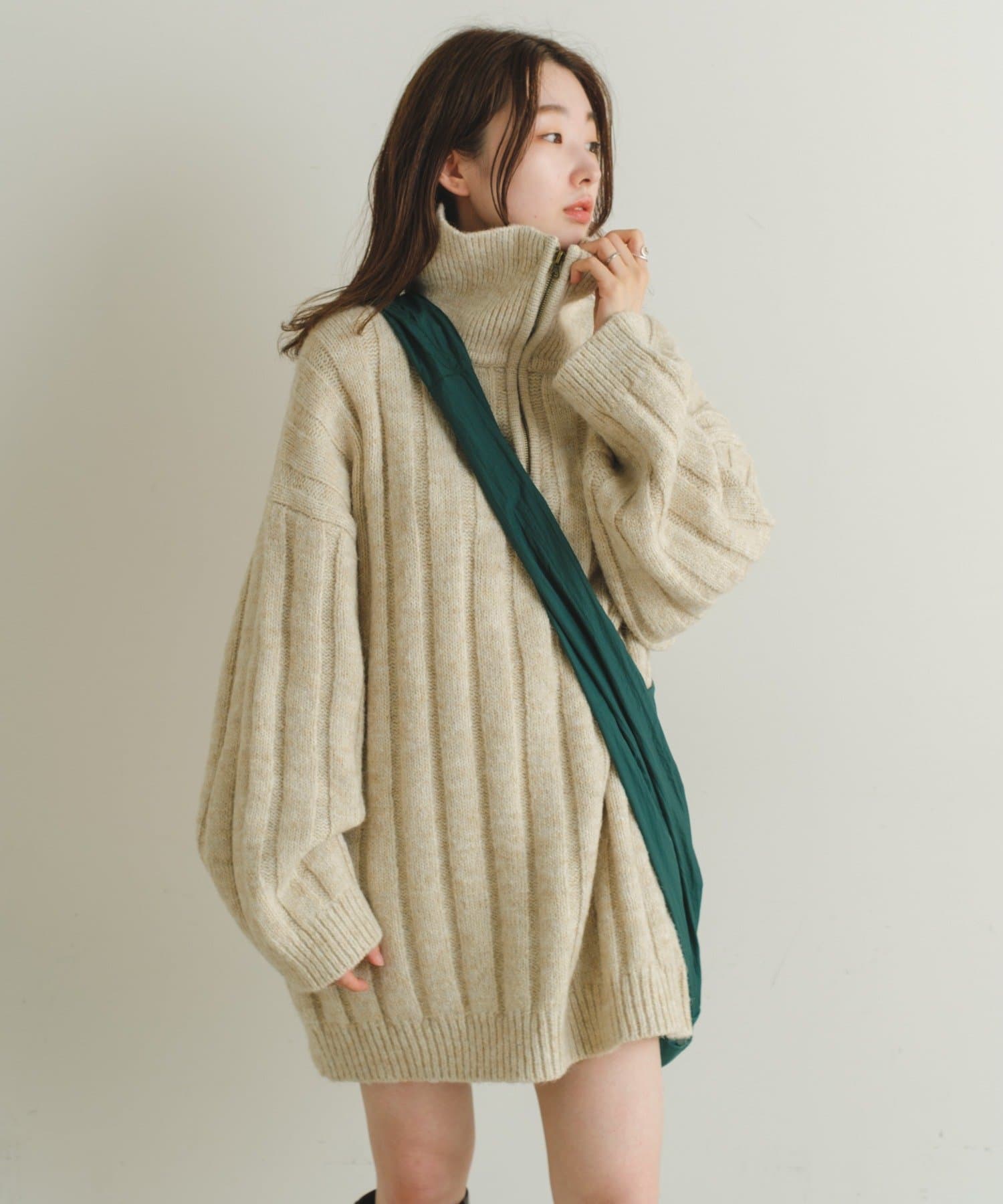 【2022AWカタログ掲載】ハーフZIPメランジBIGニット
