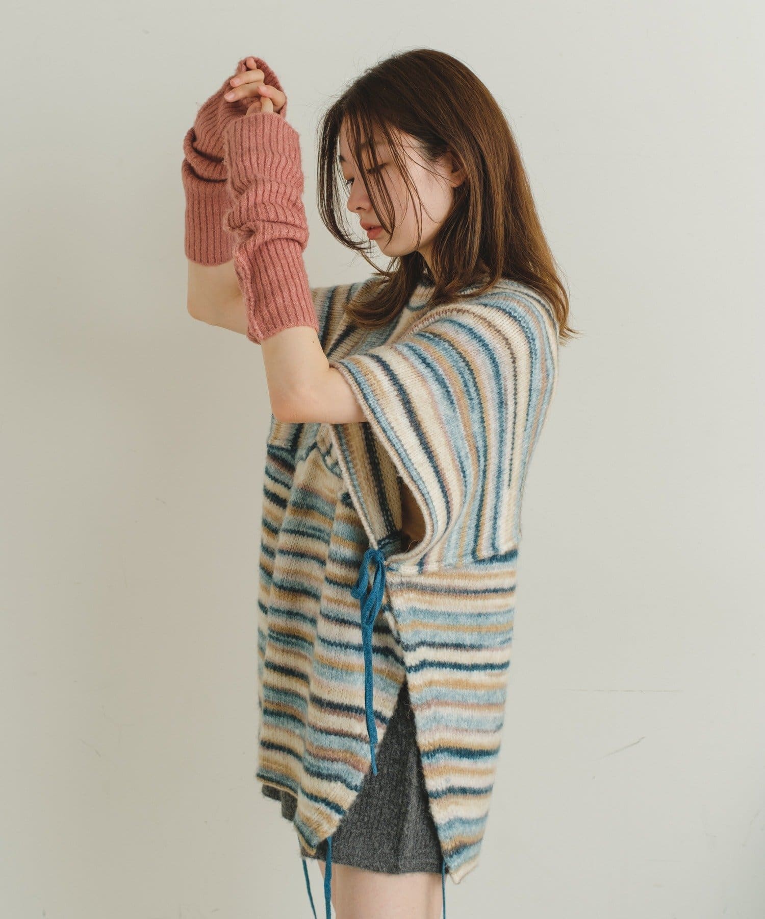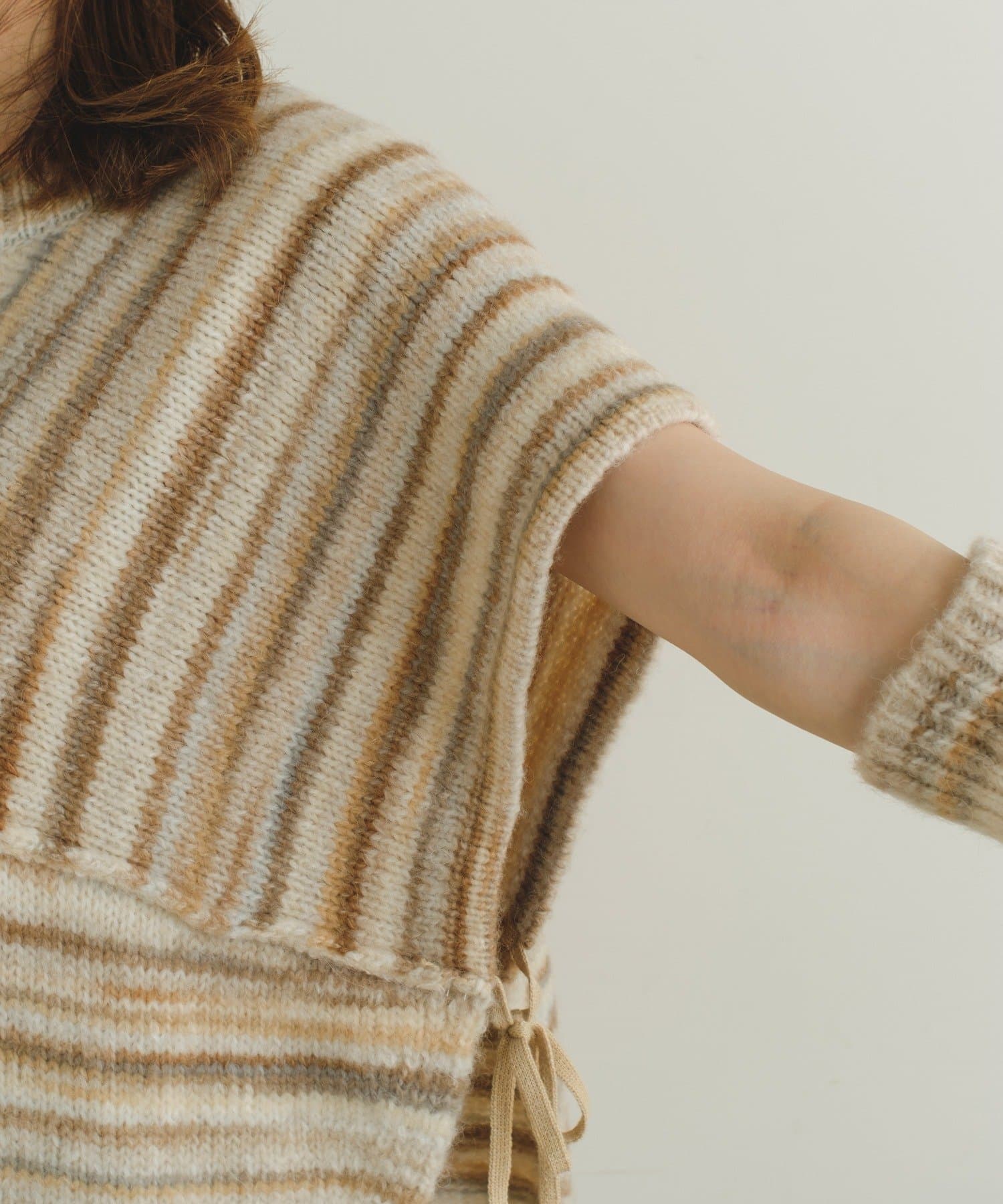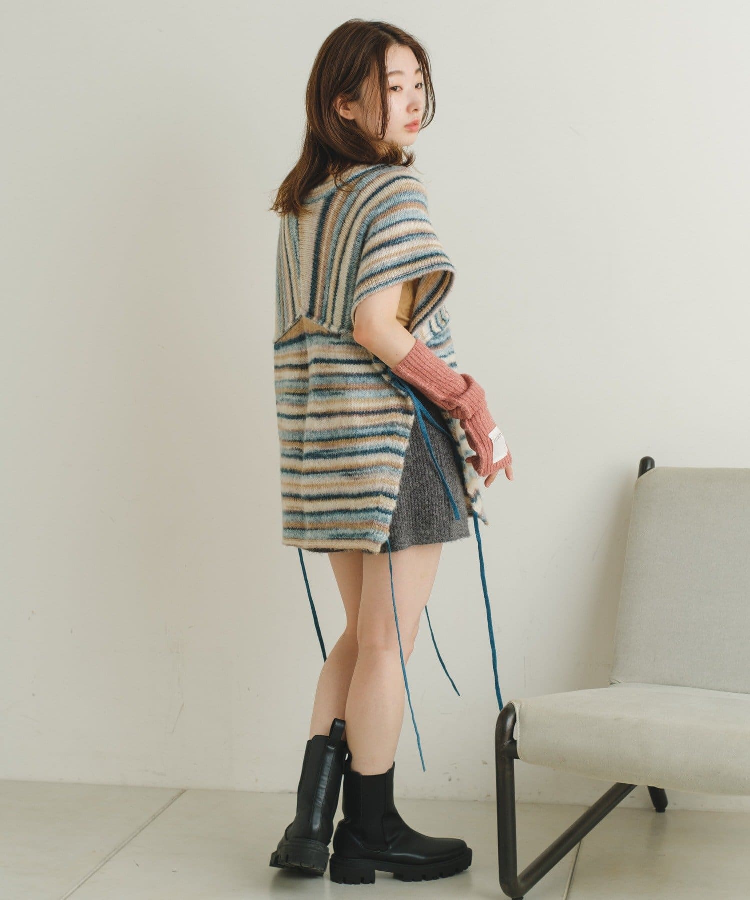 ニットは短丈のプルオーバーとしても、ベストとしても着用可能なので、スタイリングバランスを変えて着て頂けます。