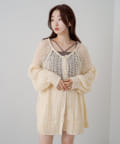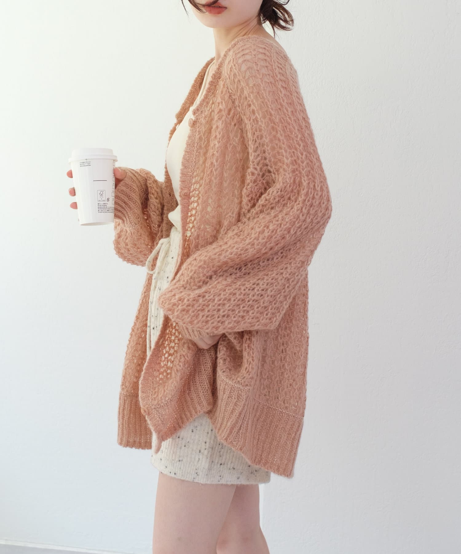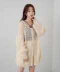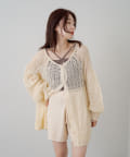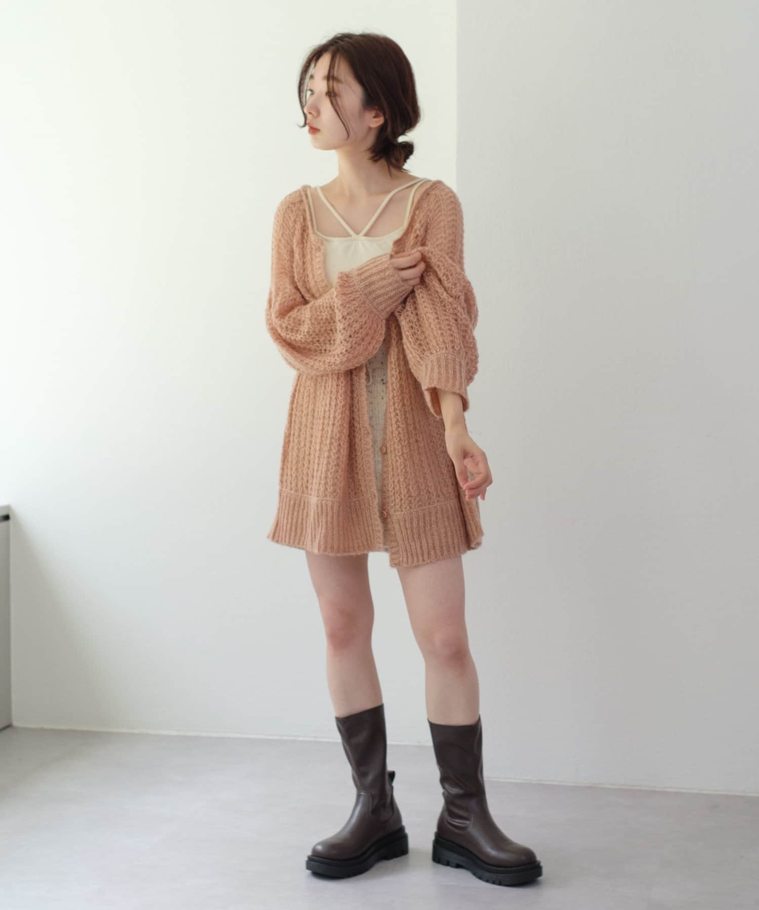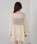 フラワージャガードのトップスの上にカーディガンとしてきたのですが、下に見えるフラワーが見える感じと、袖のポテッと感が可愛いです!結構メッシュが大きいので、引っ掛けるのには気をつけた方がいいですね!!