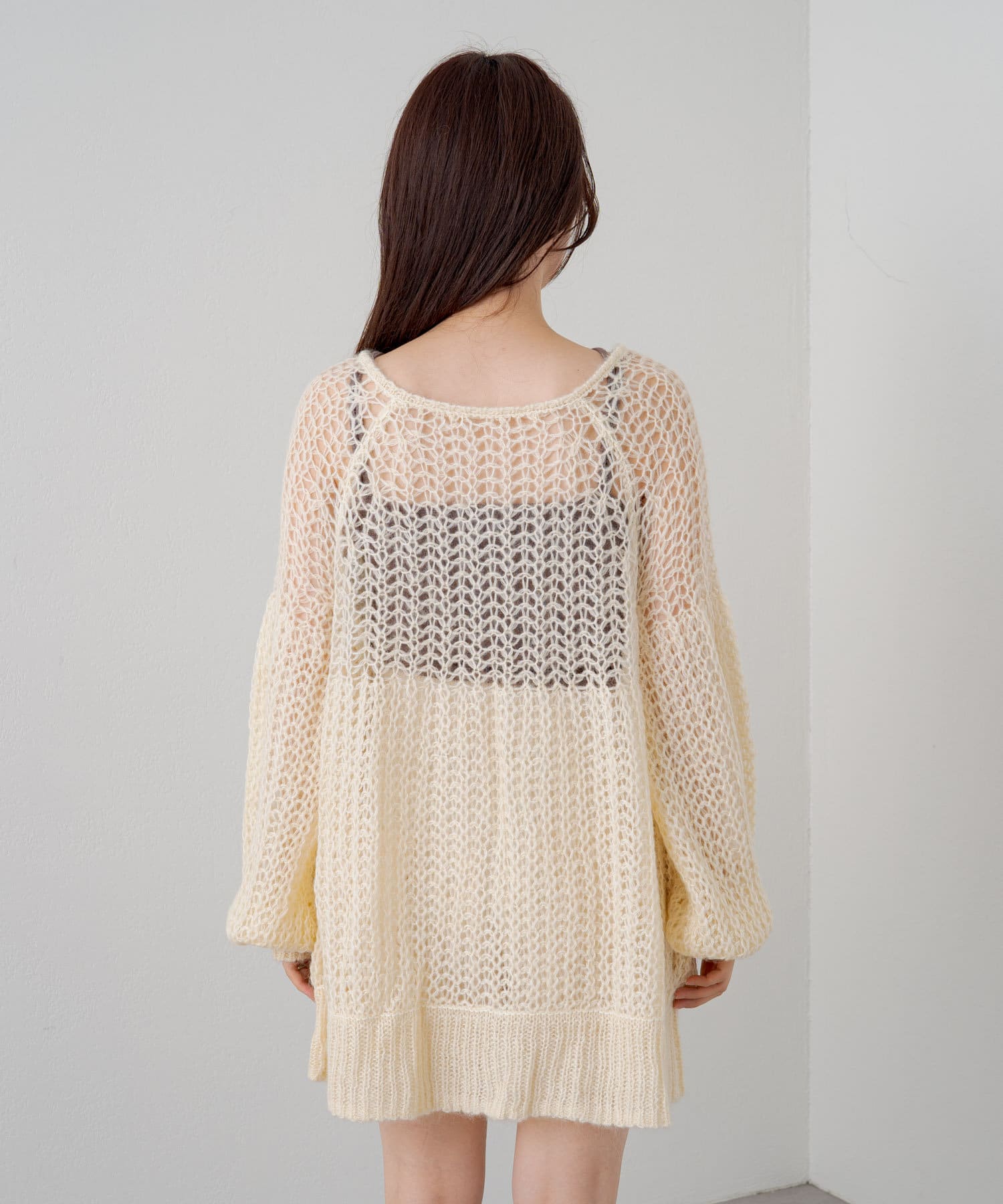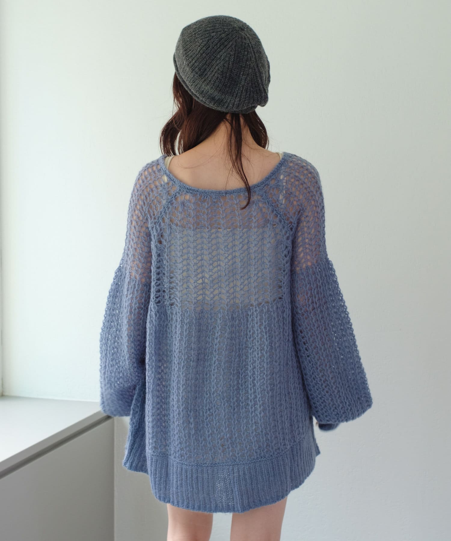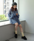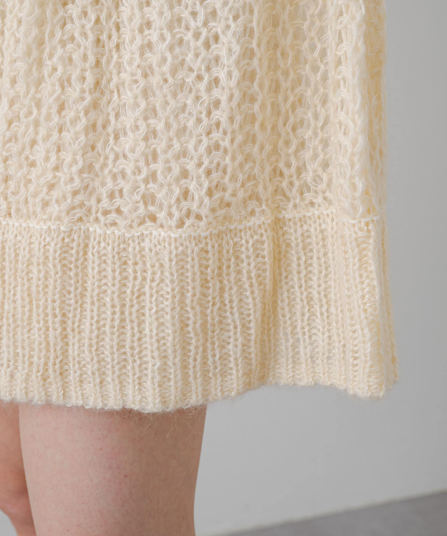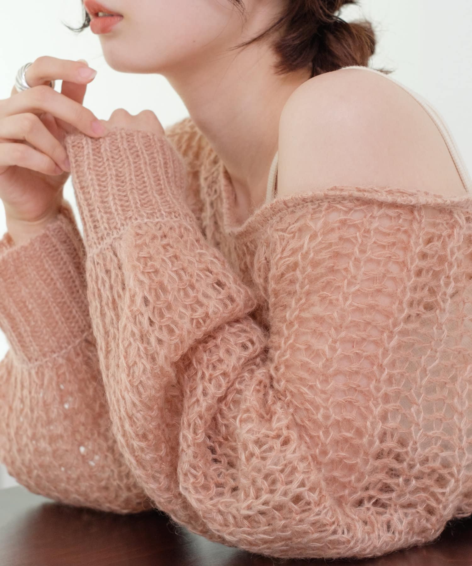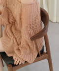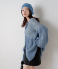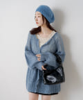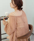 女性らしいふんわりとしたモヘヤ素材を使用したざっくり編みニット。