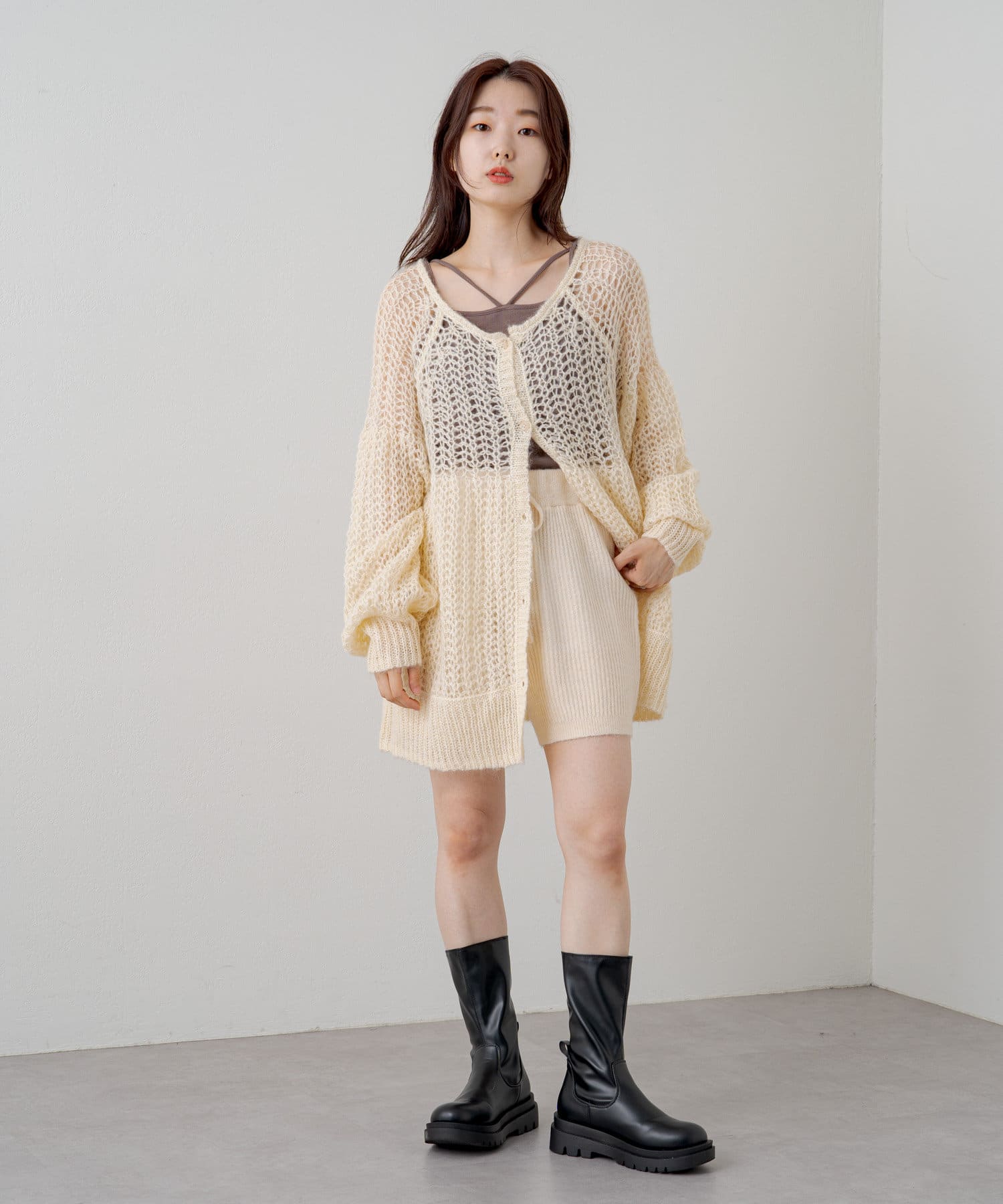 インナーキャミを着て、ショートパンツとロングブーツを履いて、お出かけしたいです