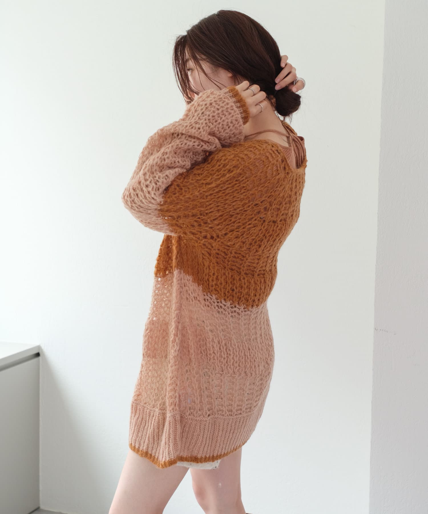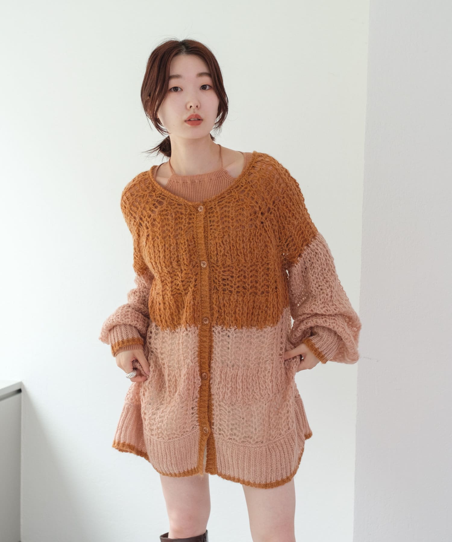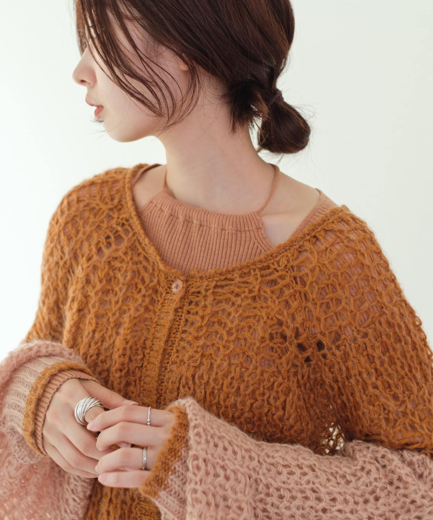 初秋はキャミソール に合わせて(モヘアなのでそれなりにチクチク感はあるかと思います)気温が下がったらシアーインナーを入れて楽しみたいです。