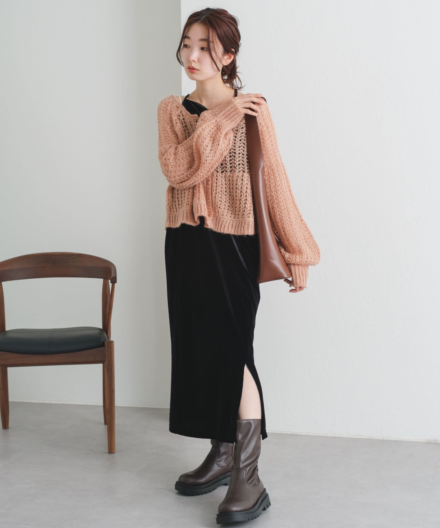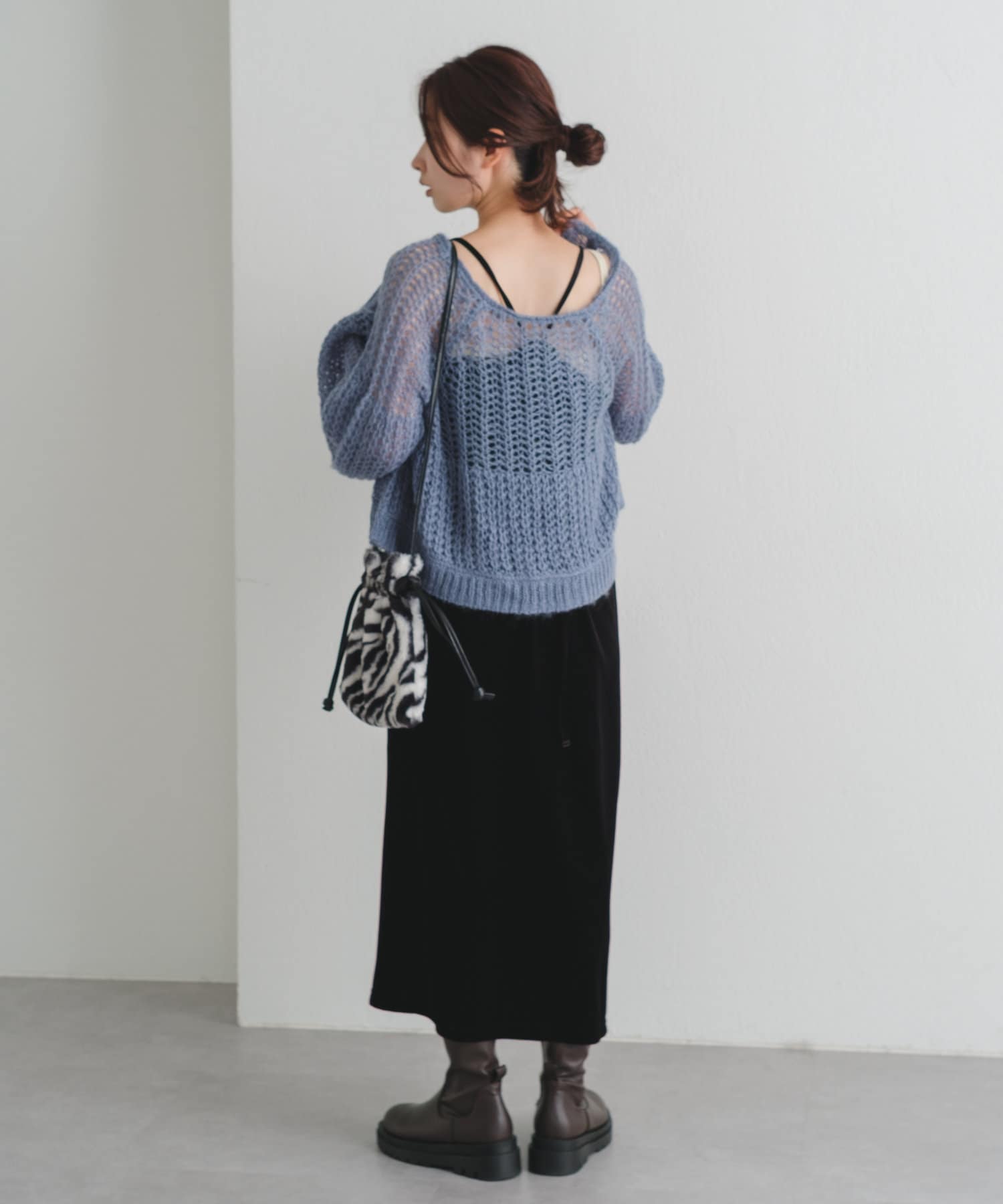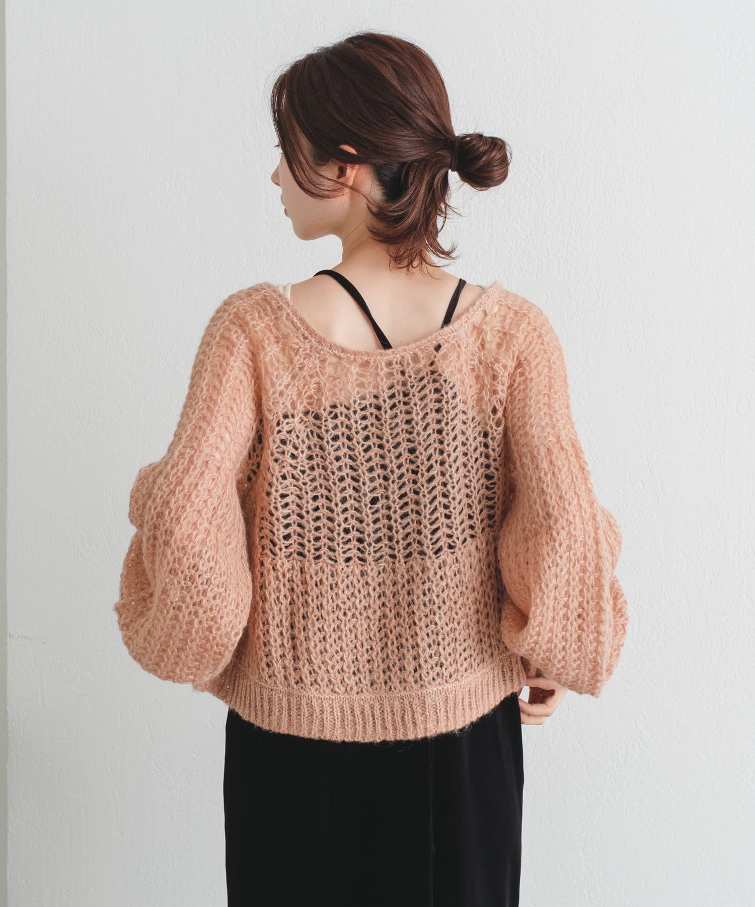 透け感とボリューム袖のこだわりぬいたシアーニット。