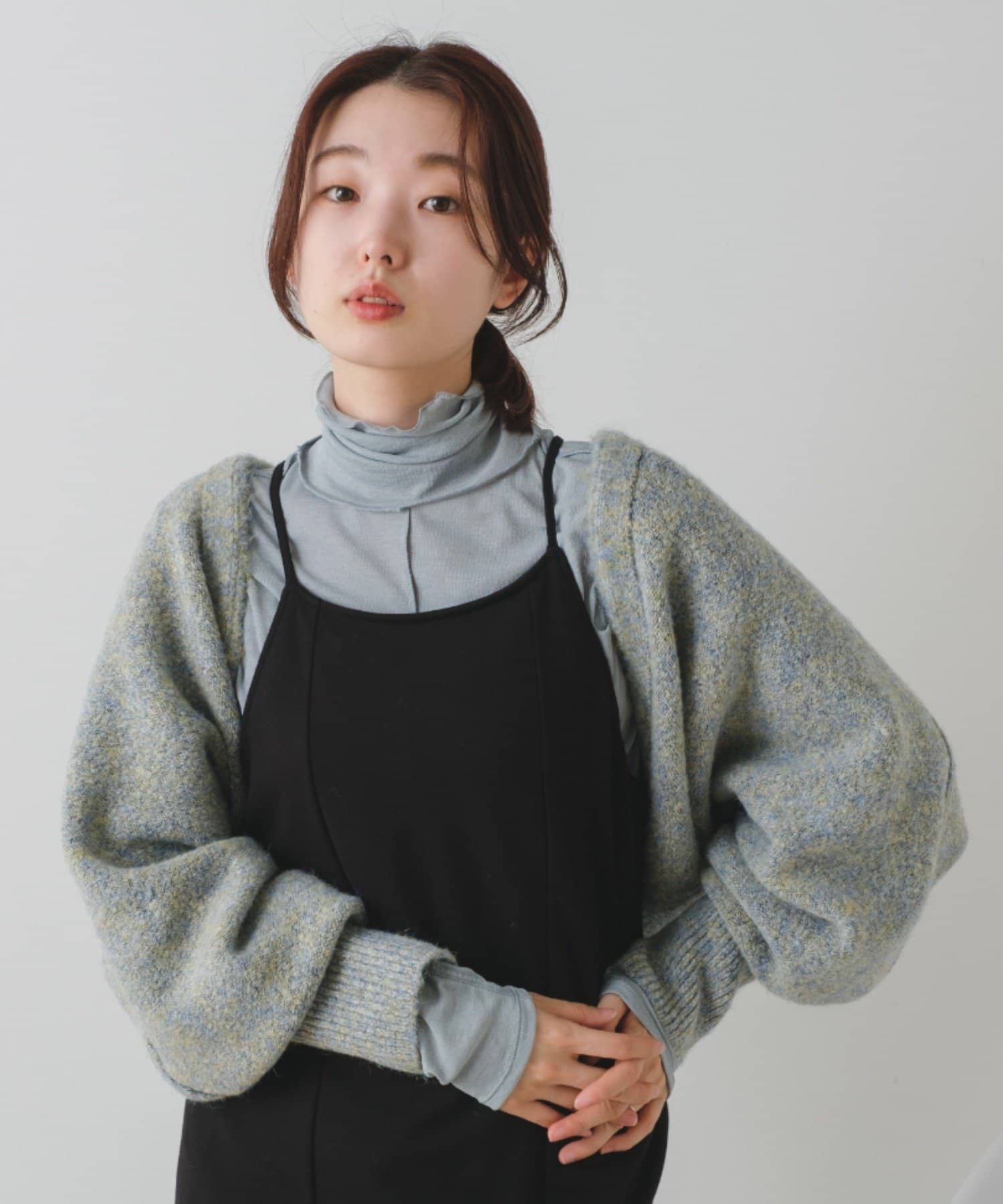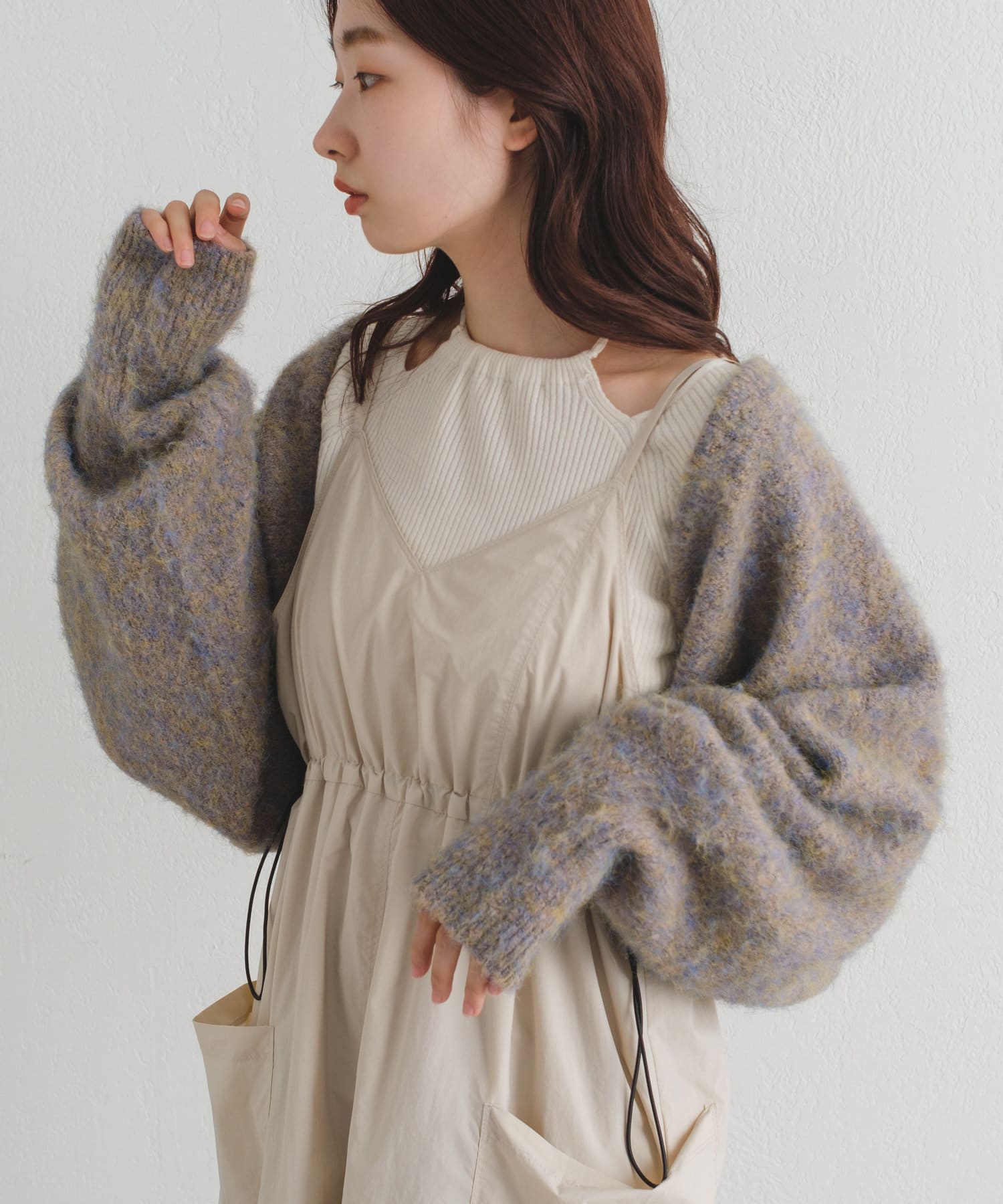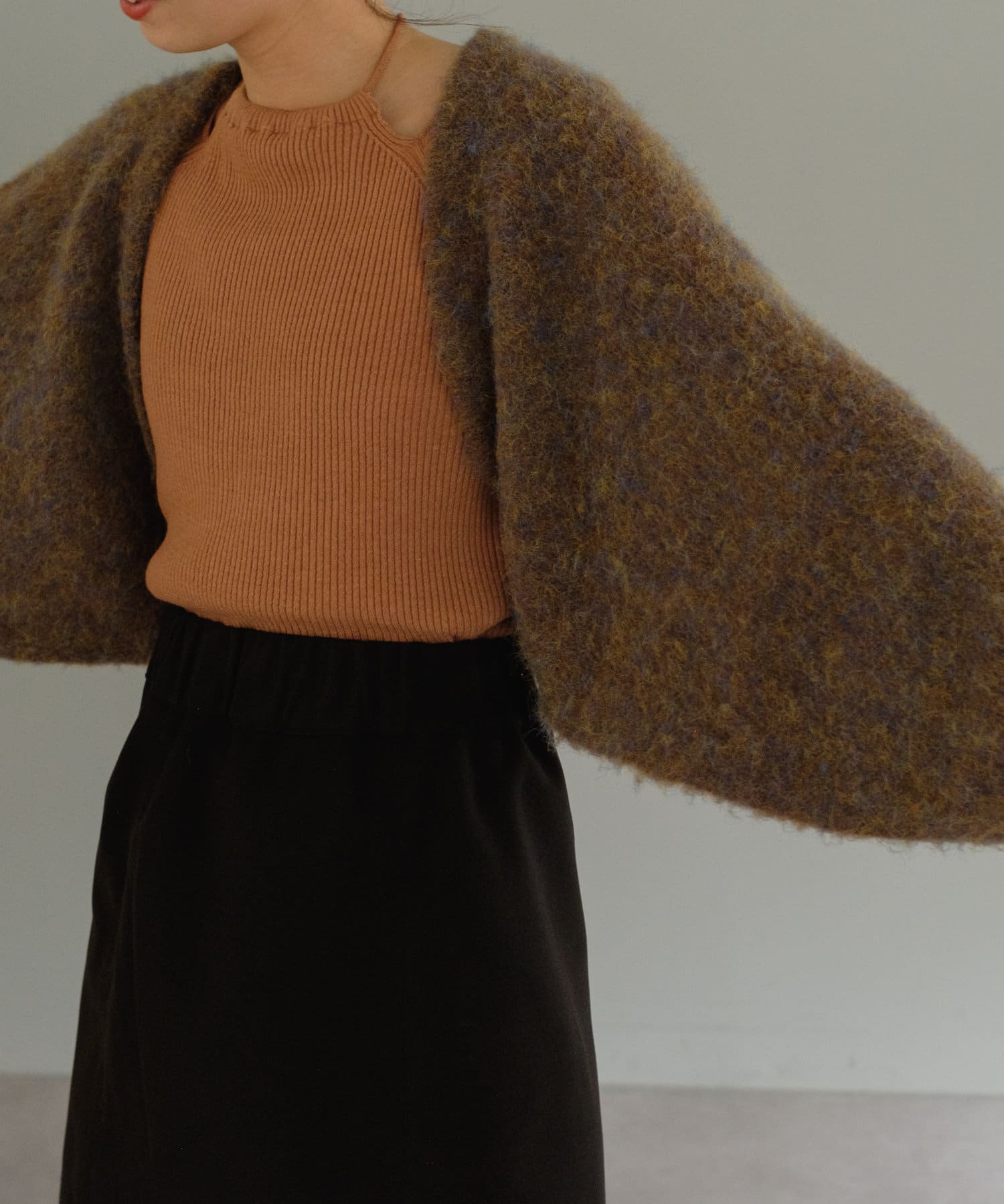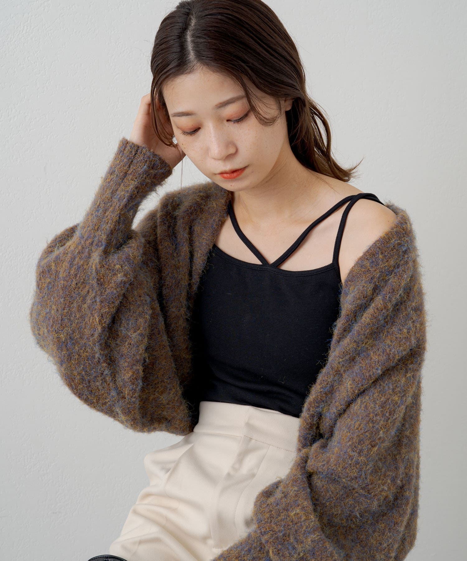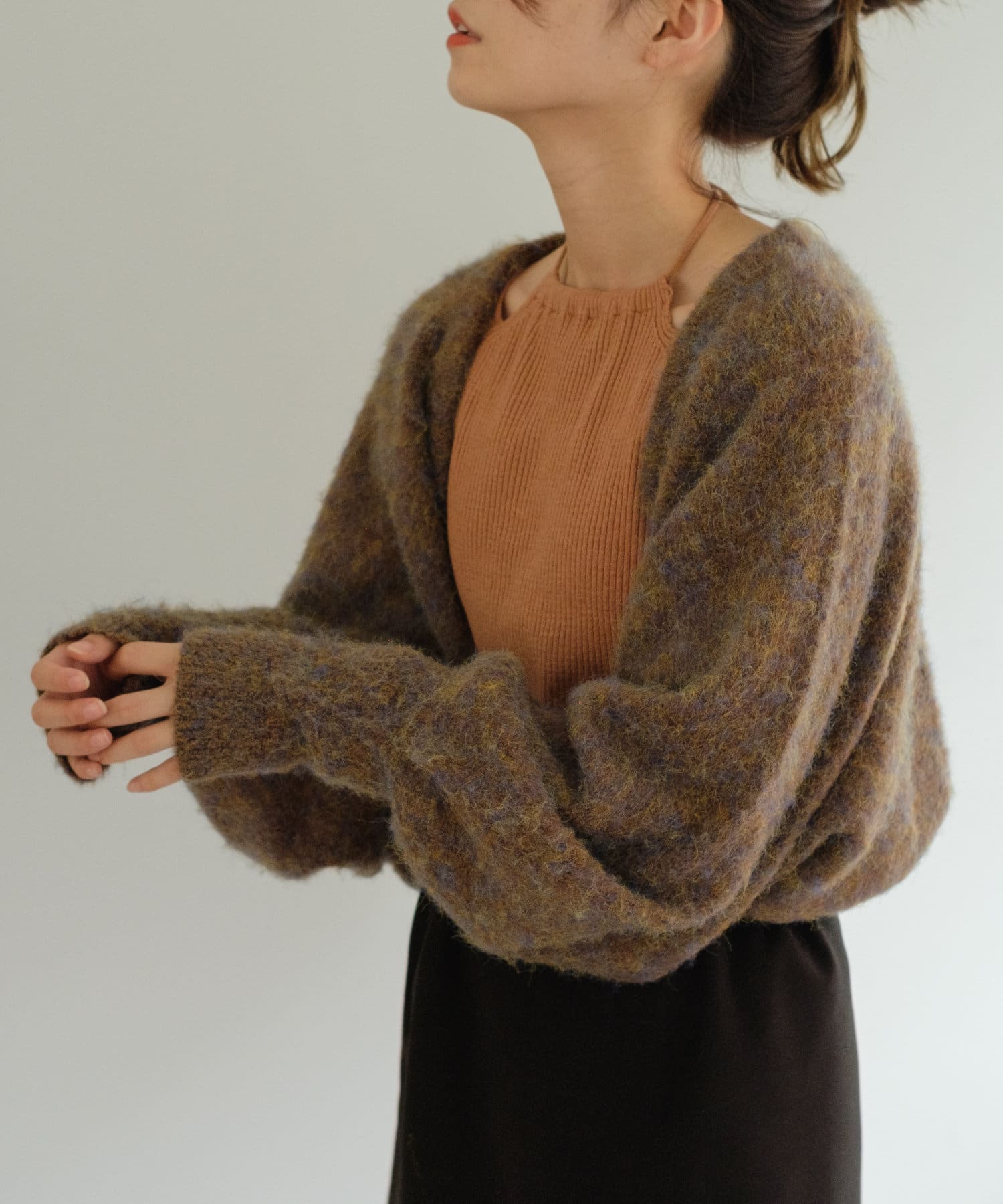 混じり気のあるMIX素材が特徴のメランジニットボレロ。