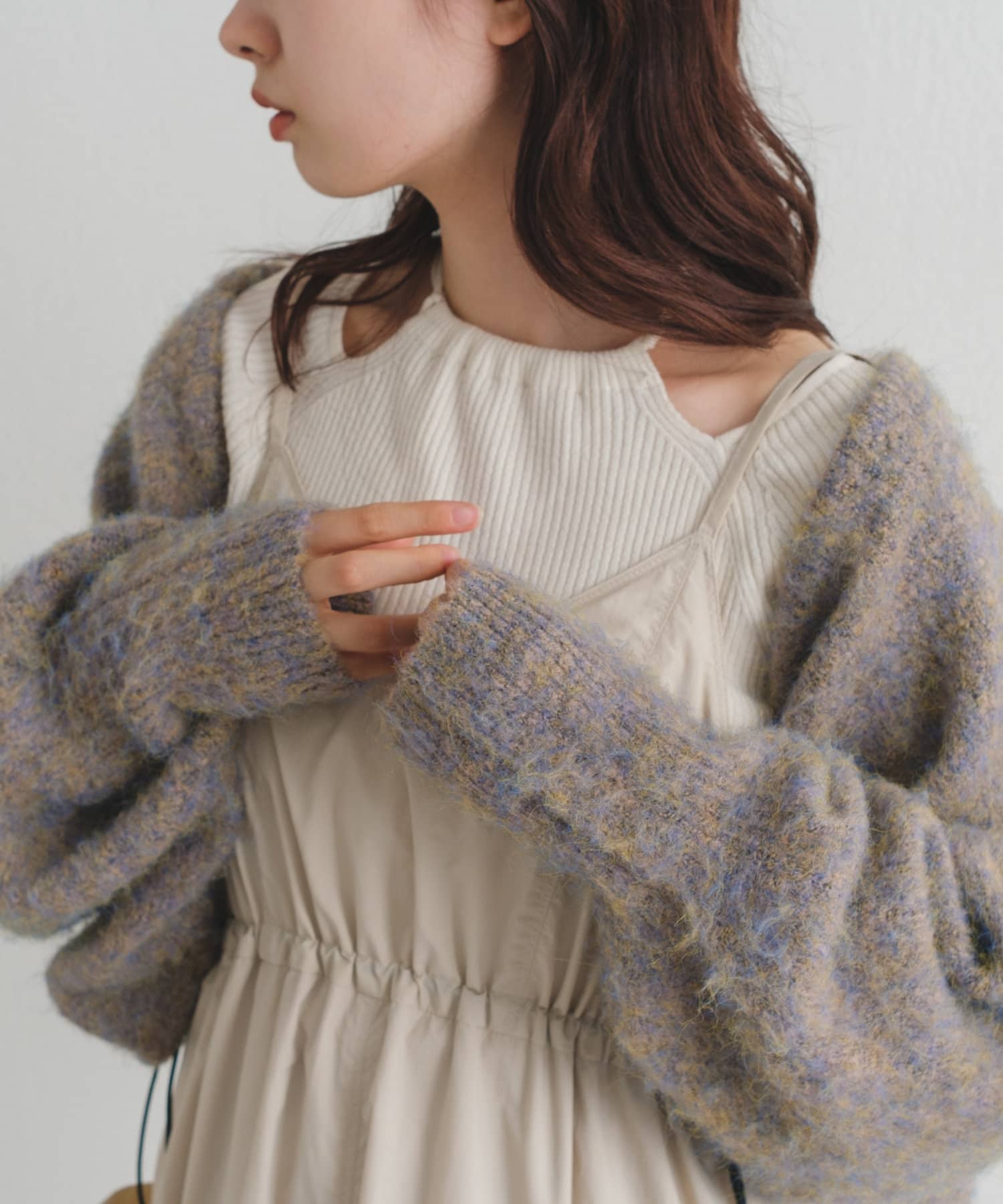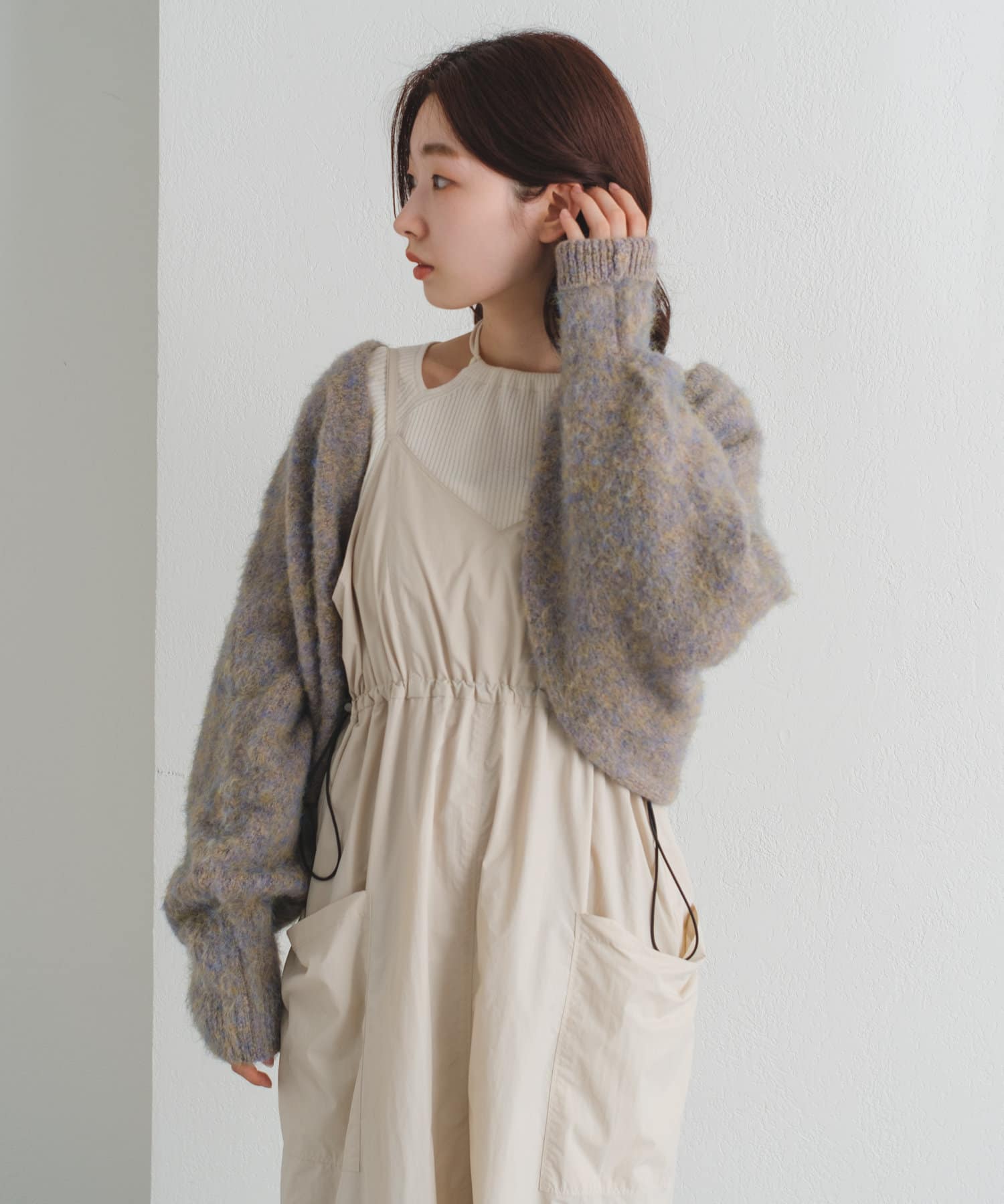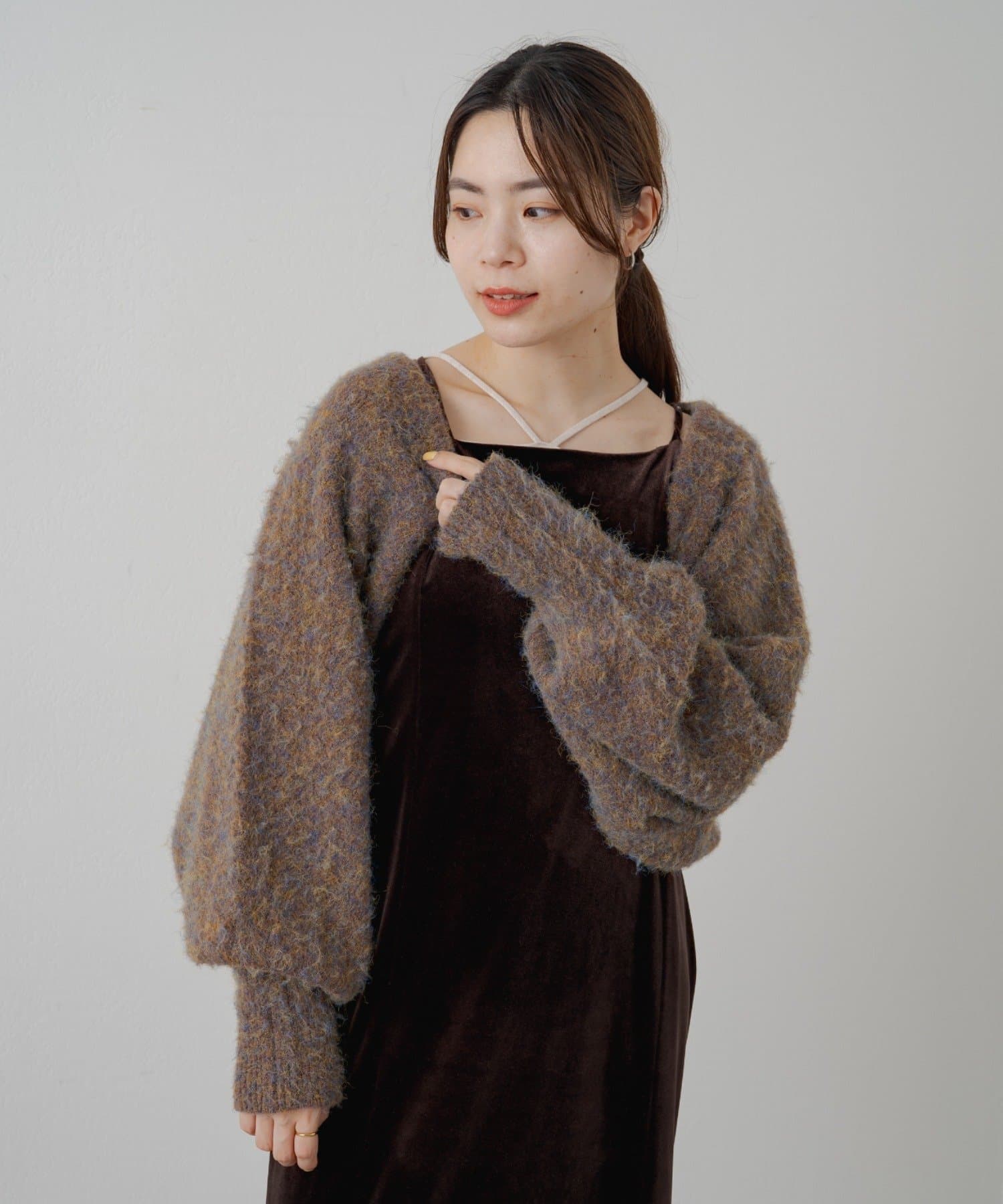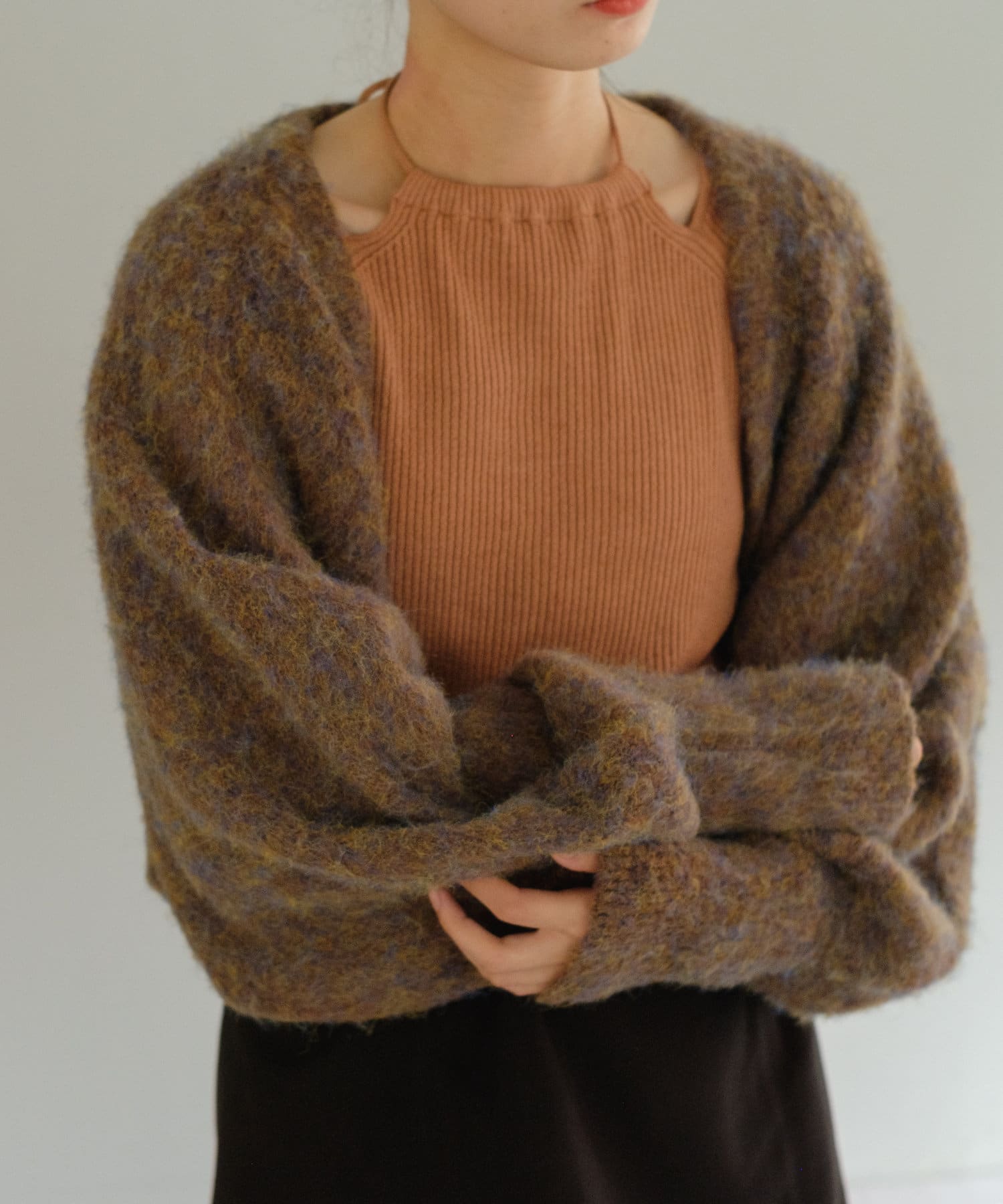 混じり気のあるMIX素材が特徴のメランジニットボレロ。
