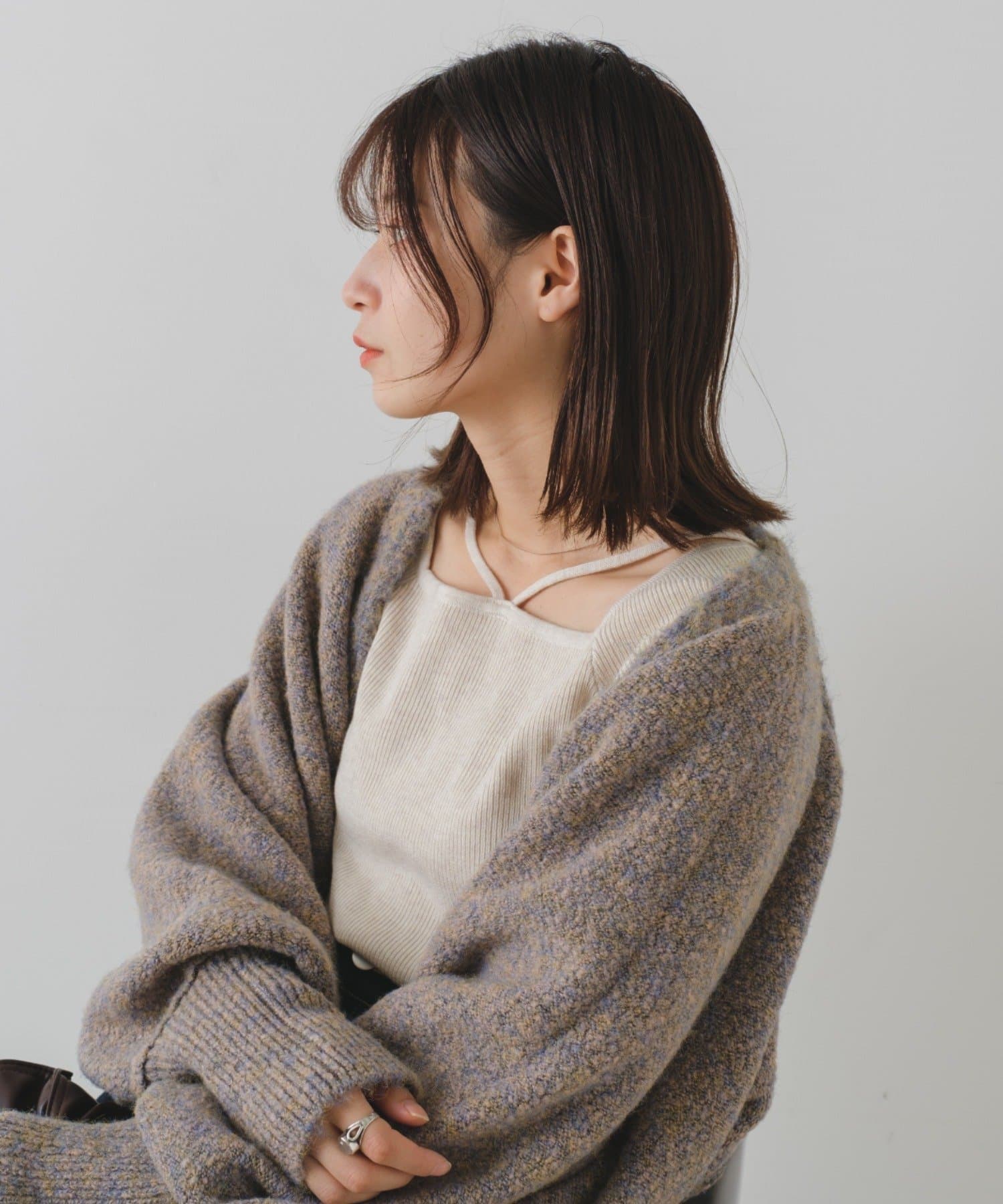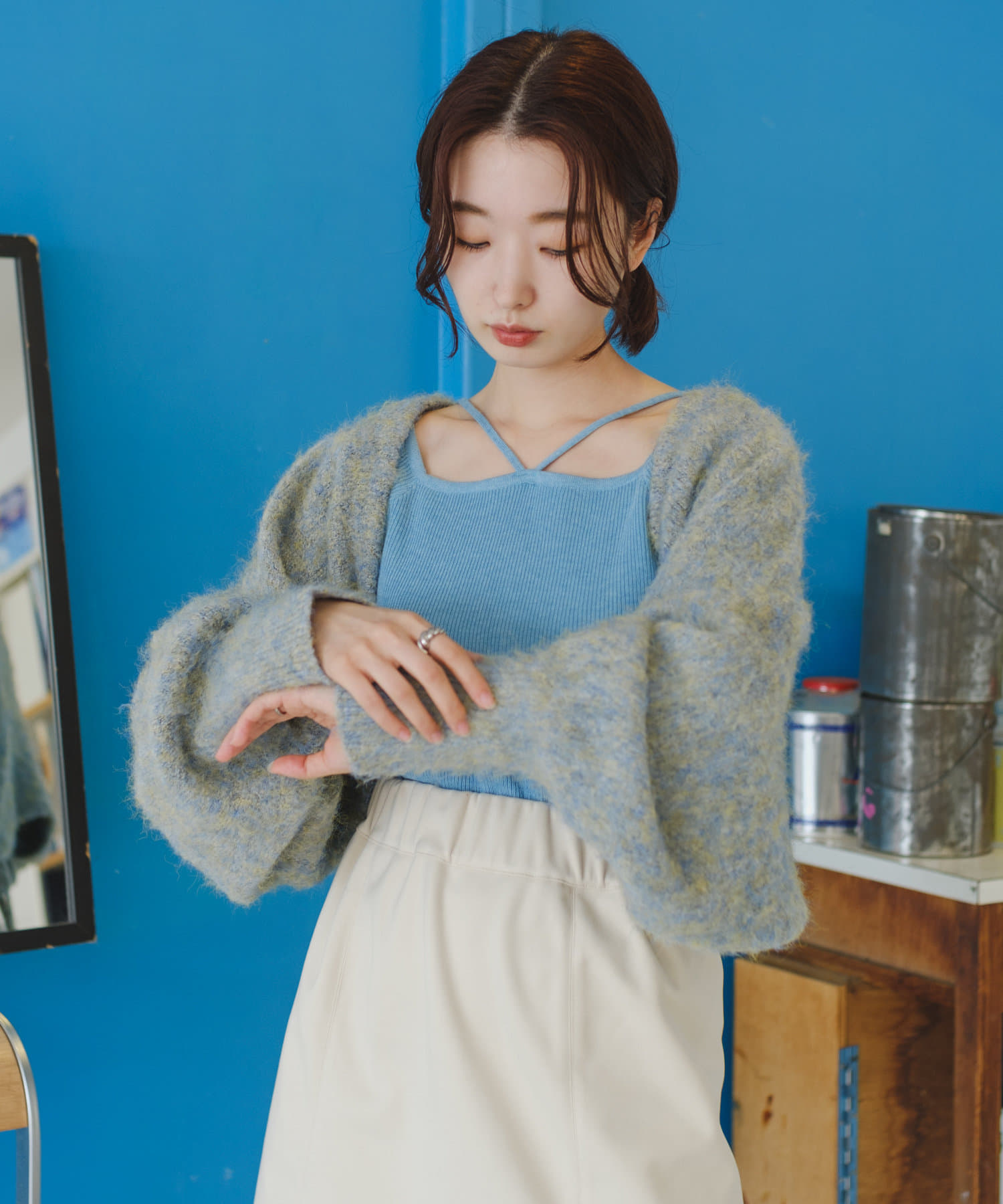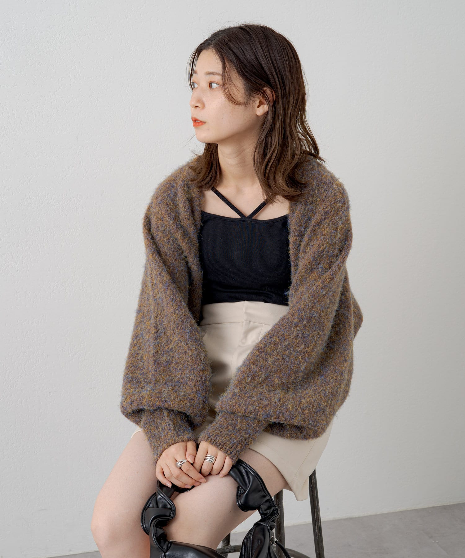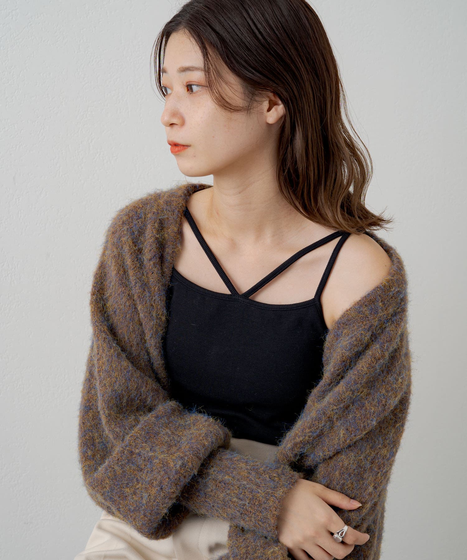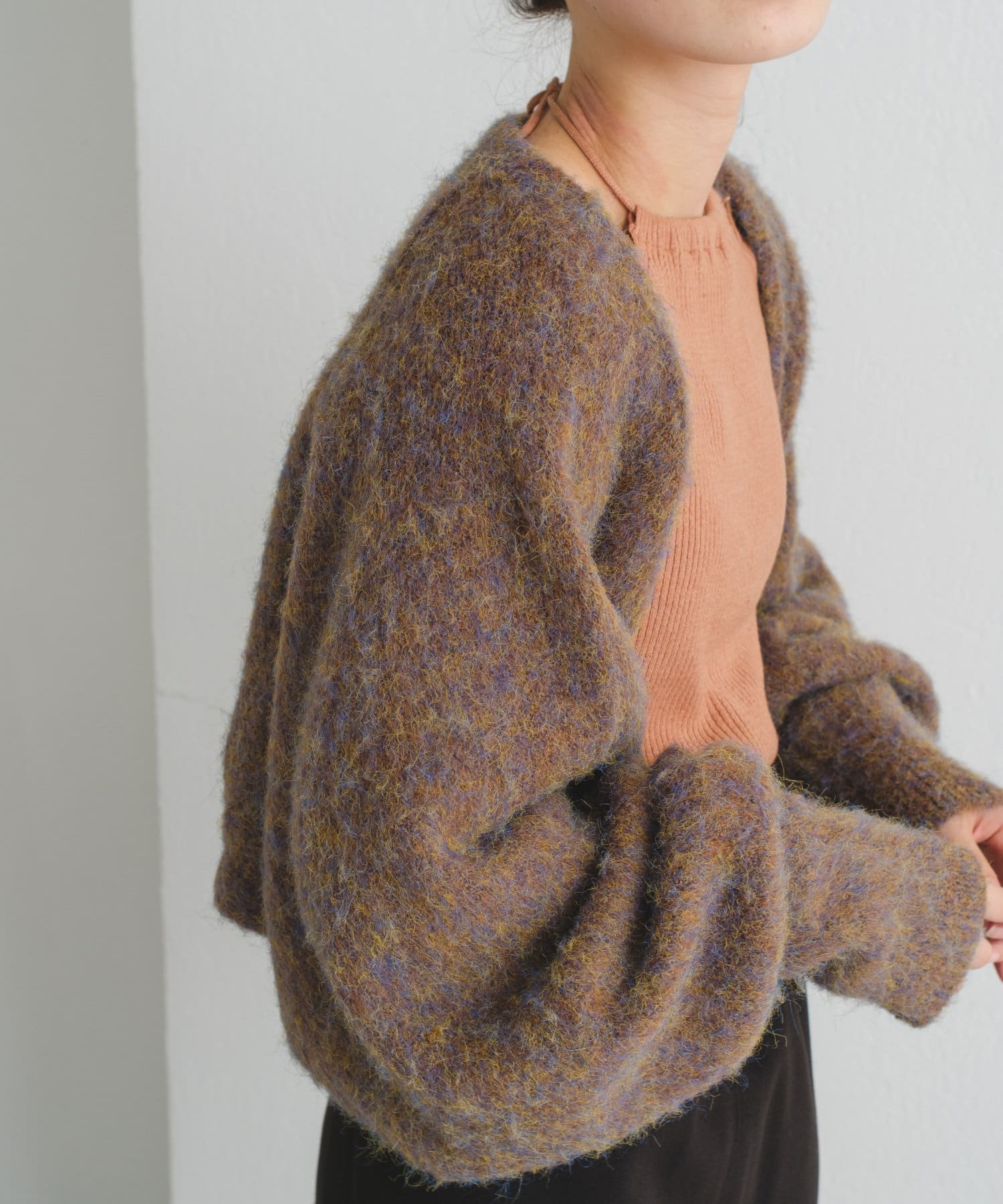 混じり気のあるMIX素材が特徴のメランジニットボレロ。