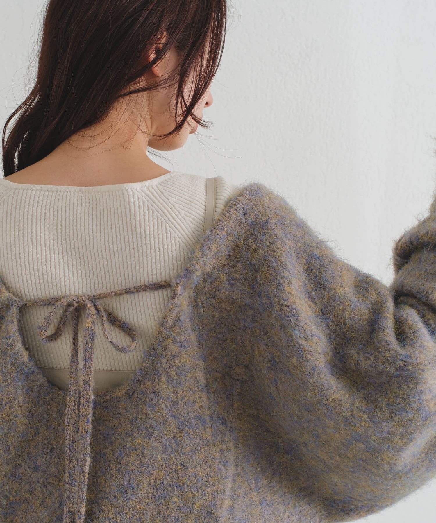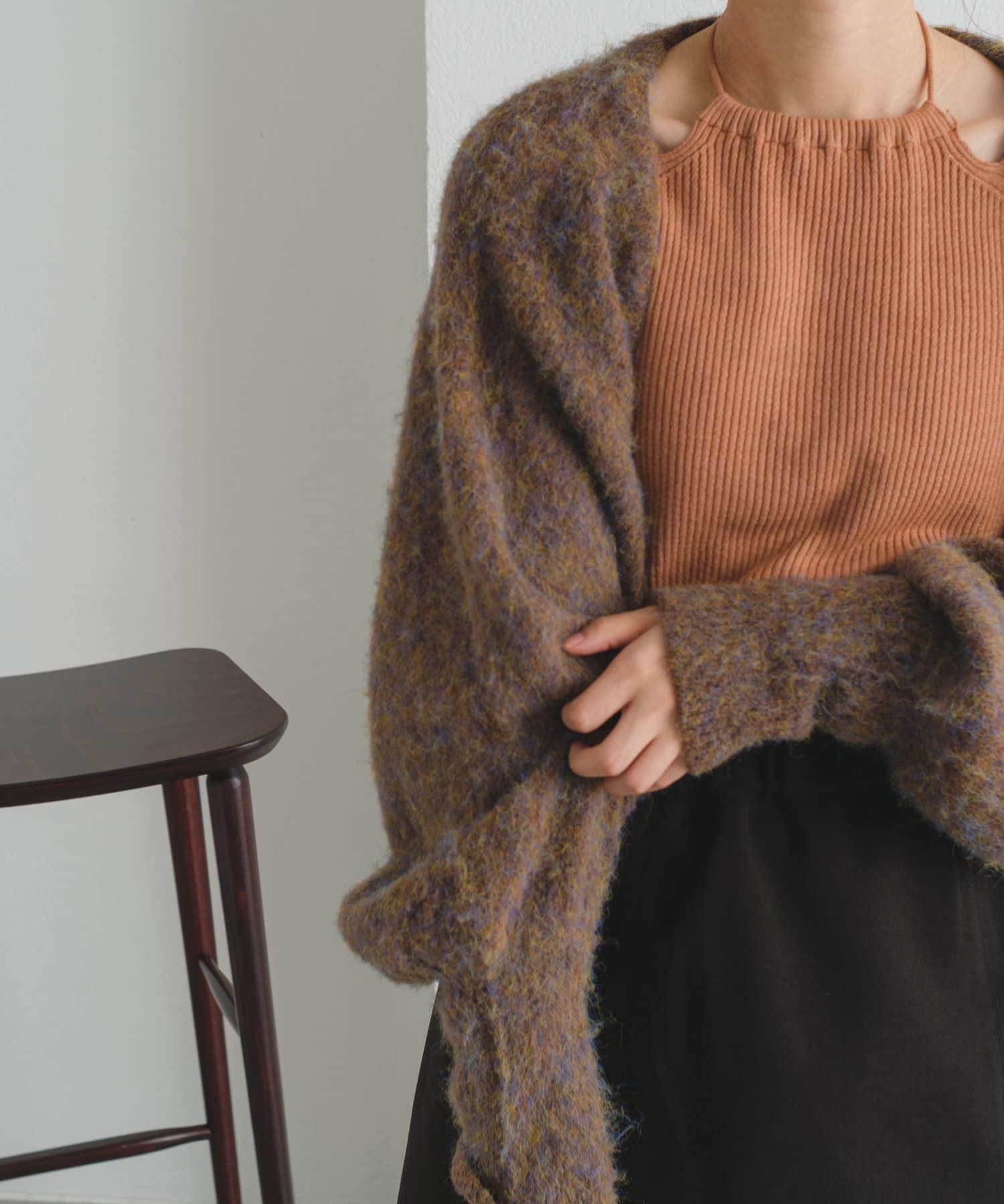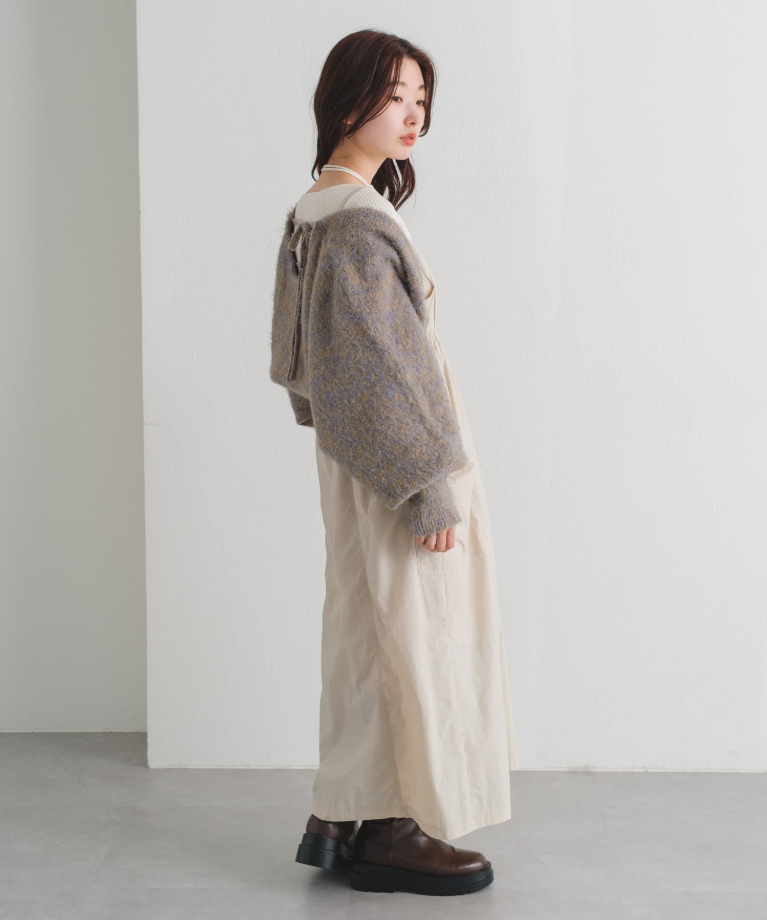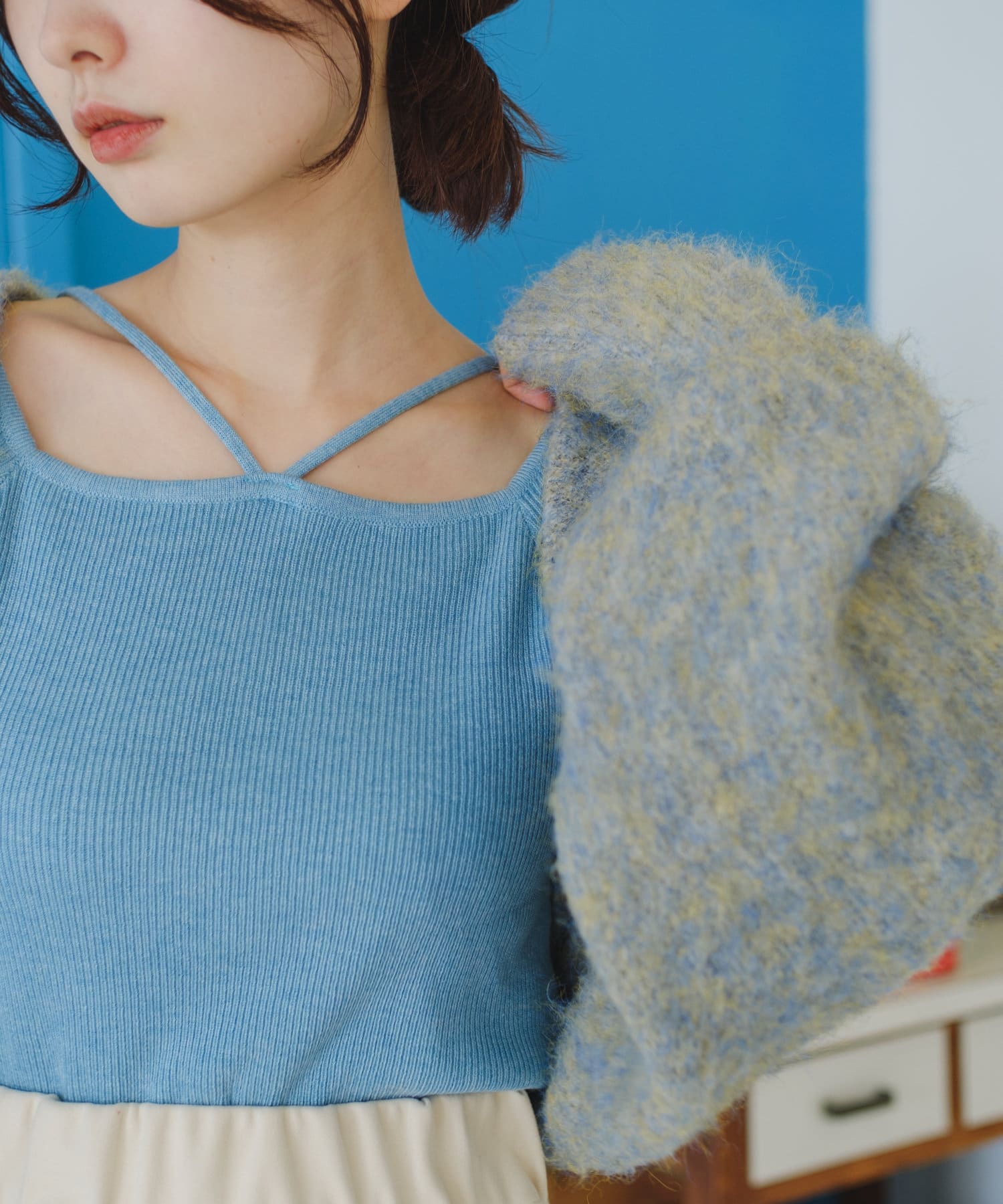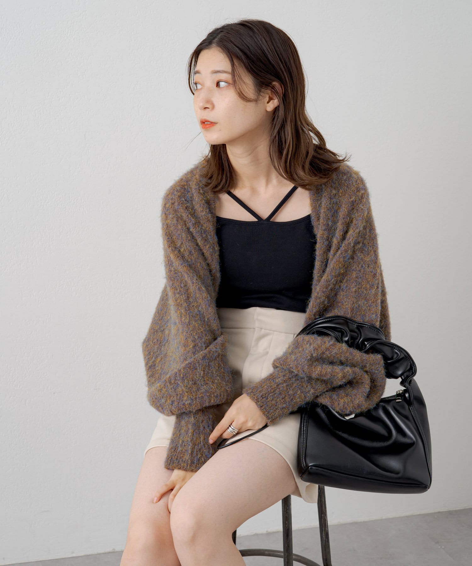 混じり気のあるMIX素材が特徴のメランジニットボレロ。