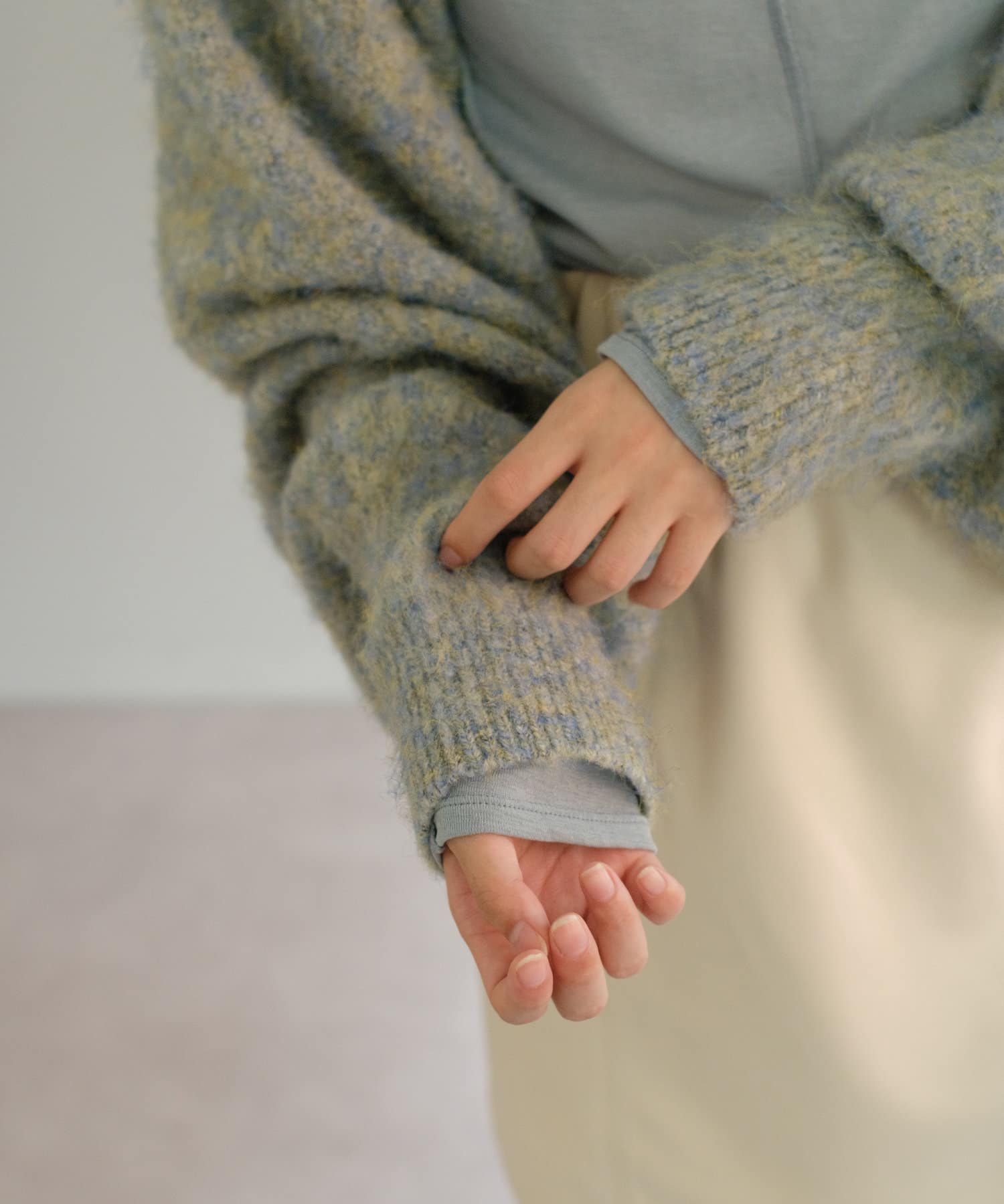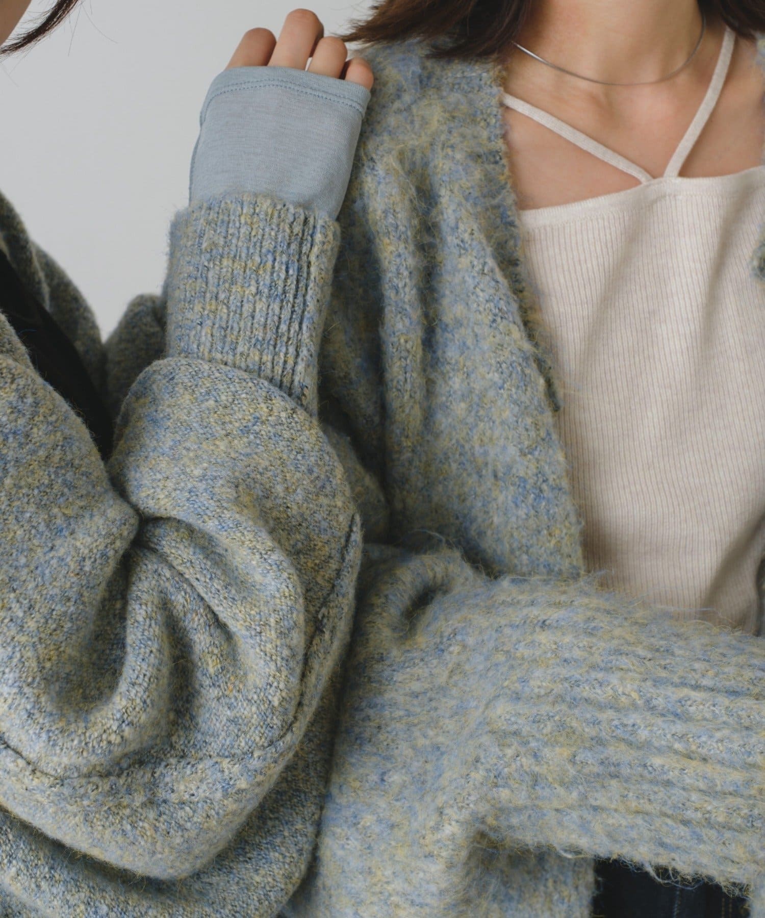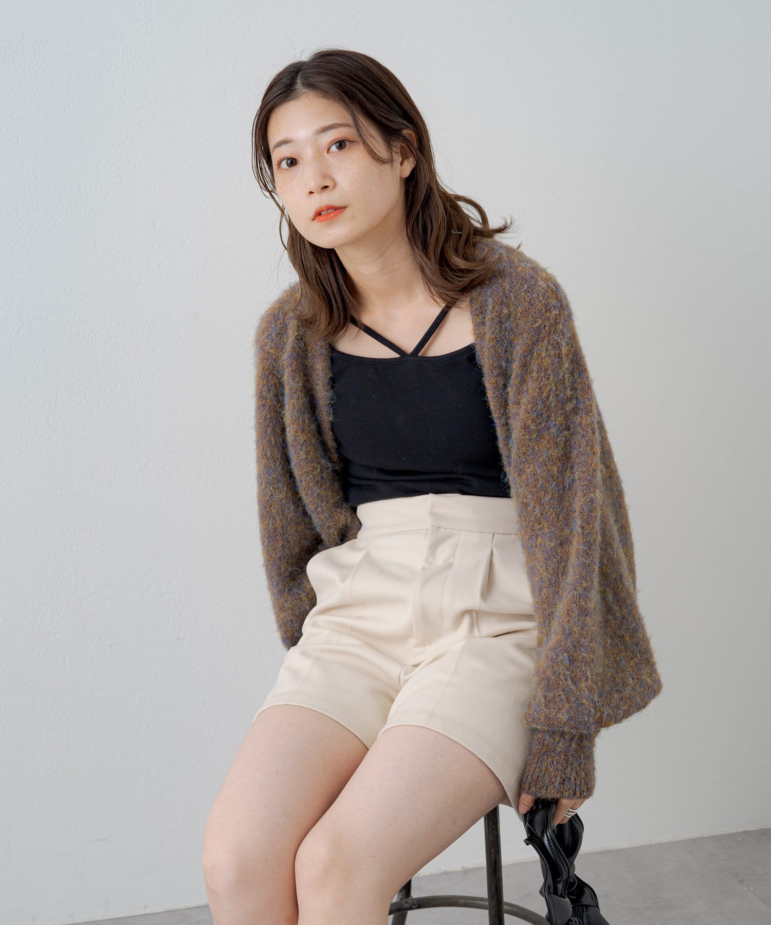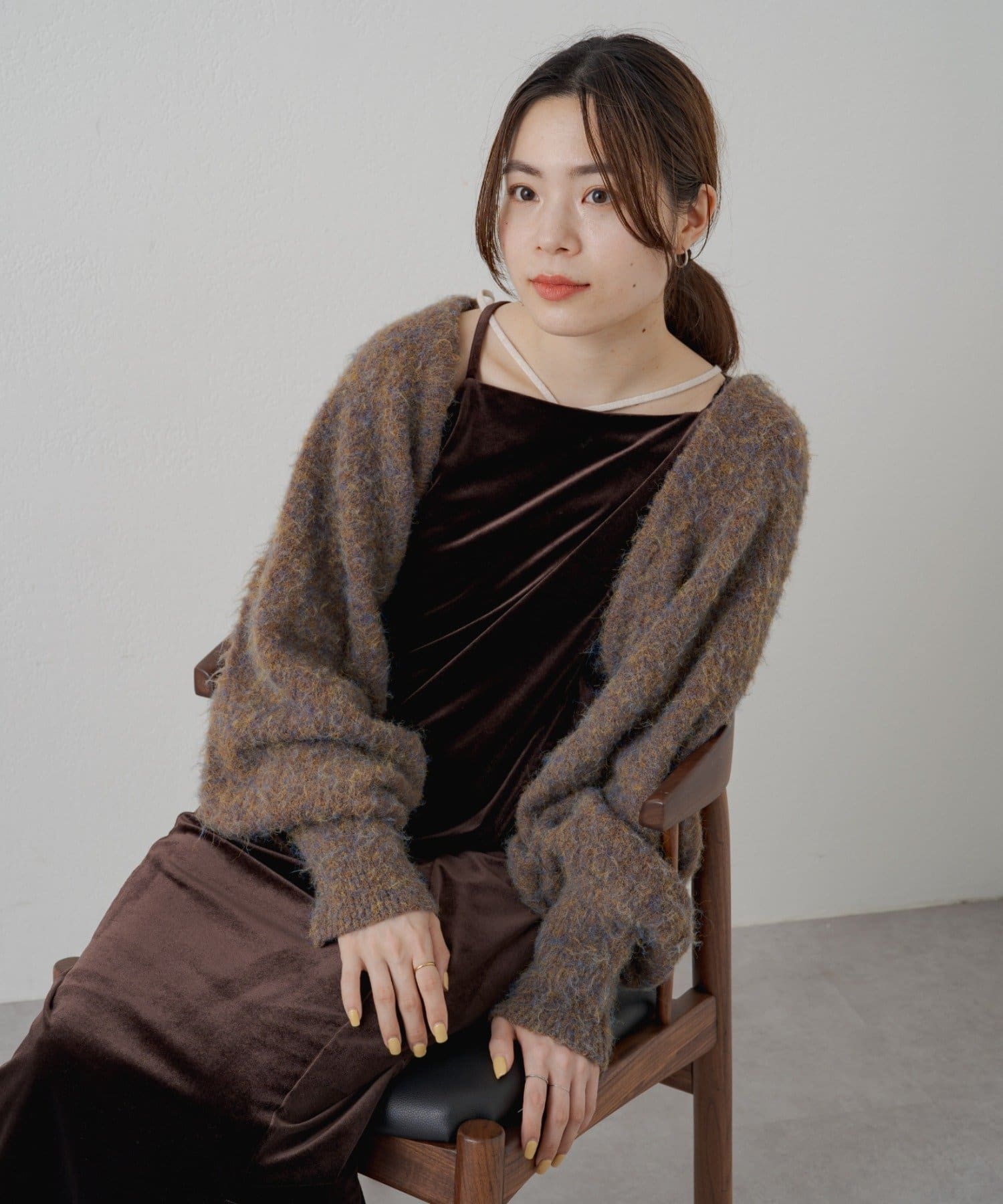 混じり気のあるMIX素材が特徴のメランジニットボレロ。