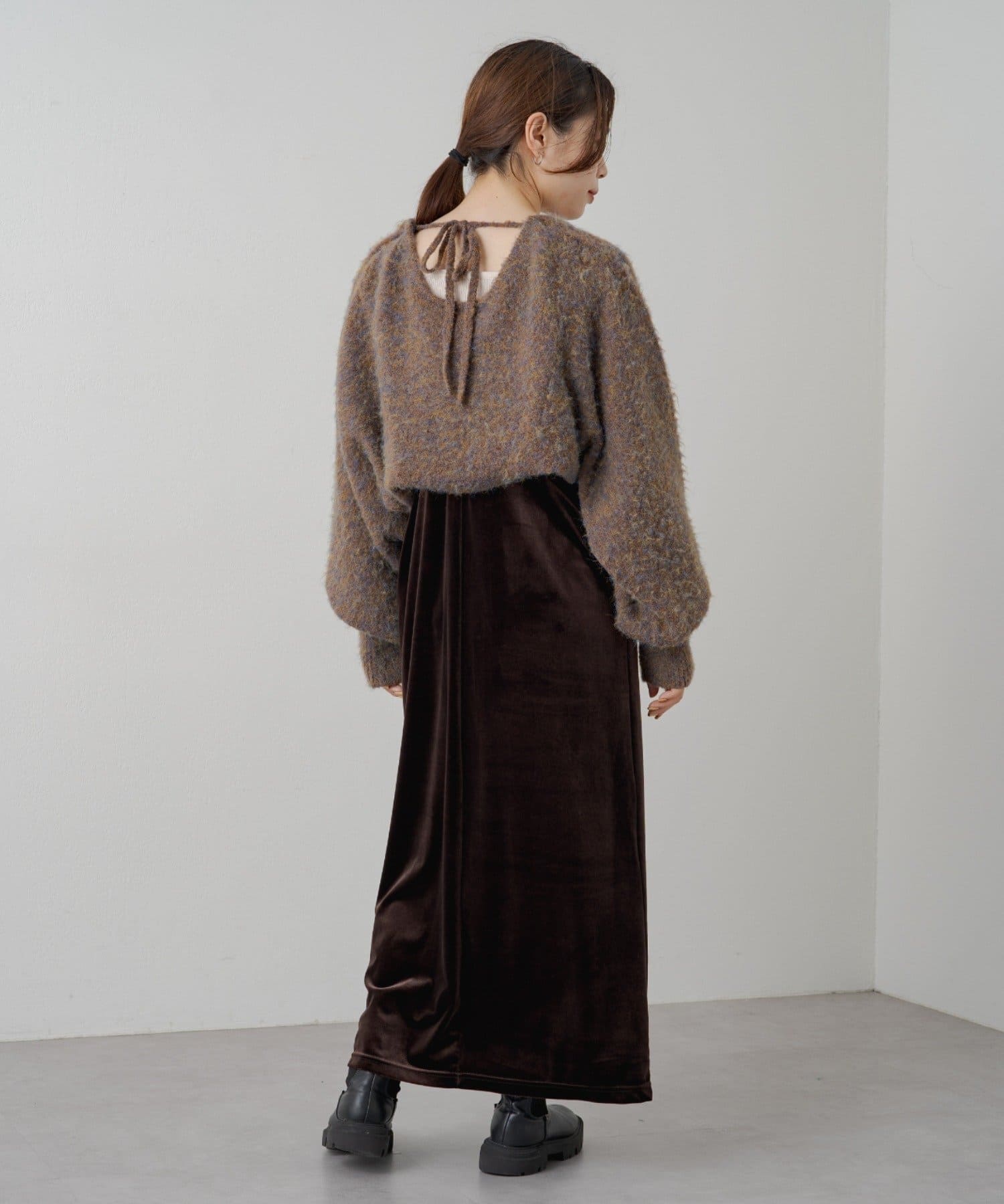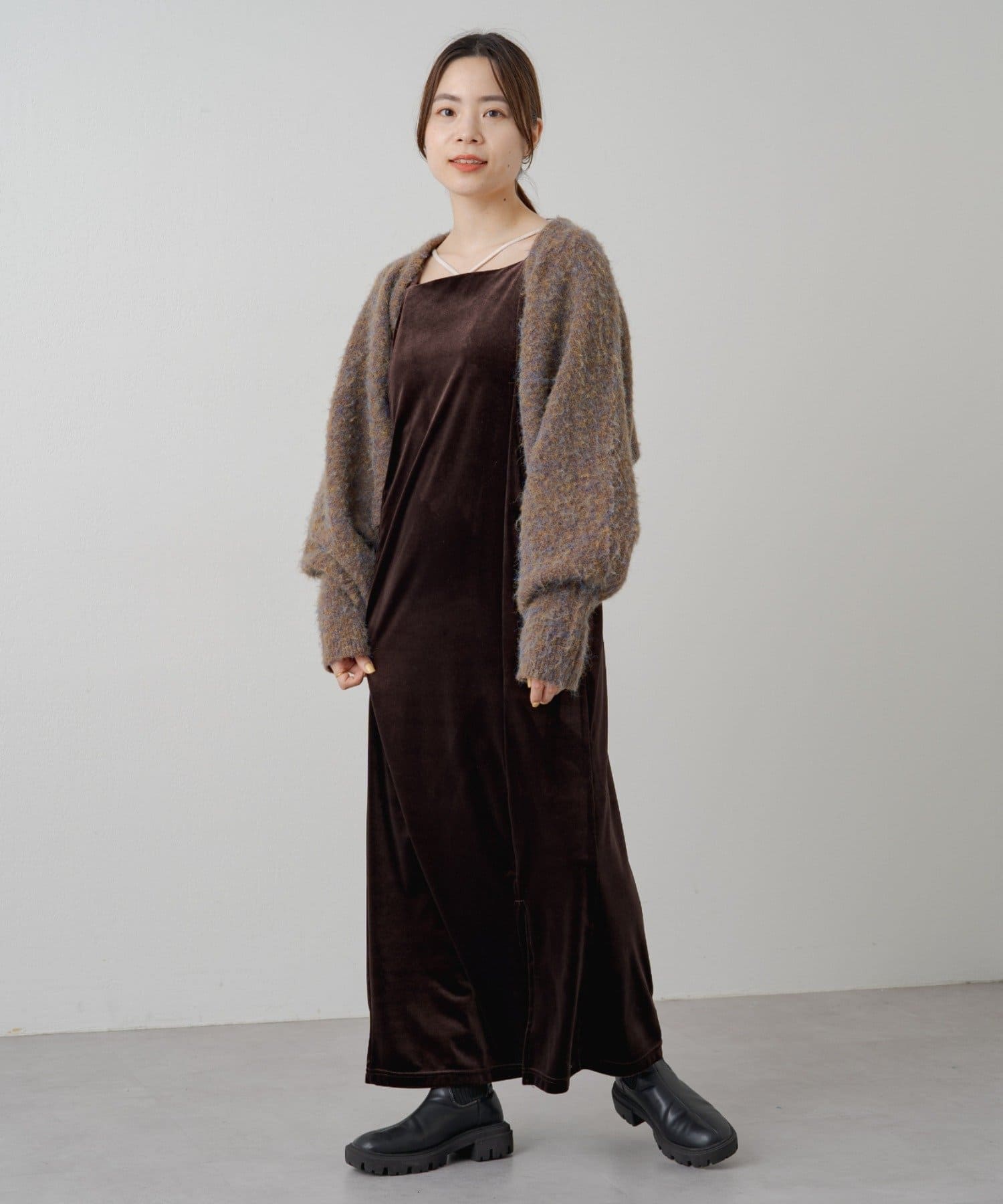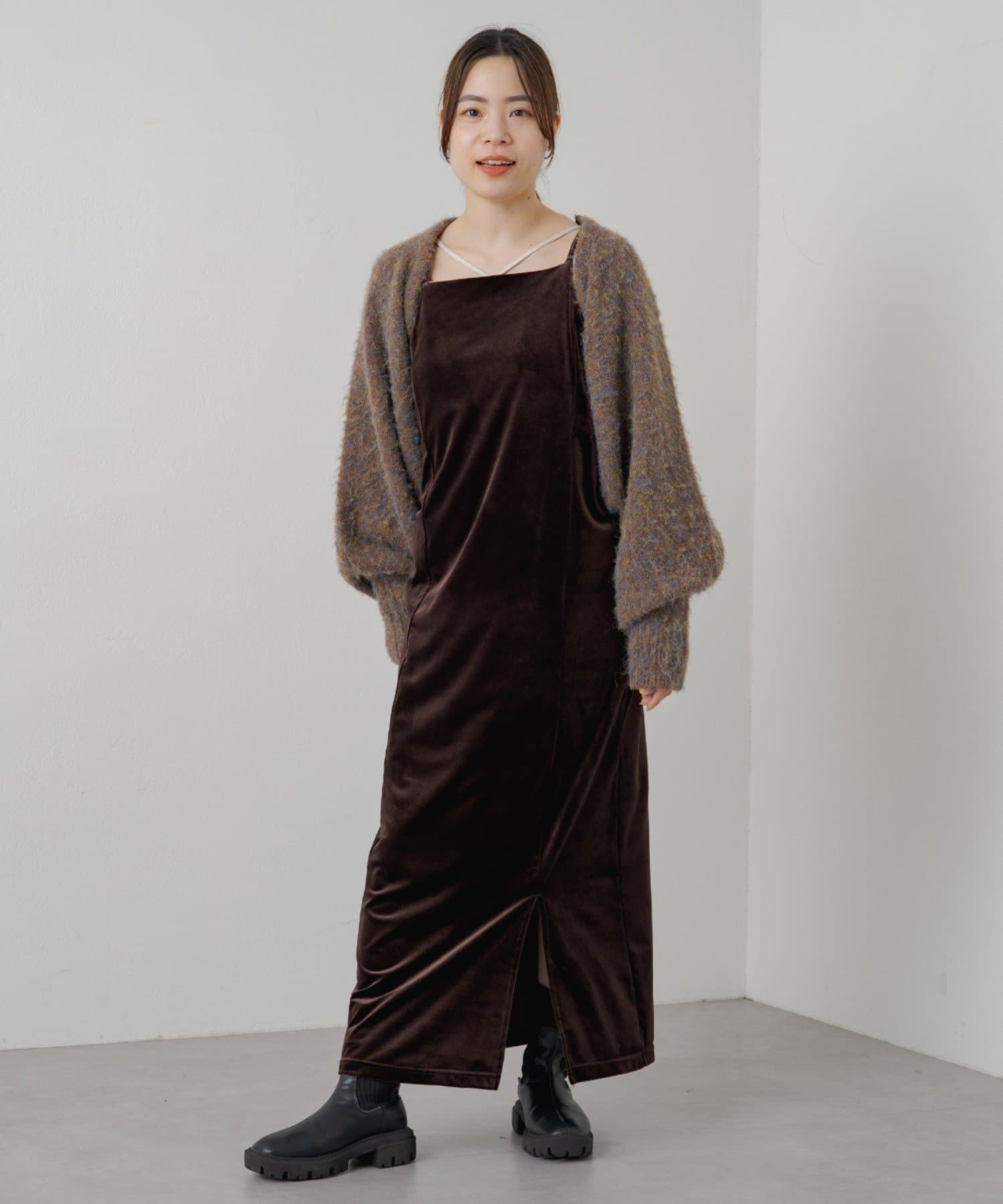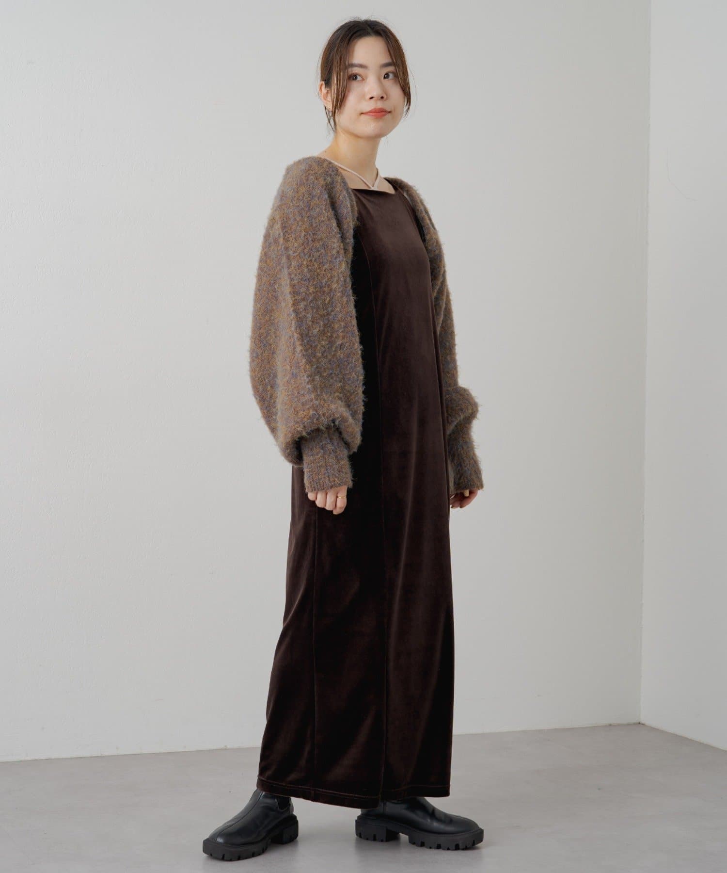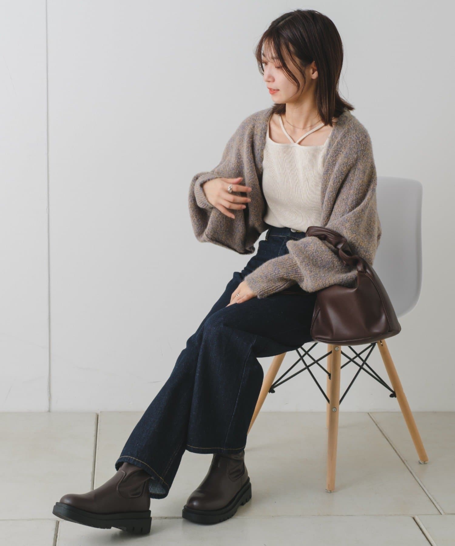 混じり気のあるMIX素材が特徴のメランジニットボレロ。