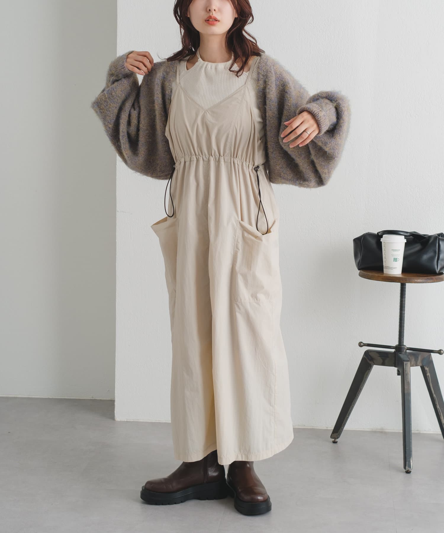ワンピースに羽織ってメリハリのあるコーディネートに。
