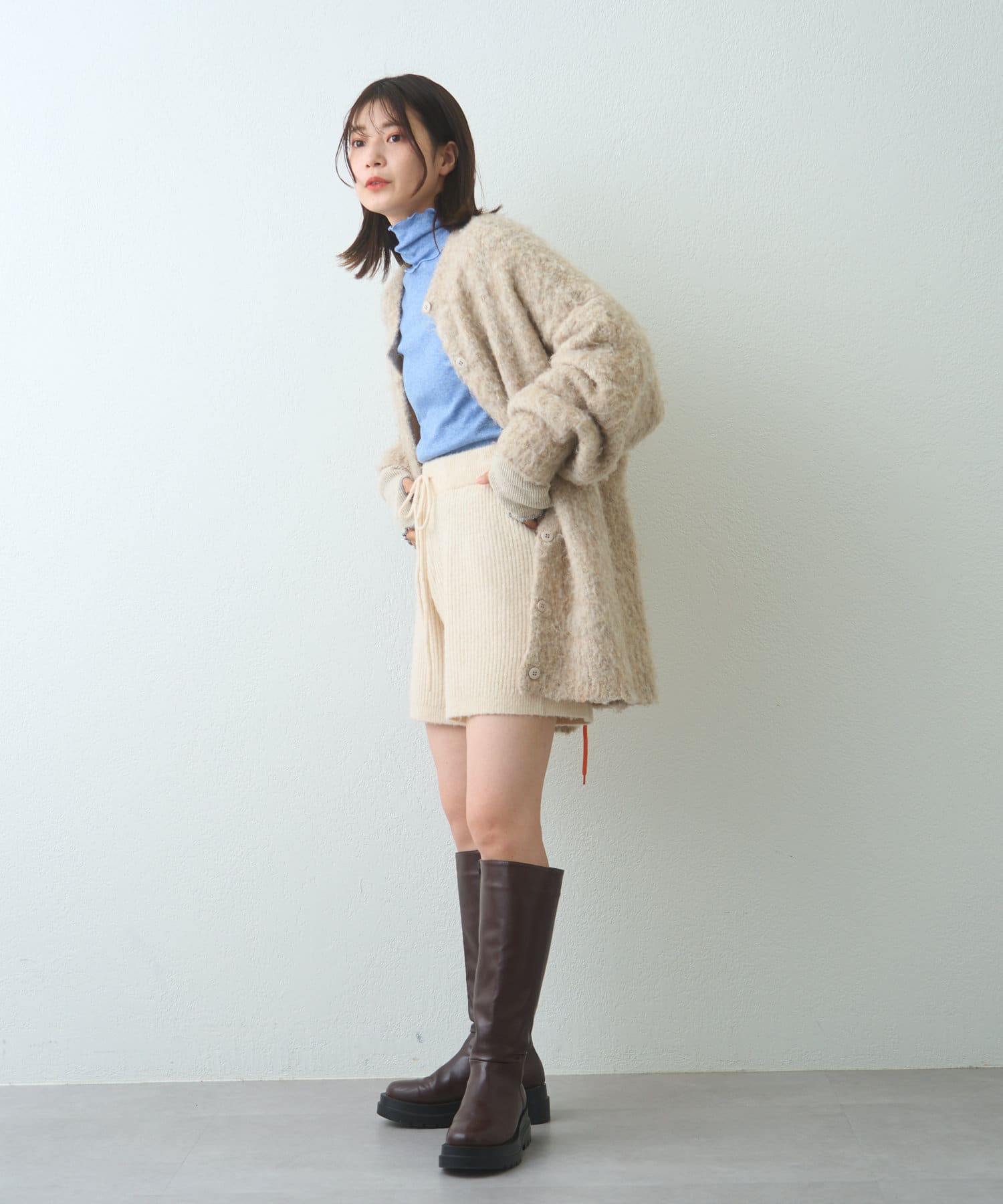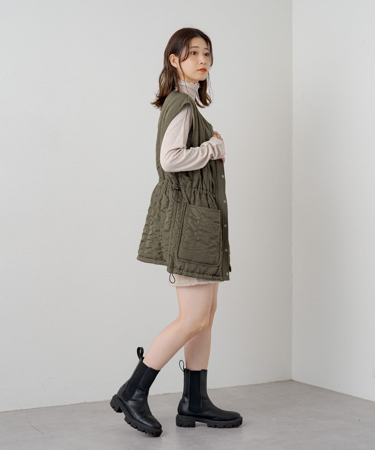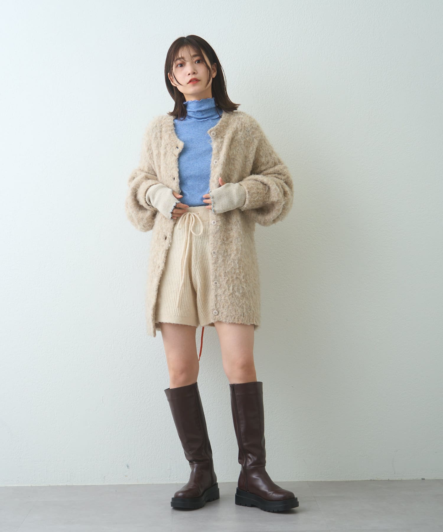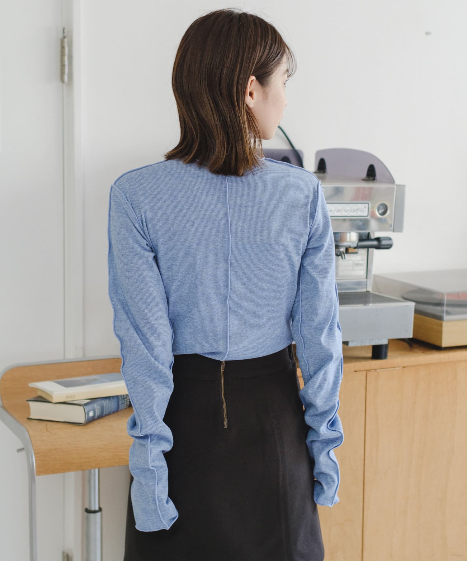 薄手な生地とハイネックを活かしてカーディガン、ニット、スウェット、ワンピースなどの様々なシーンのインナーとしてお使い頂けます。