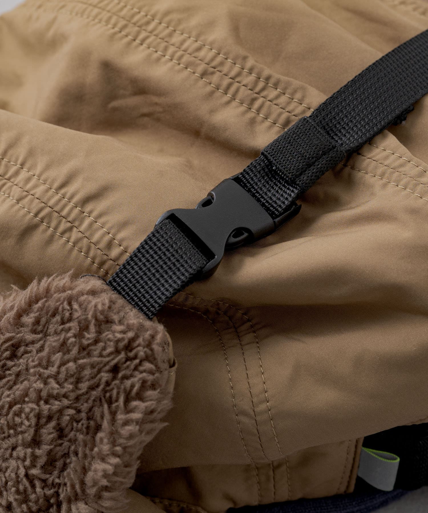 アジャスターの片側には平ゴムを使用し、フィット性を高め実用面を考えています。