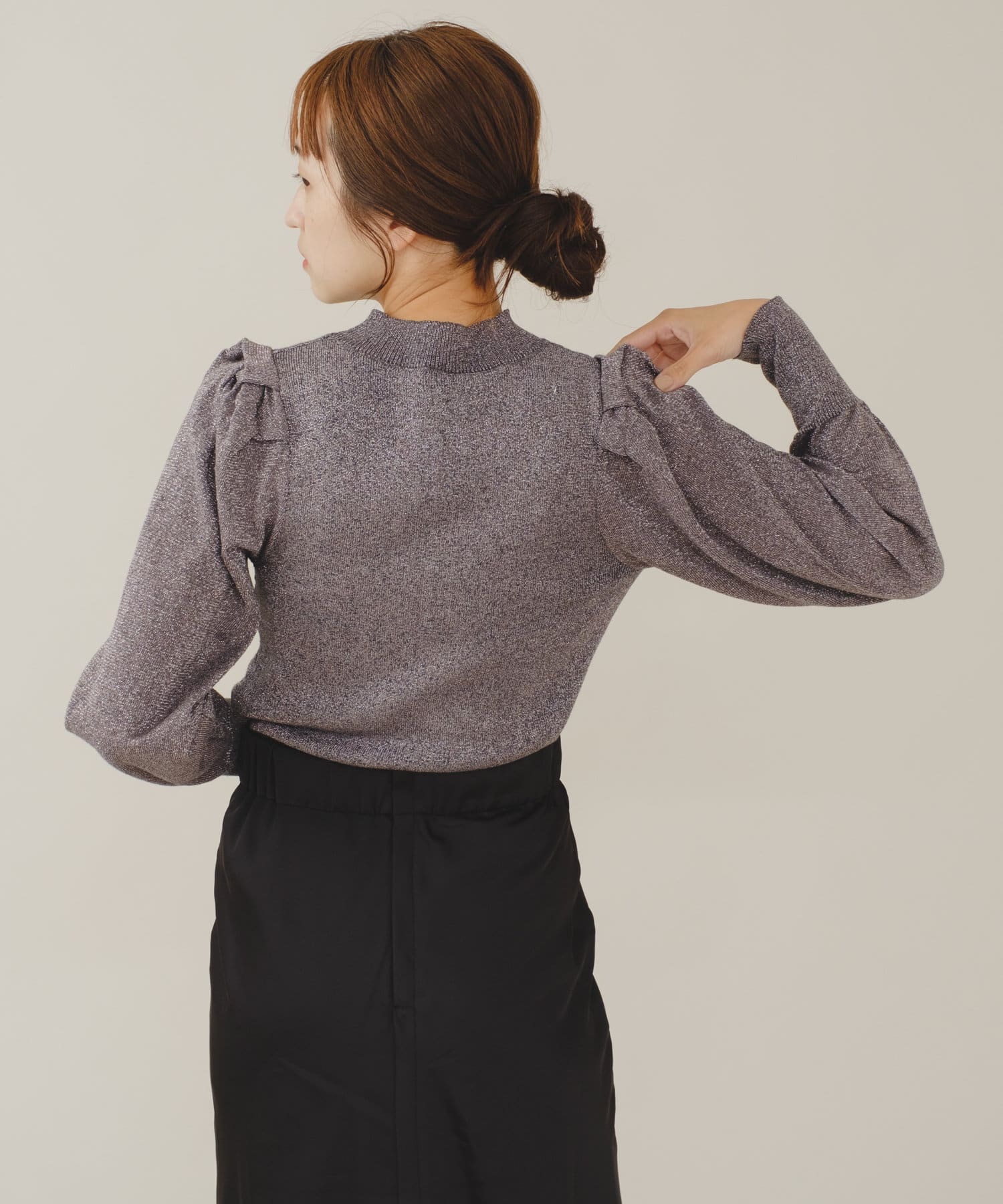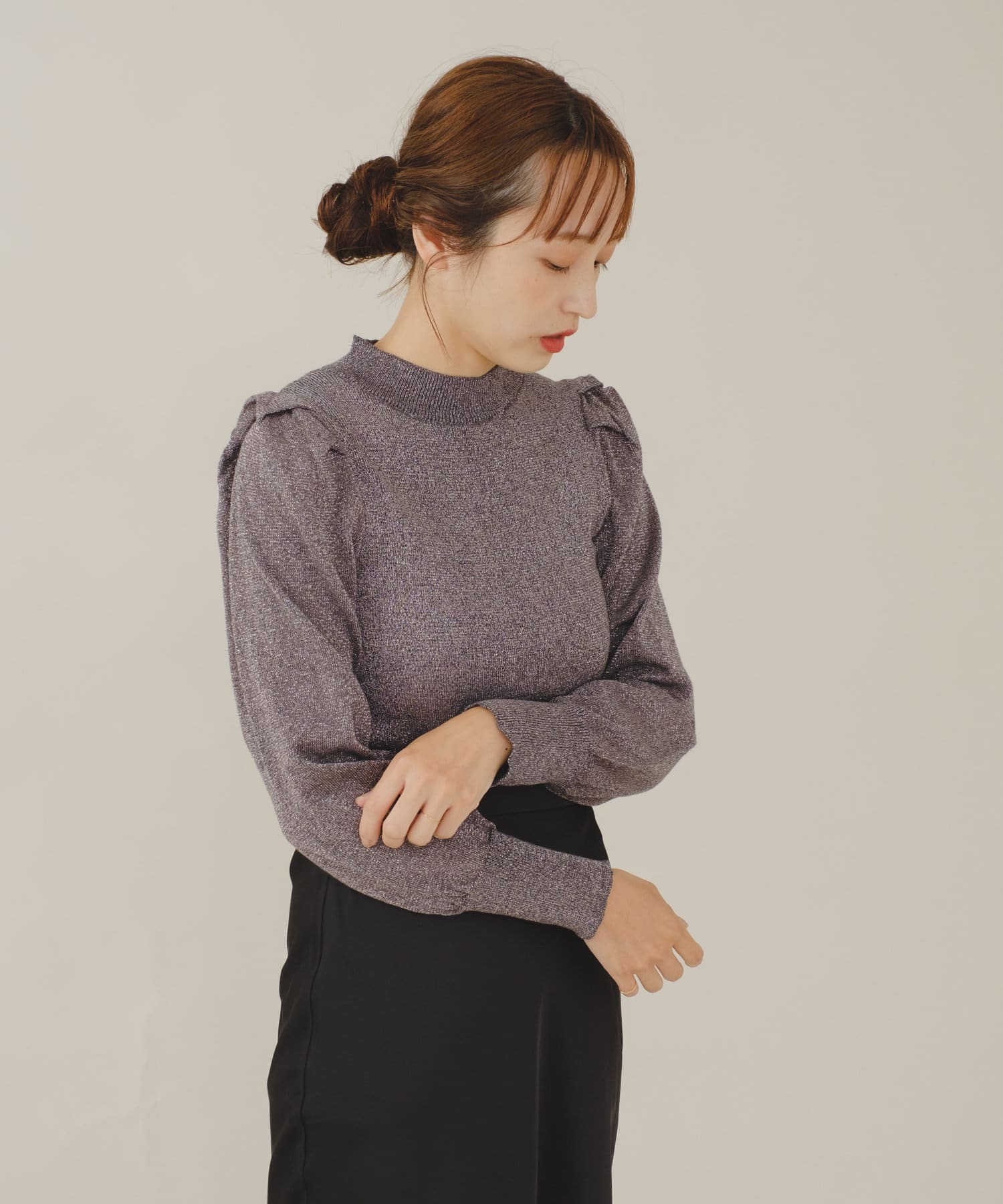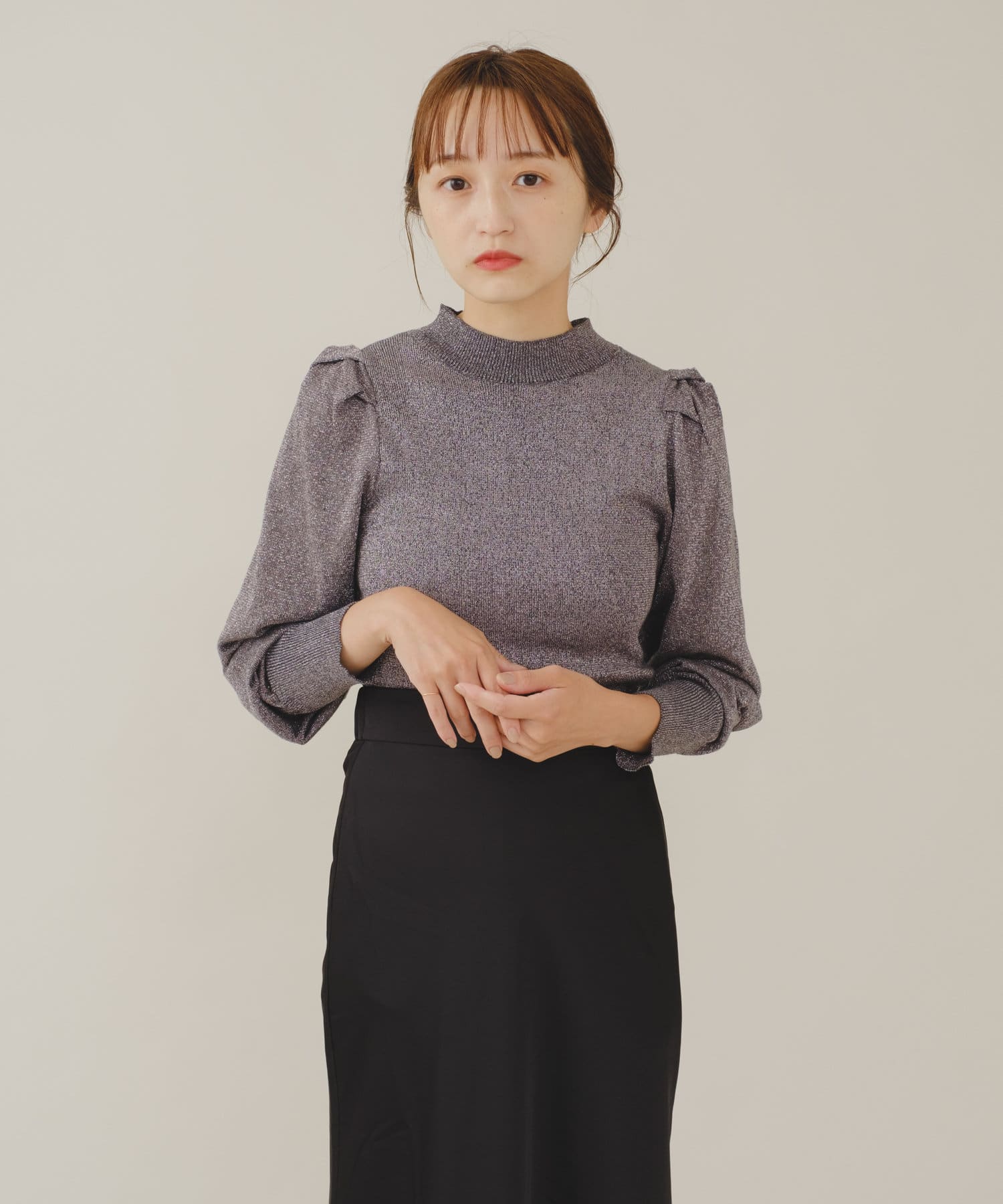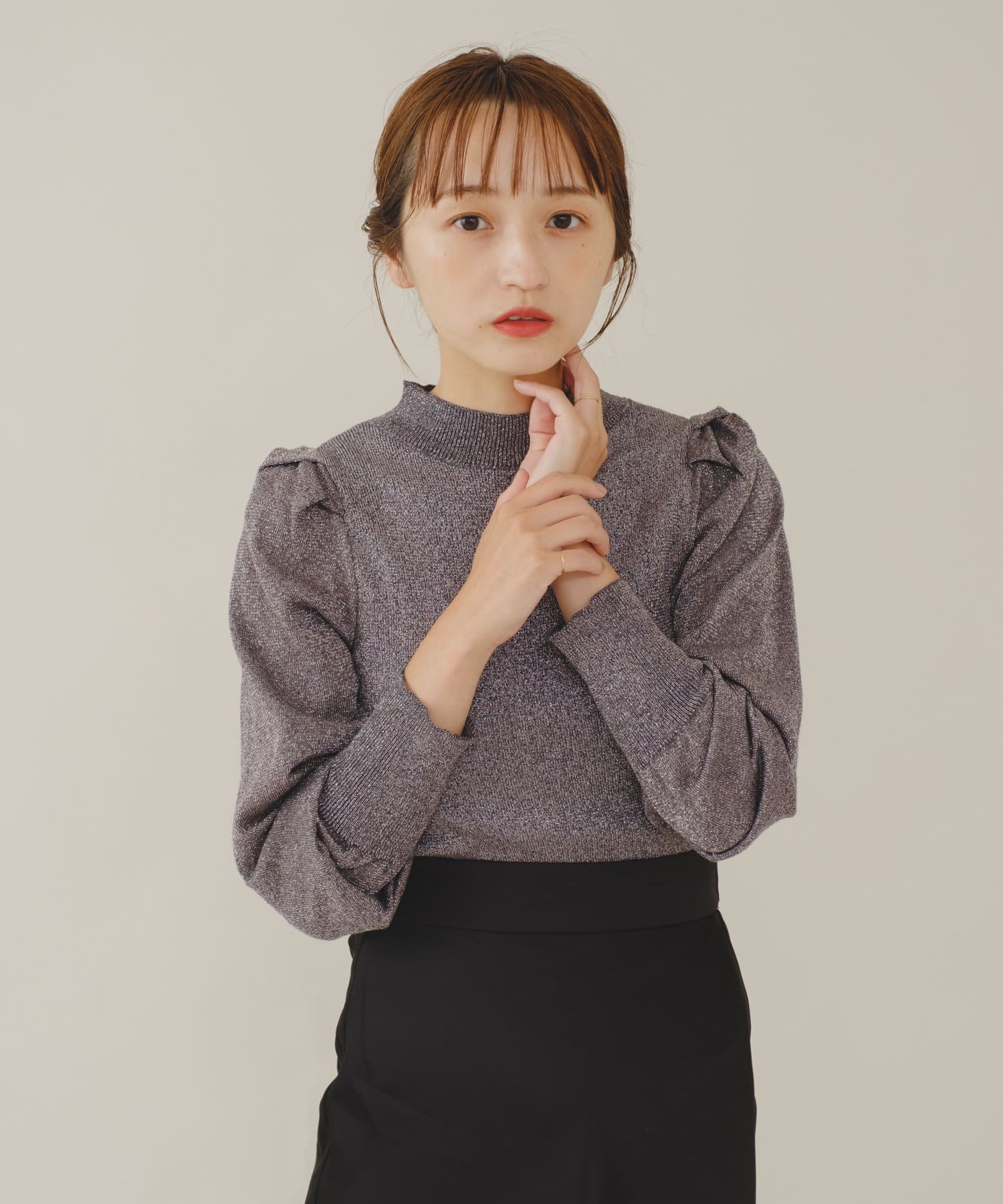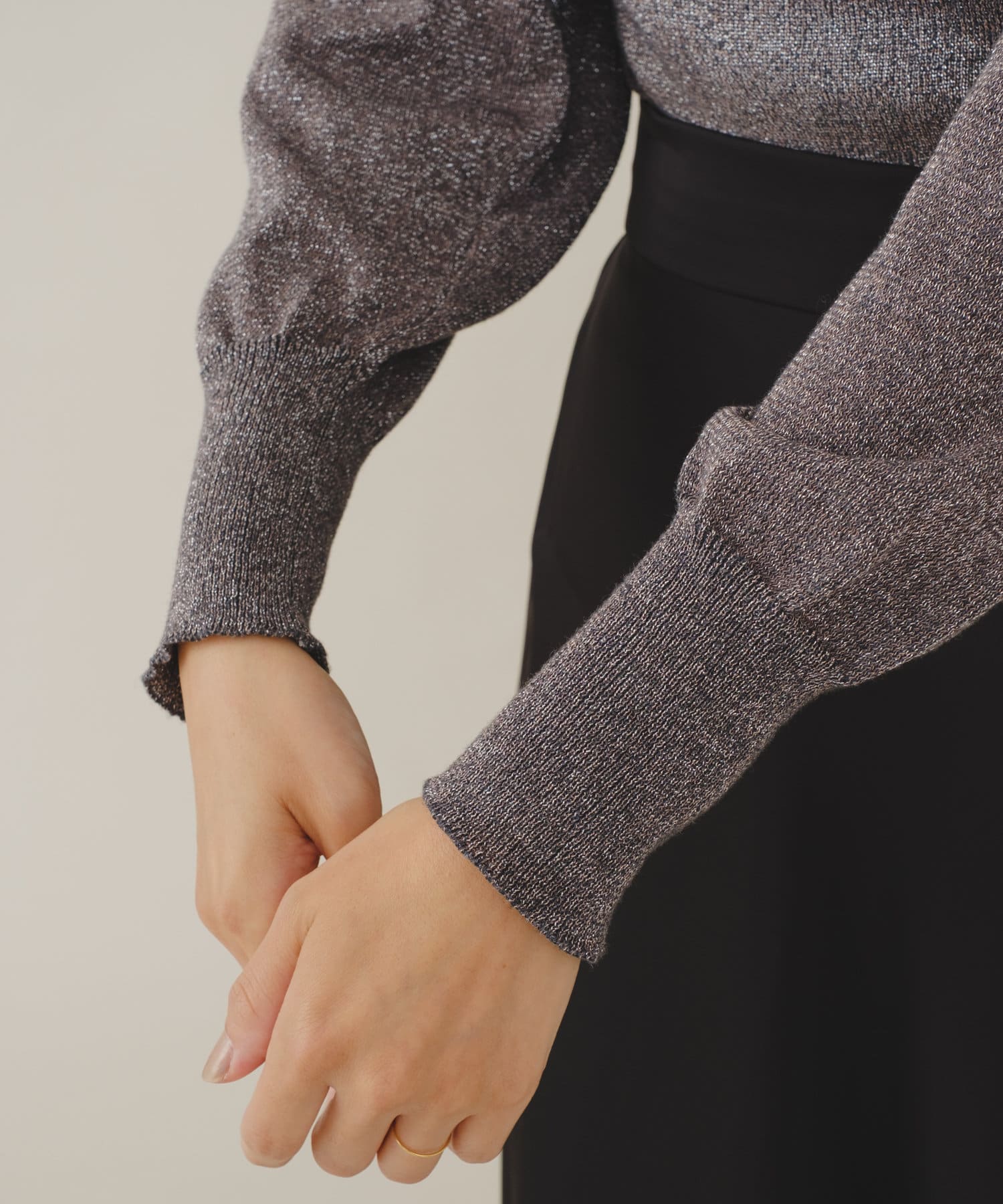 今年のトレンドのラメを使用したフェミニンな装いのパフニット