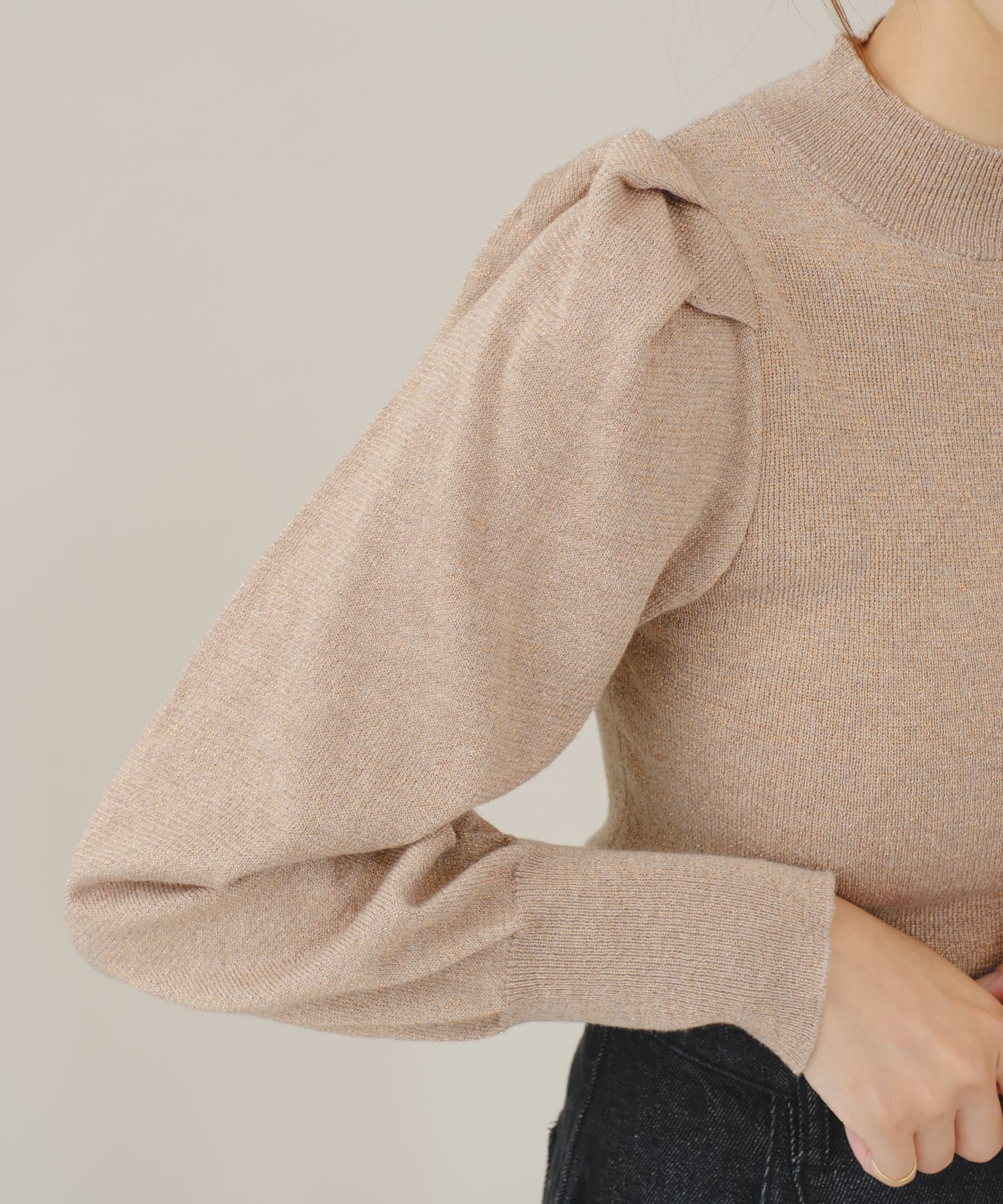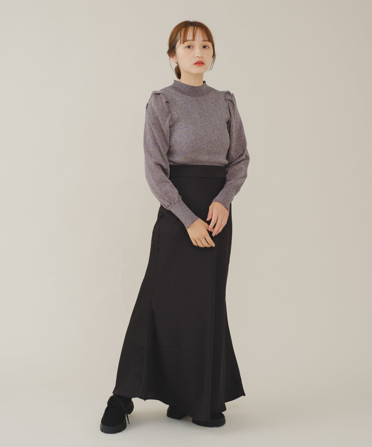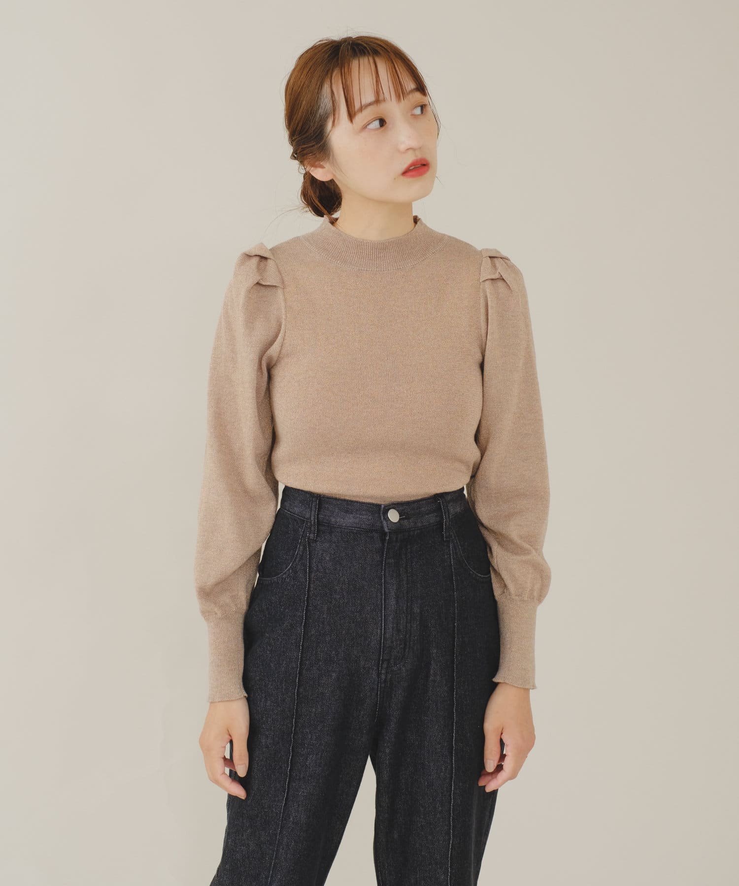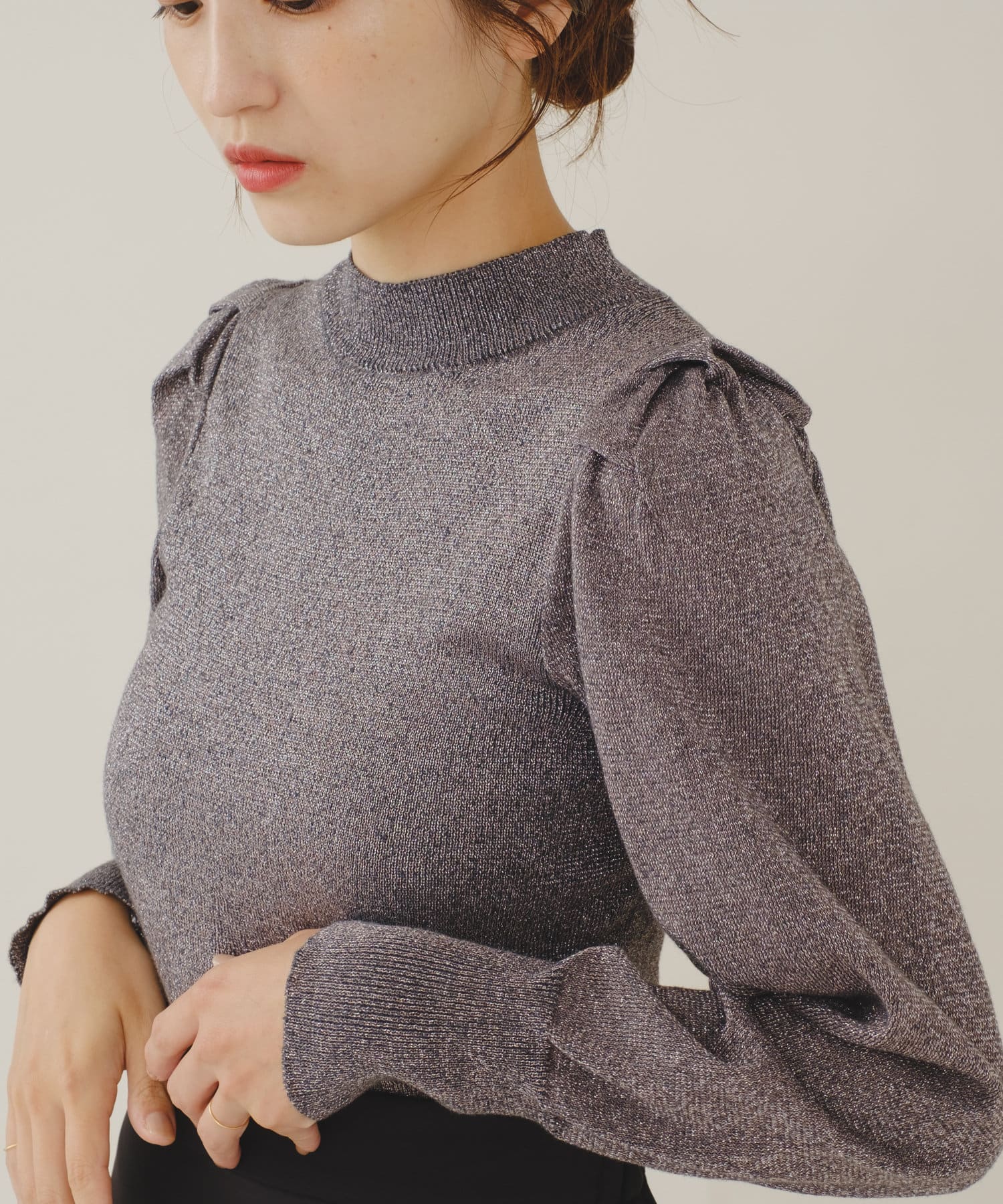 今年のトレンドのラメを使用したフェミニンな装いのパフニット