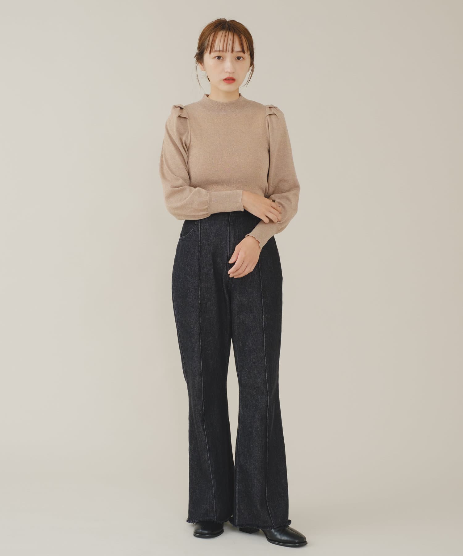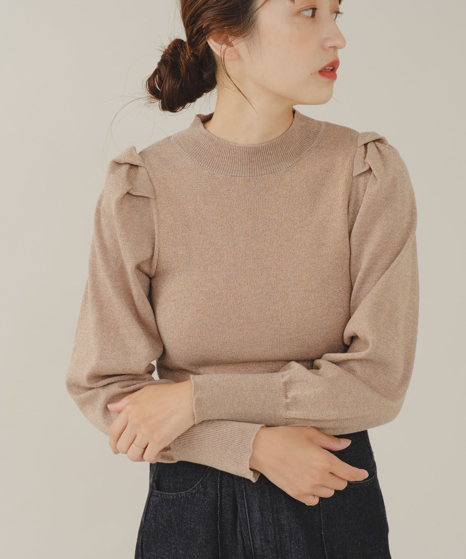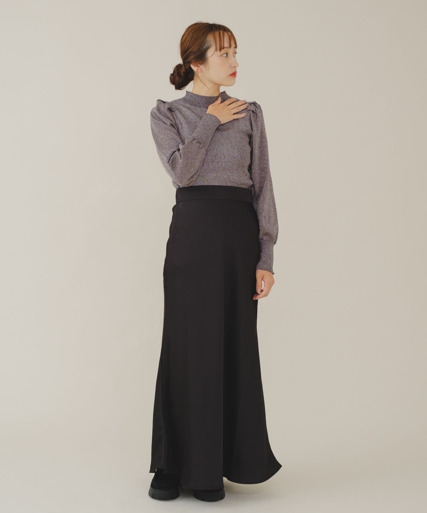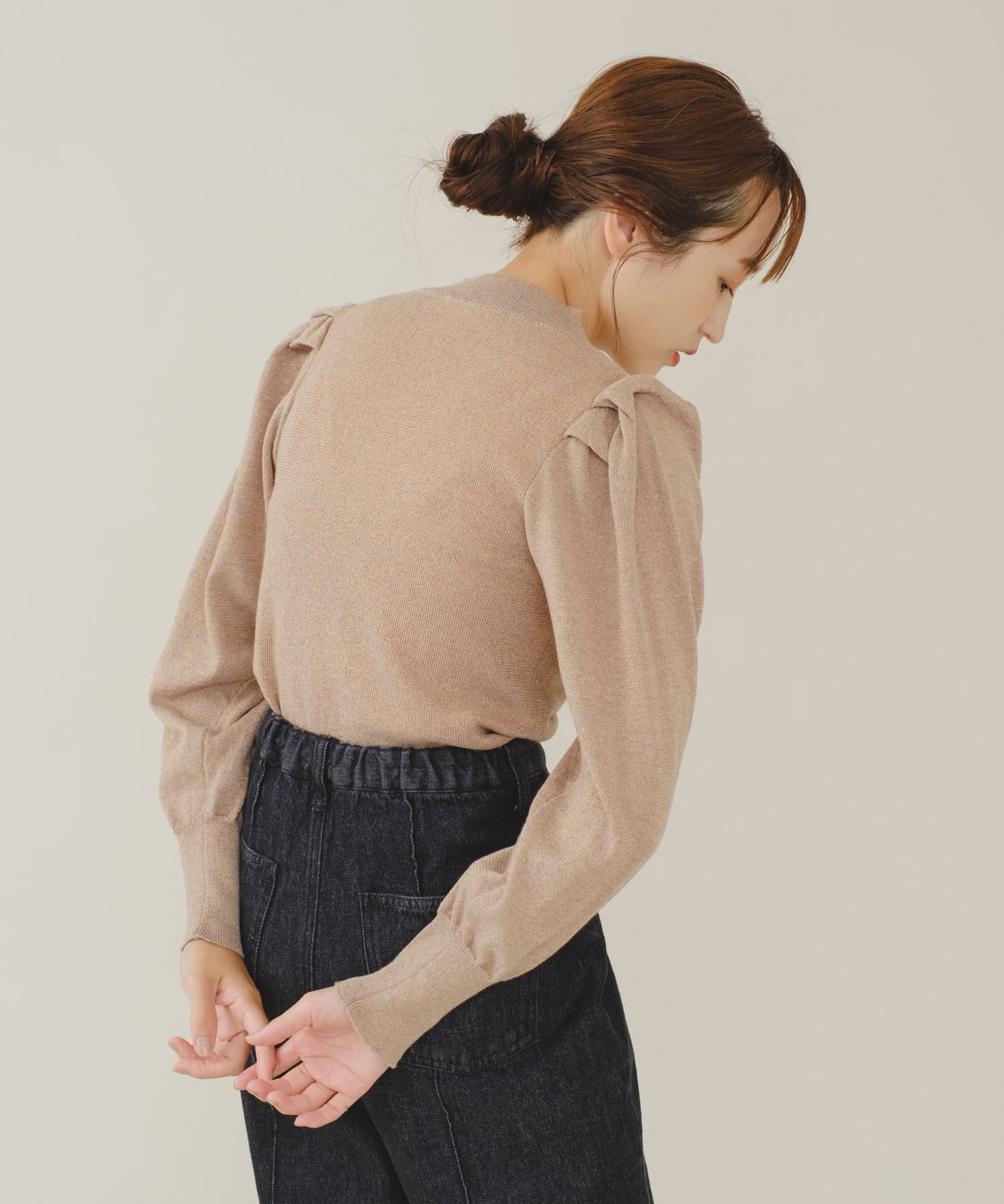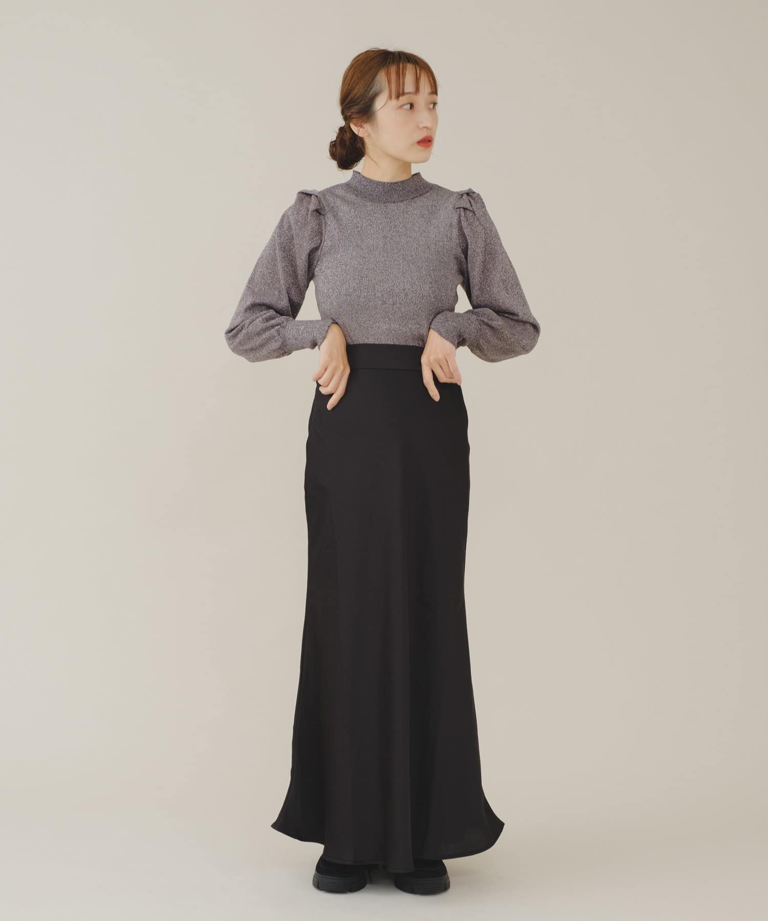 今年のトレンドのラメを使用したフェミニンな装いのパフニット