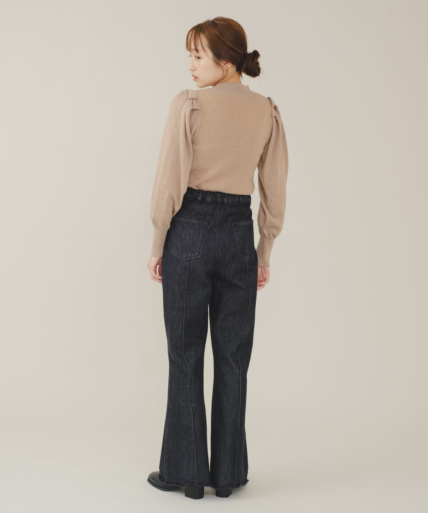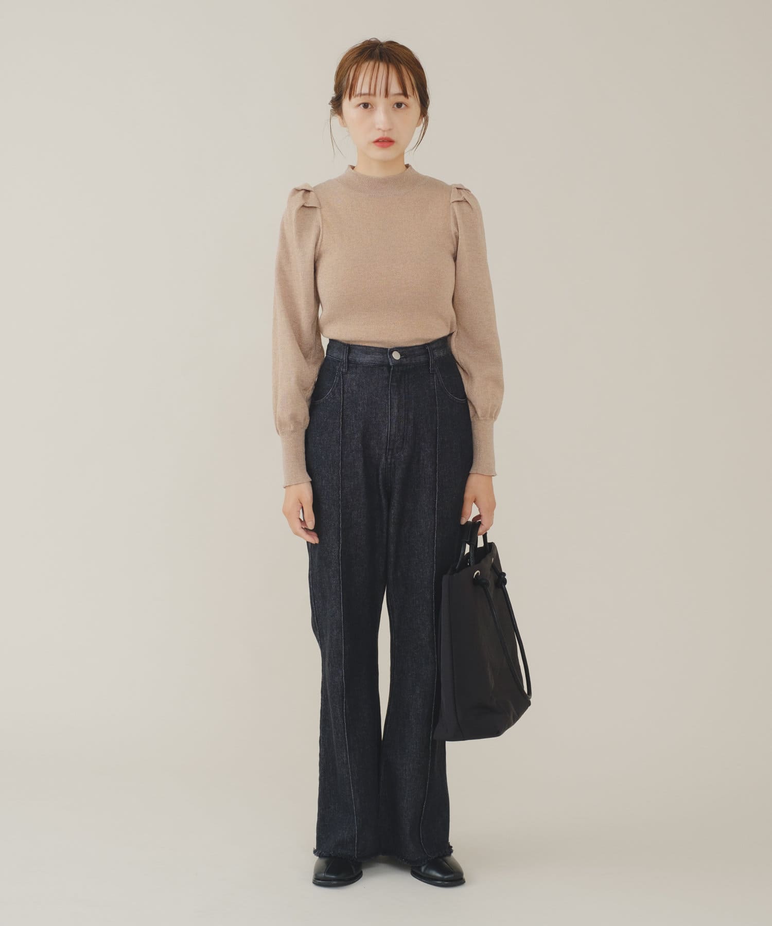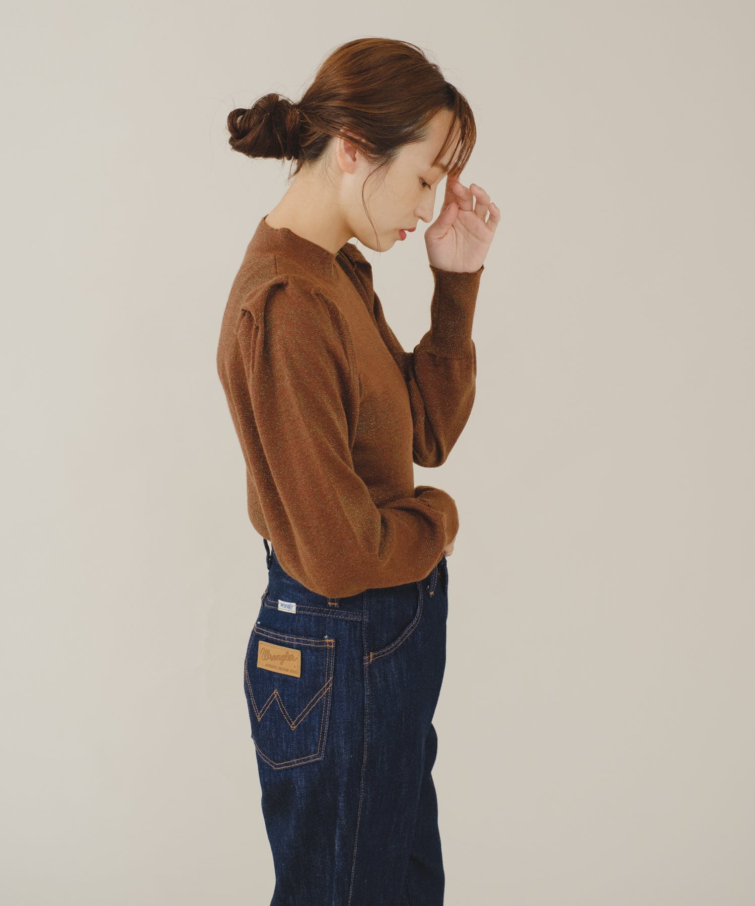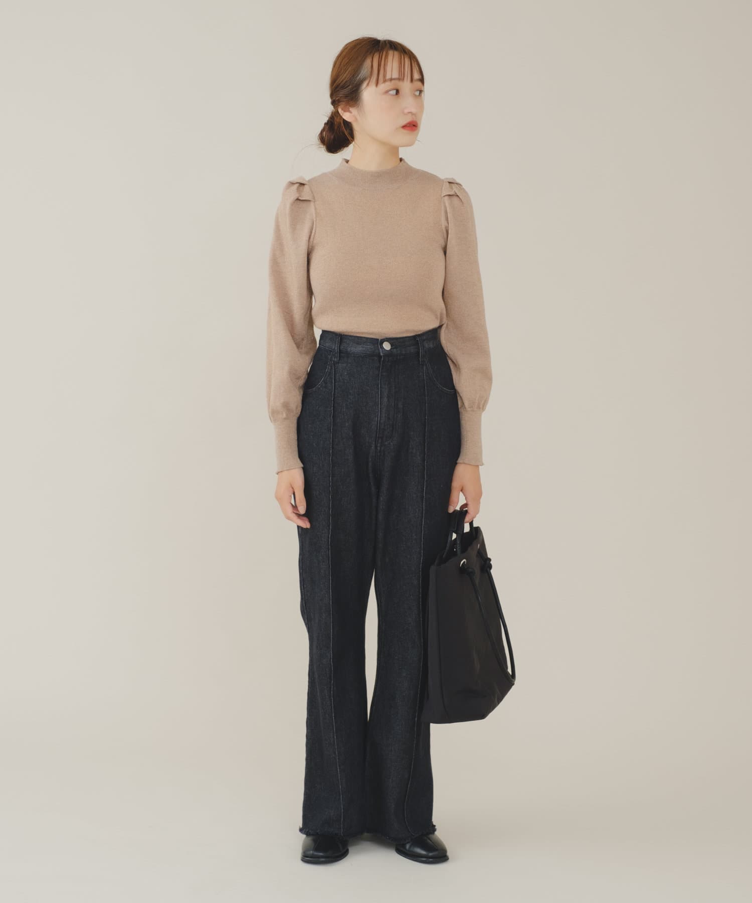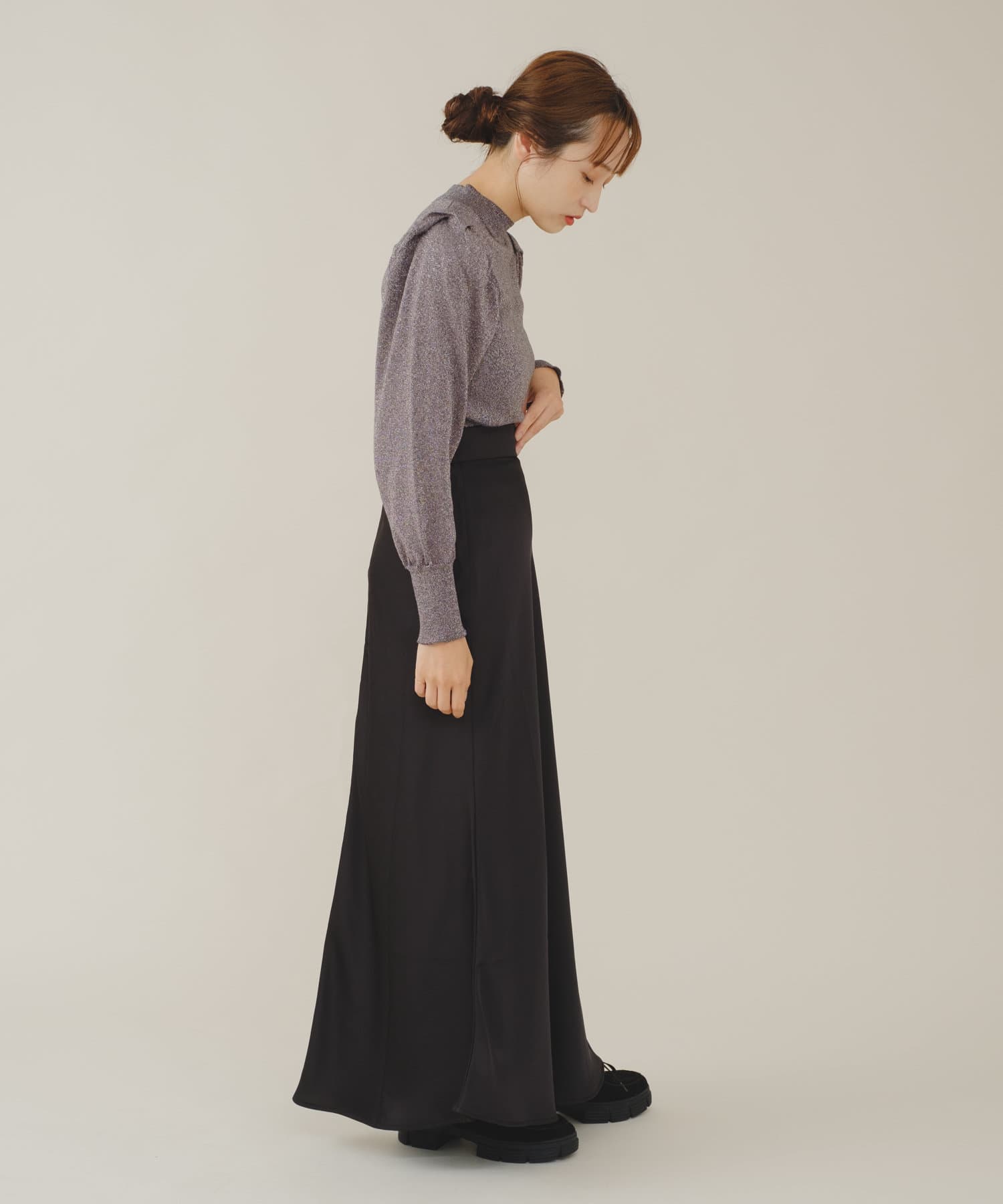 今年のトレンドのラメを使用したフェミニンな装いのパフニット