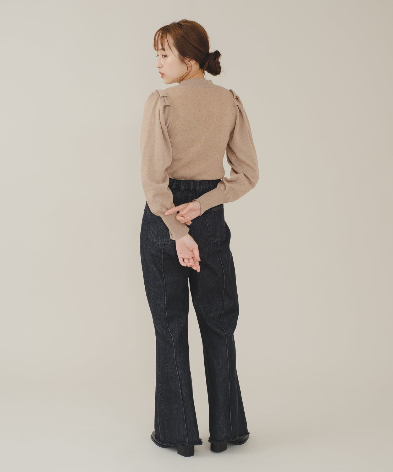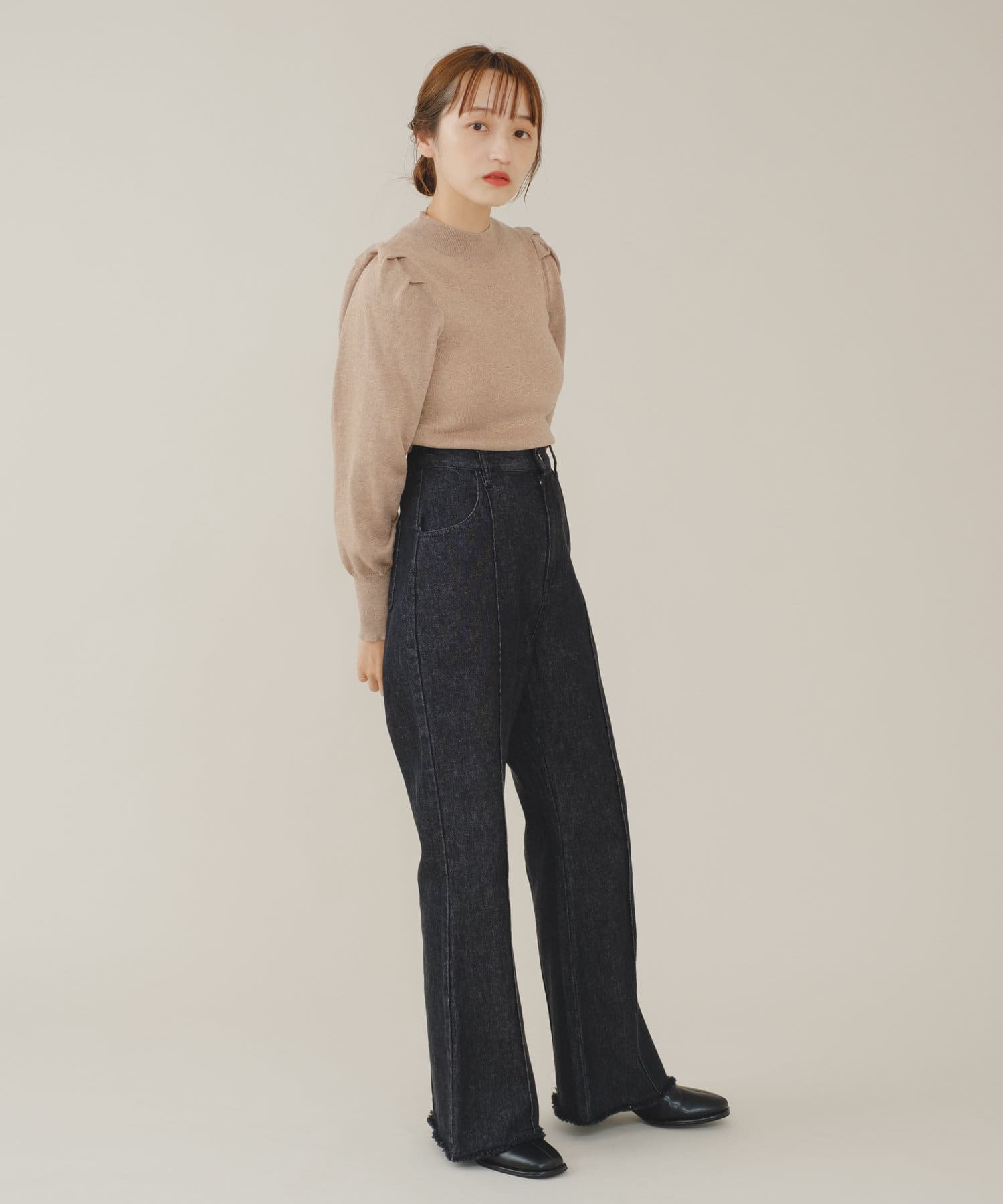 カジュアルなボトムから女性らしいボトムのシンプルな合わせがおすすめです。