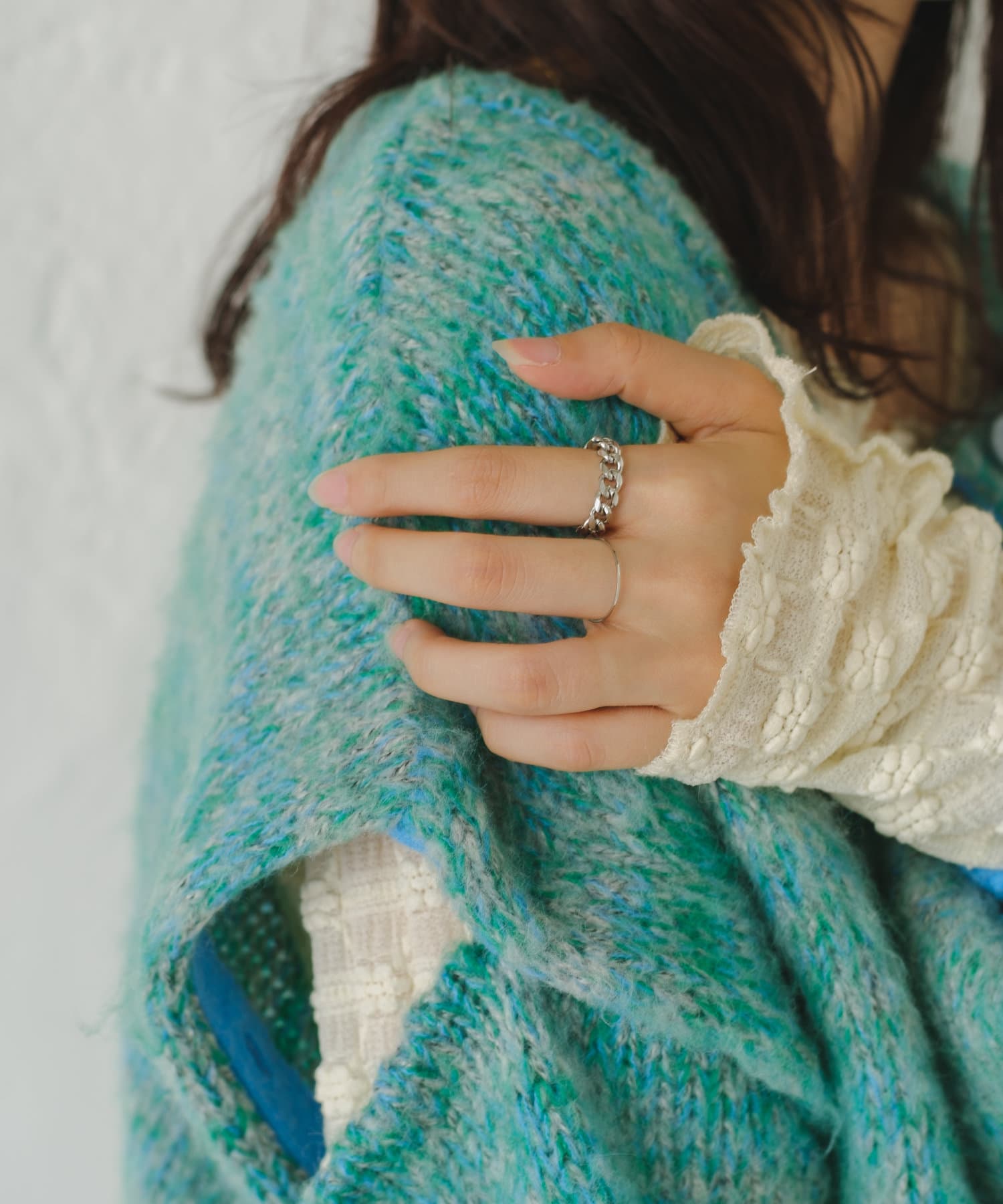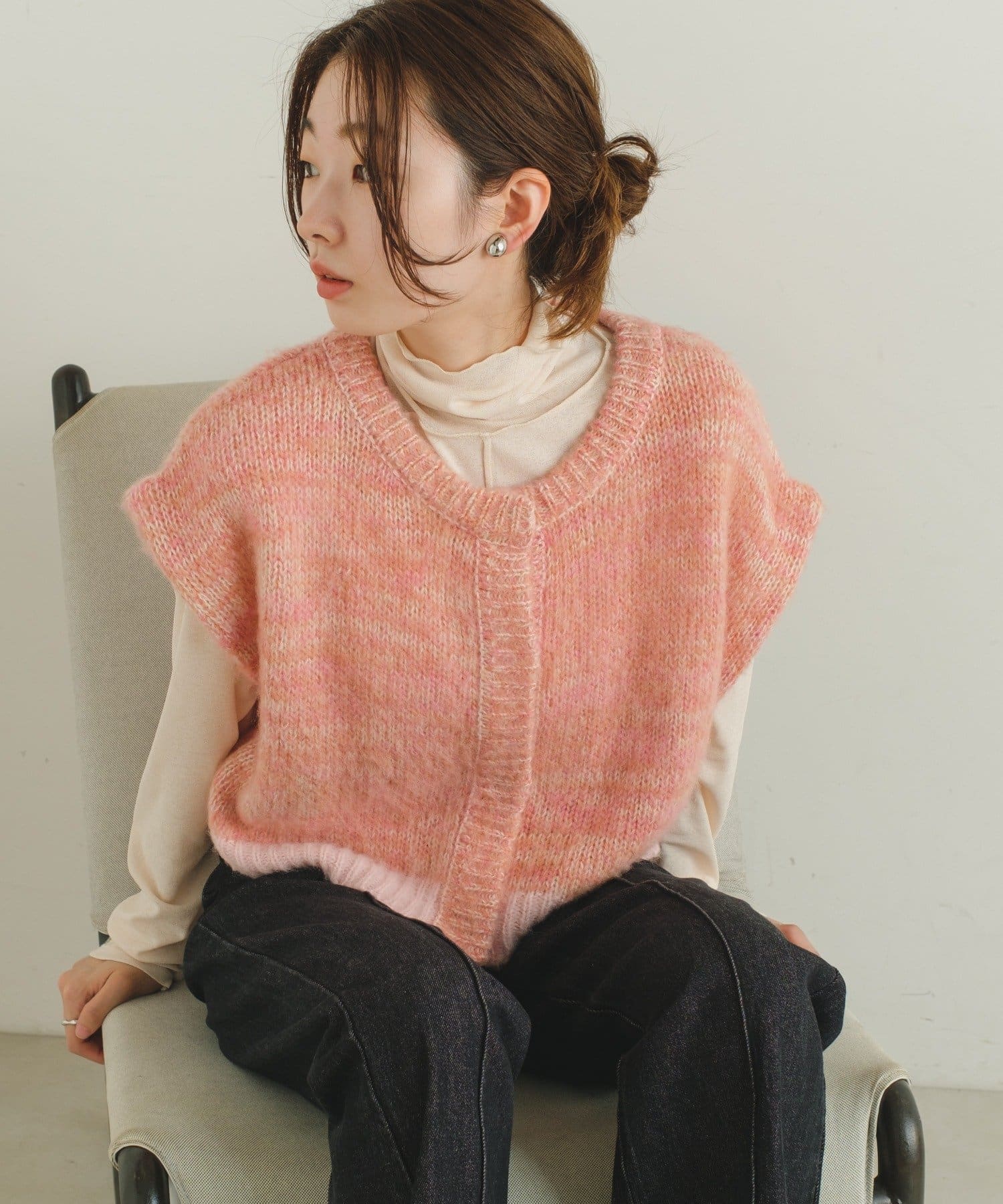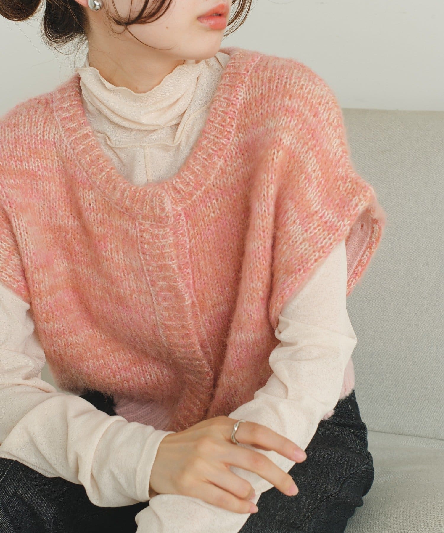 何種類かの糸で編まれているので、MIXされた糸がポイントになる今年らしい1枚。