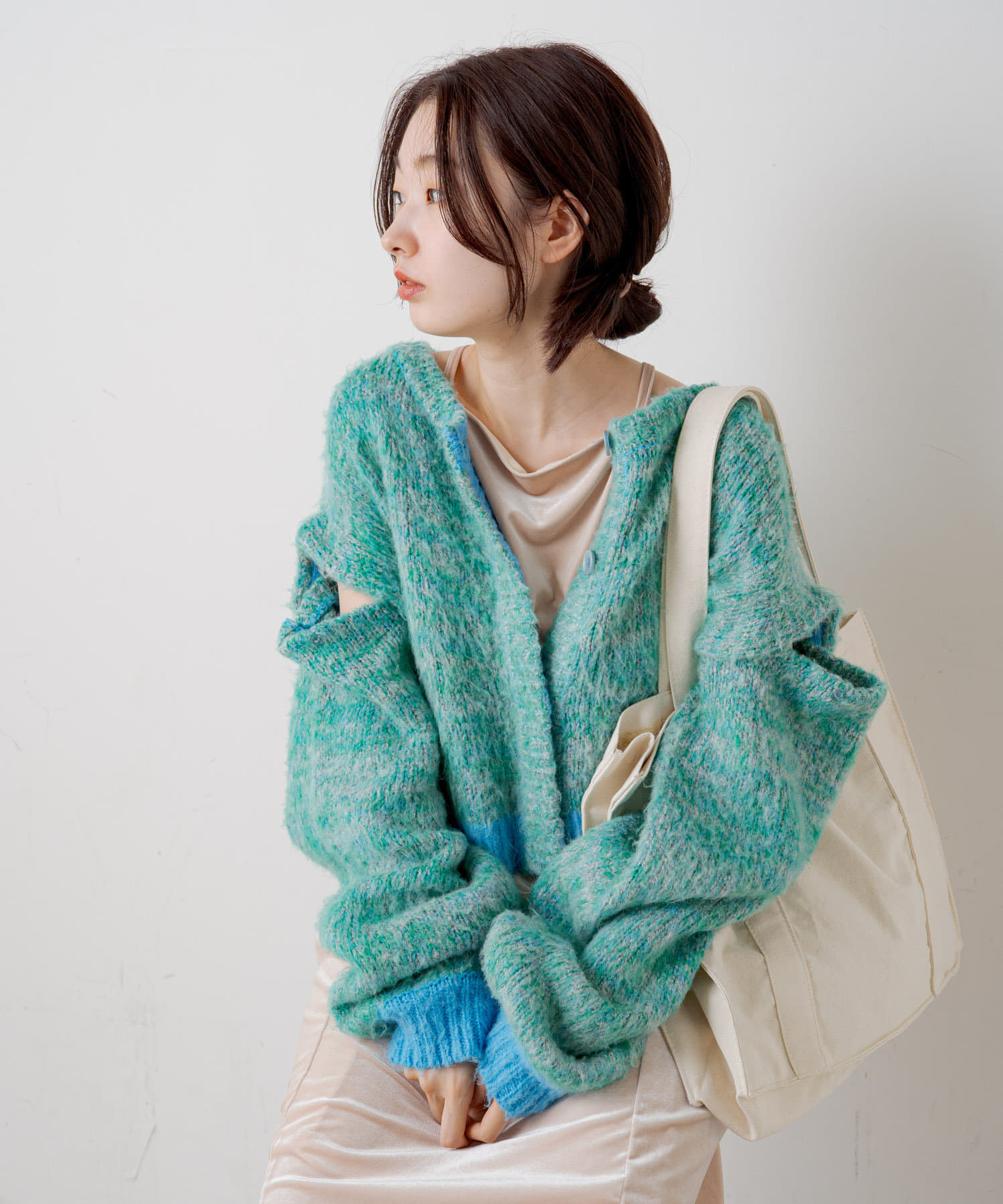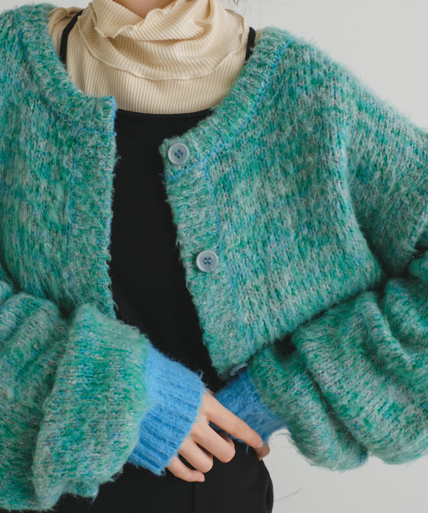【2022AWカタログ掲載】MIXヤーン起毛3WAYカーディガン
