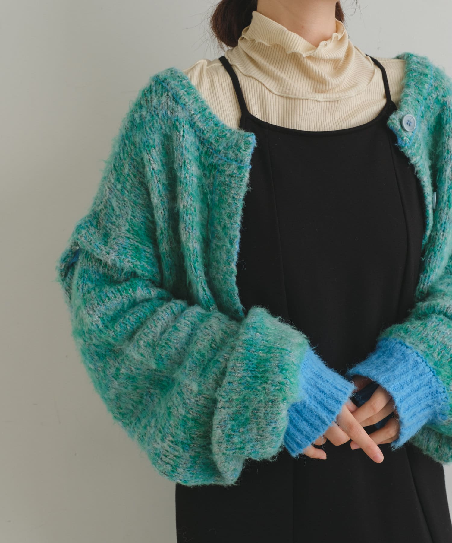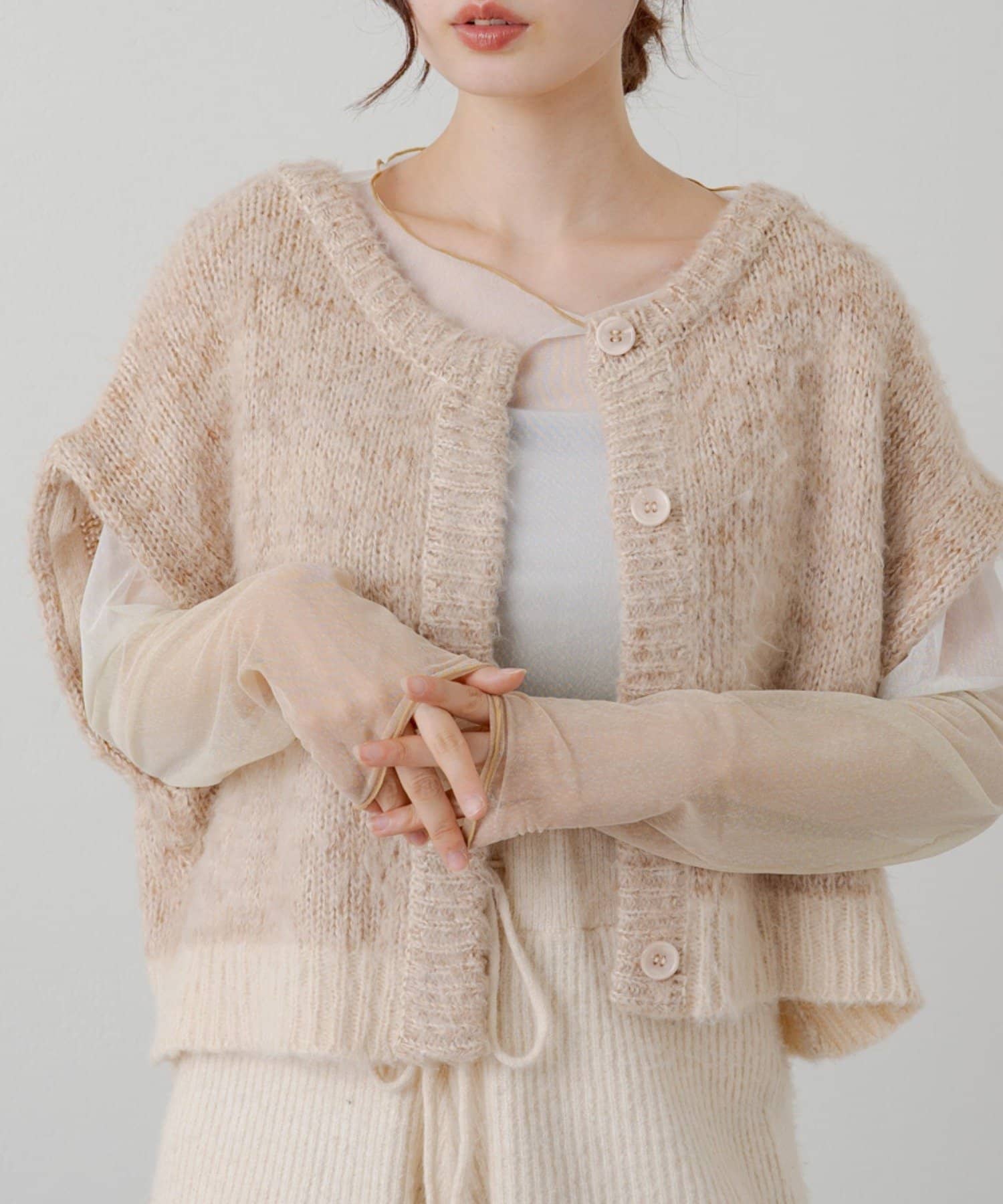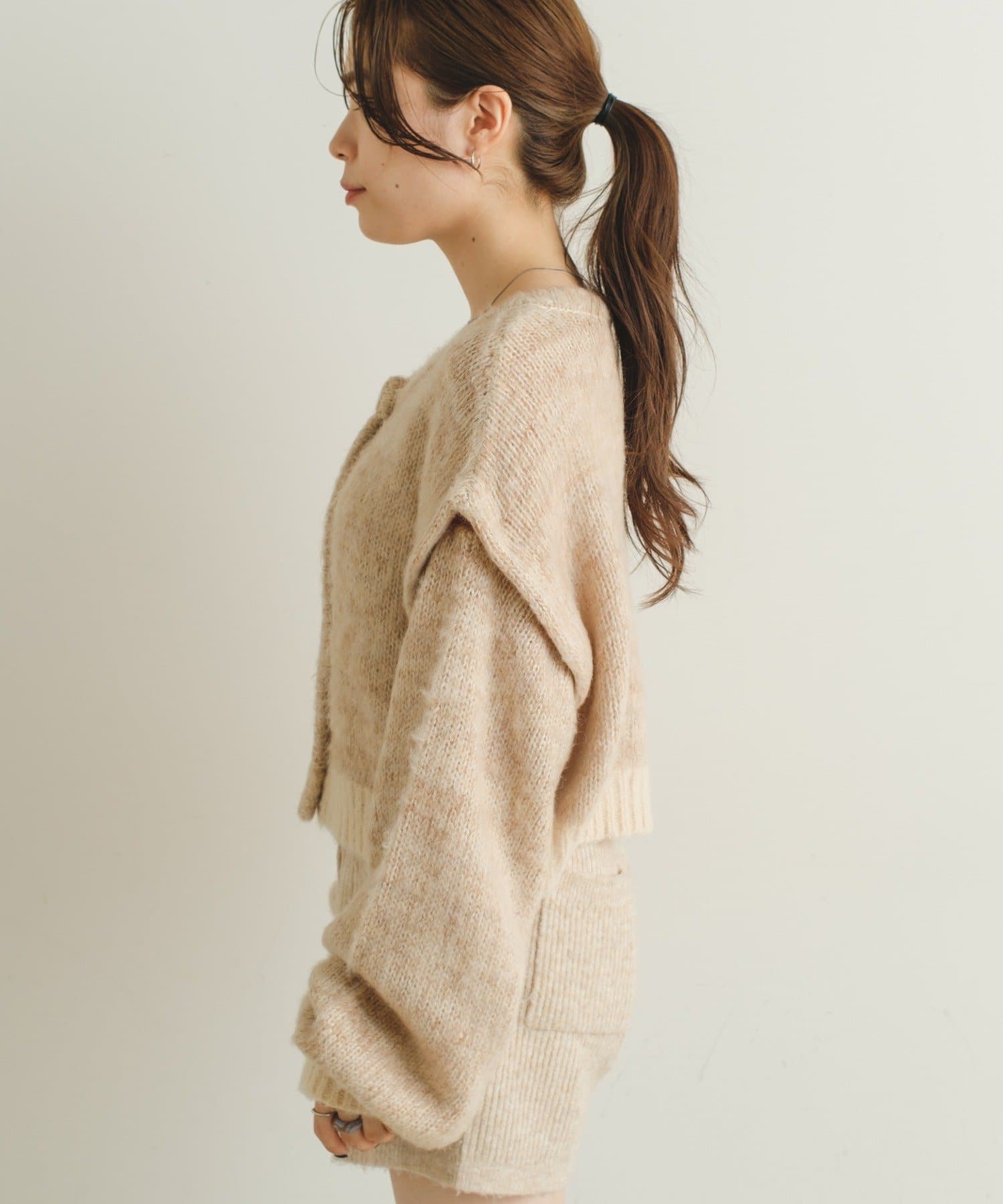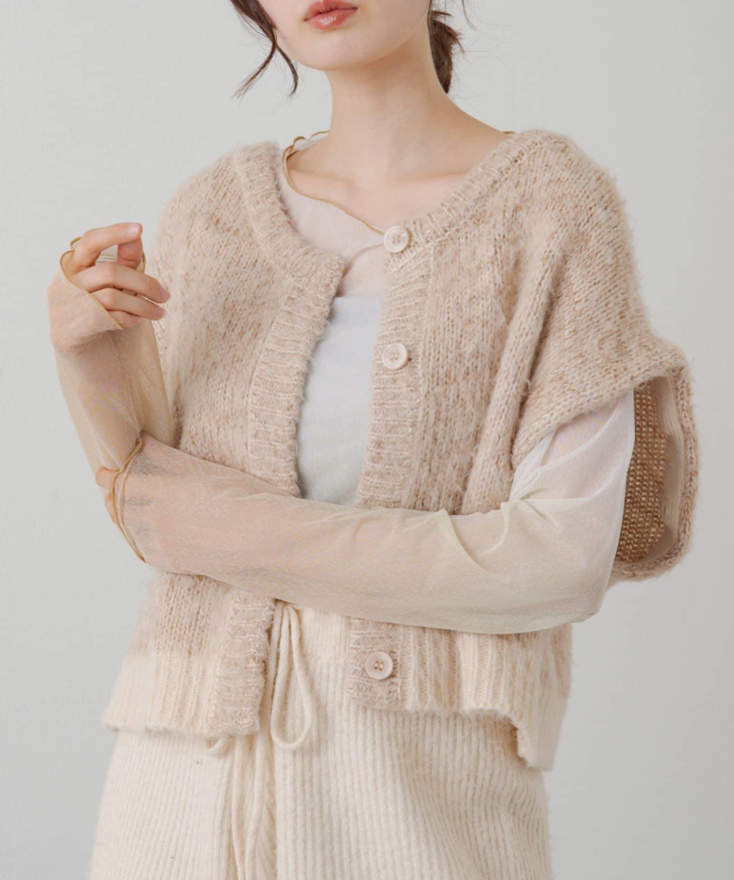 3WAYで着まわして頂けるMIX素材がかわいいカーディガンが登場しました。