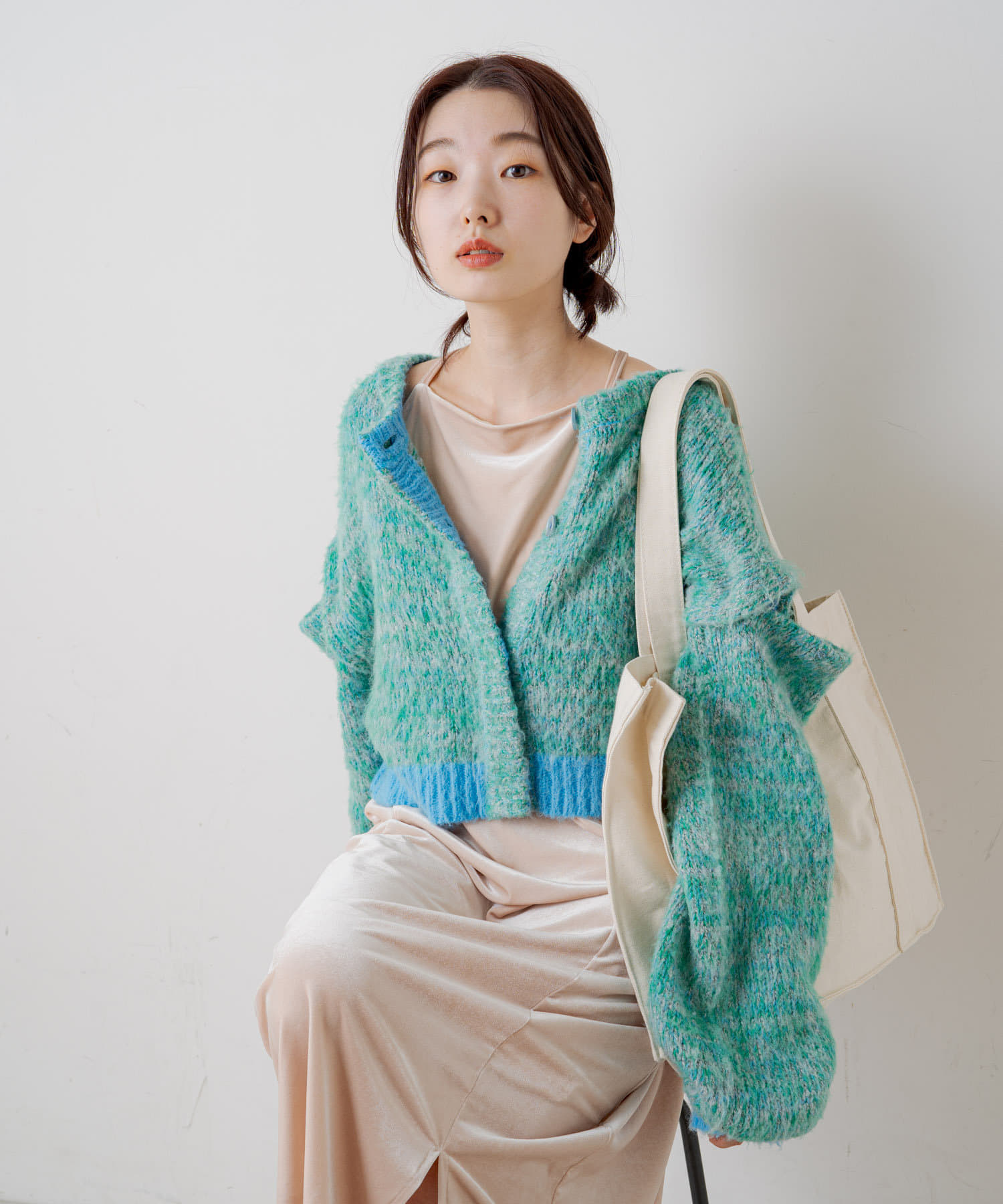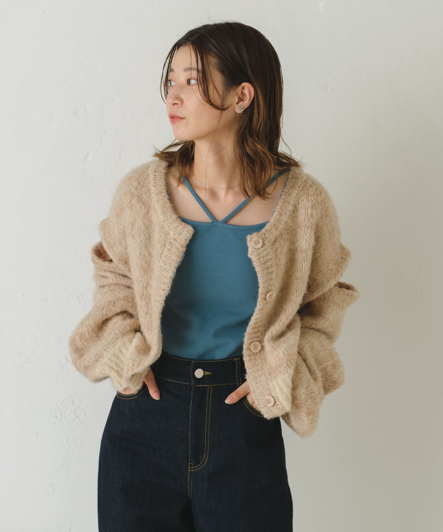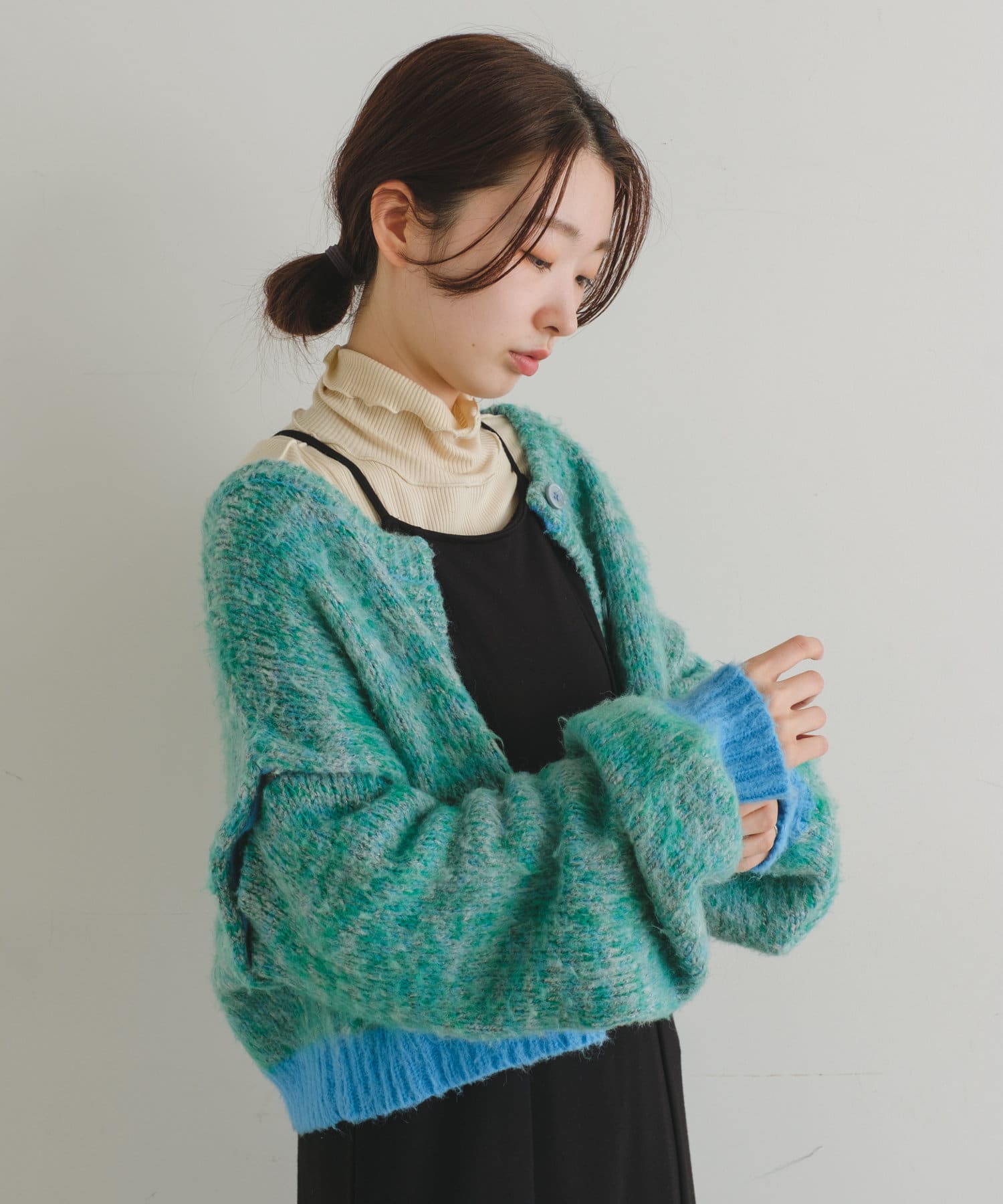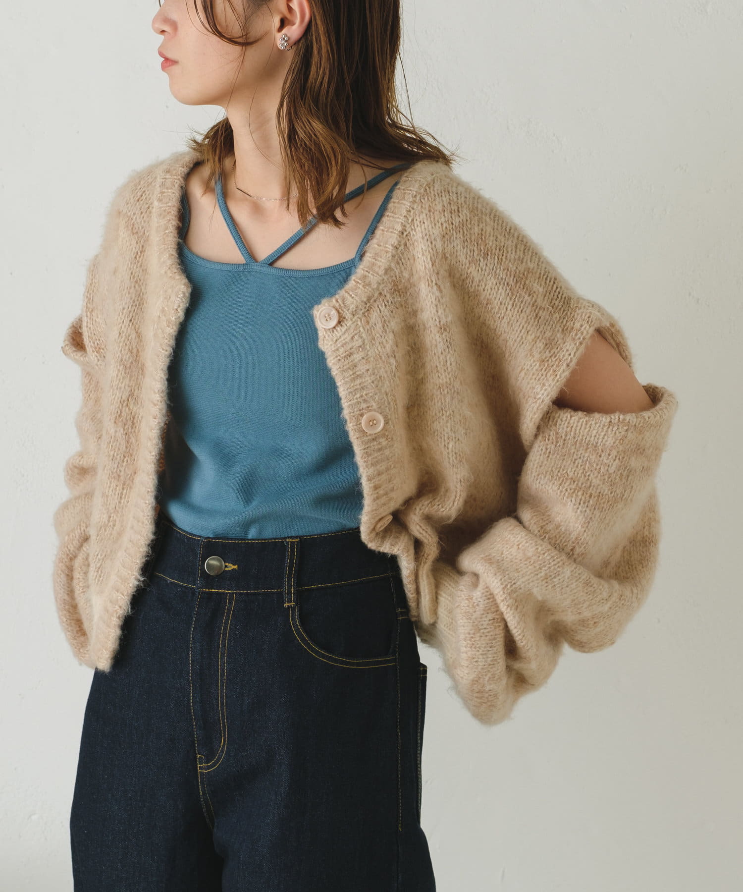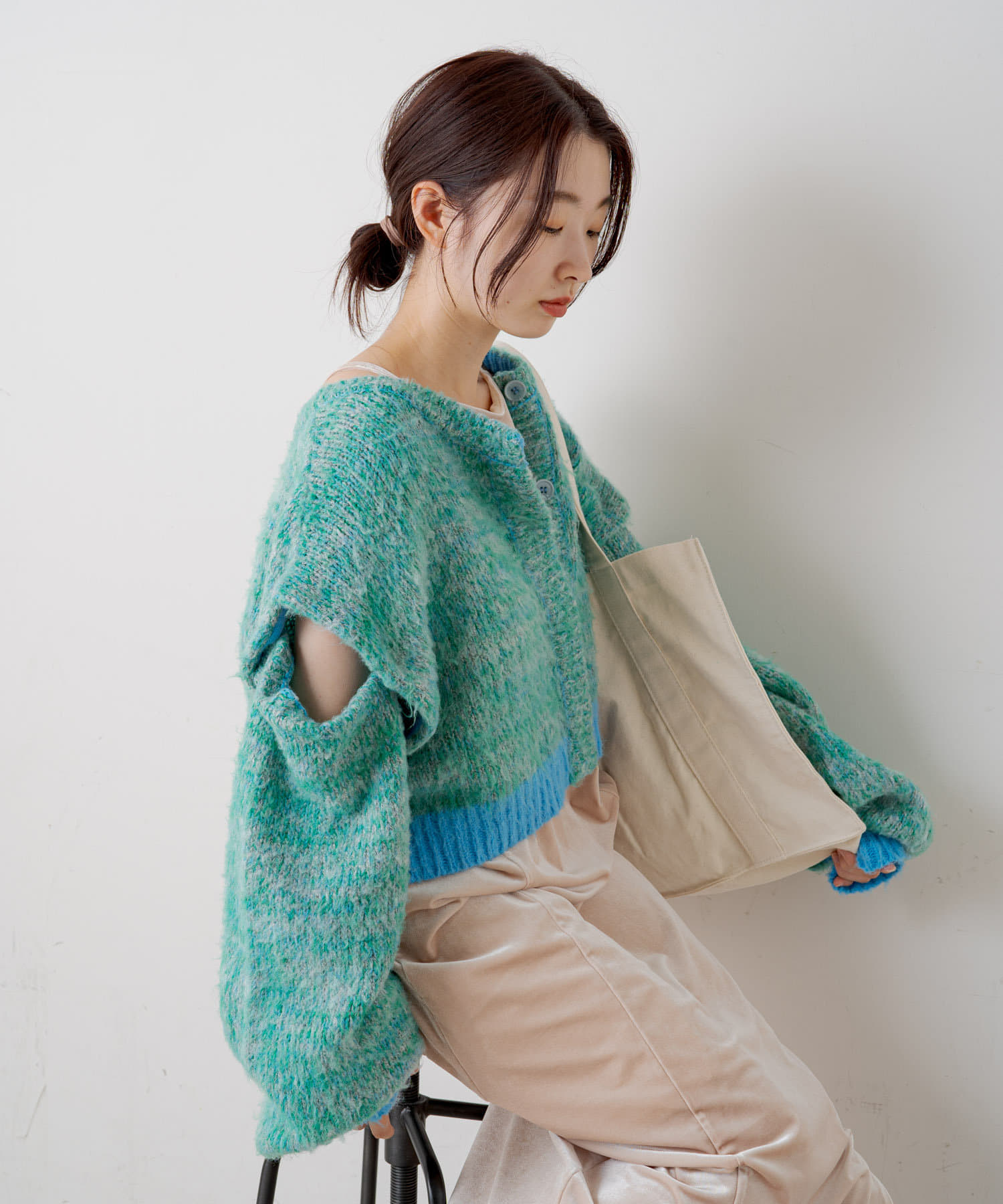 3WAYで着まわして頂けるMIX素材がかわいいカーディガンが登場しました。