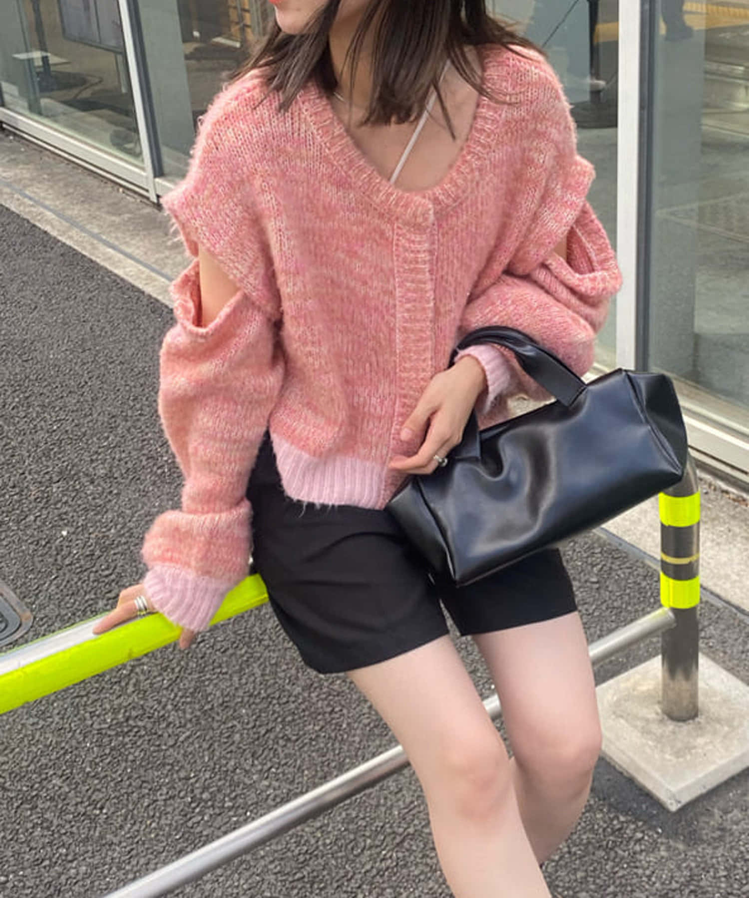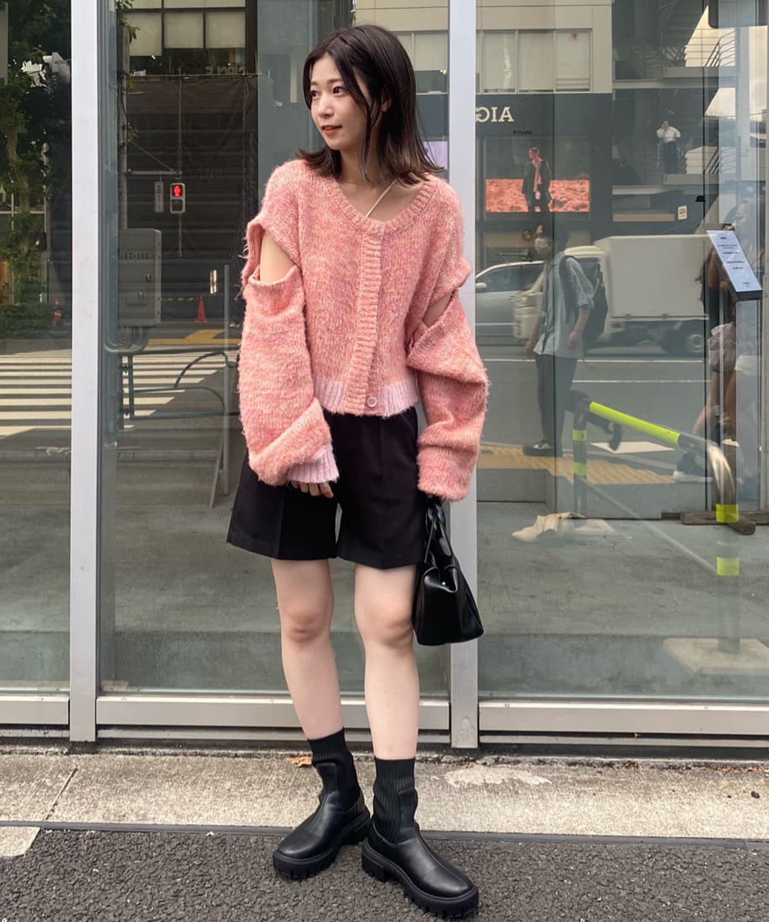 今はキャミでもいいですが、寒くなったら長袖インナーを仕込んで腕のボタン外してチラ見せしても可愛いなと思いました◎