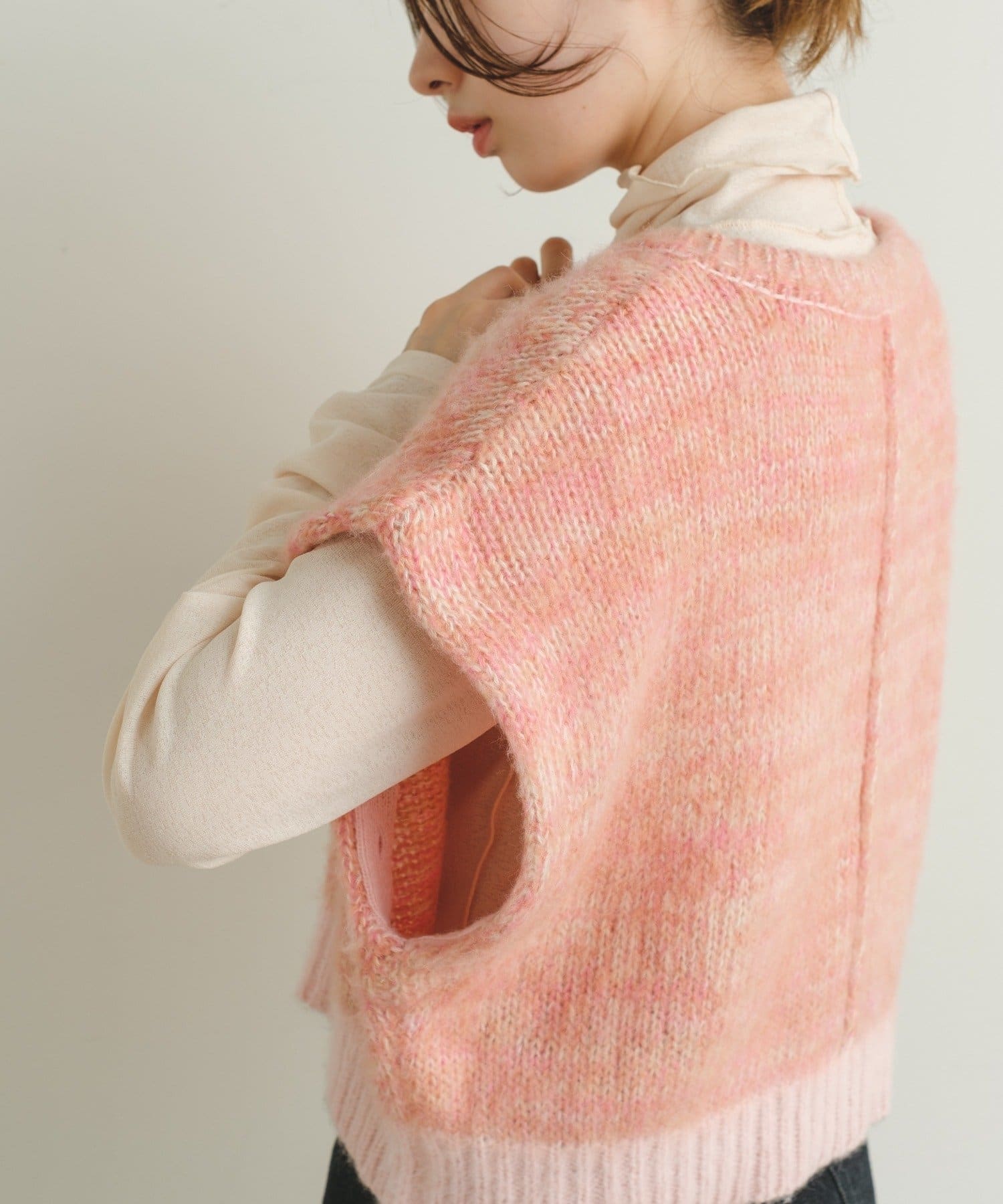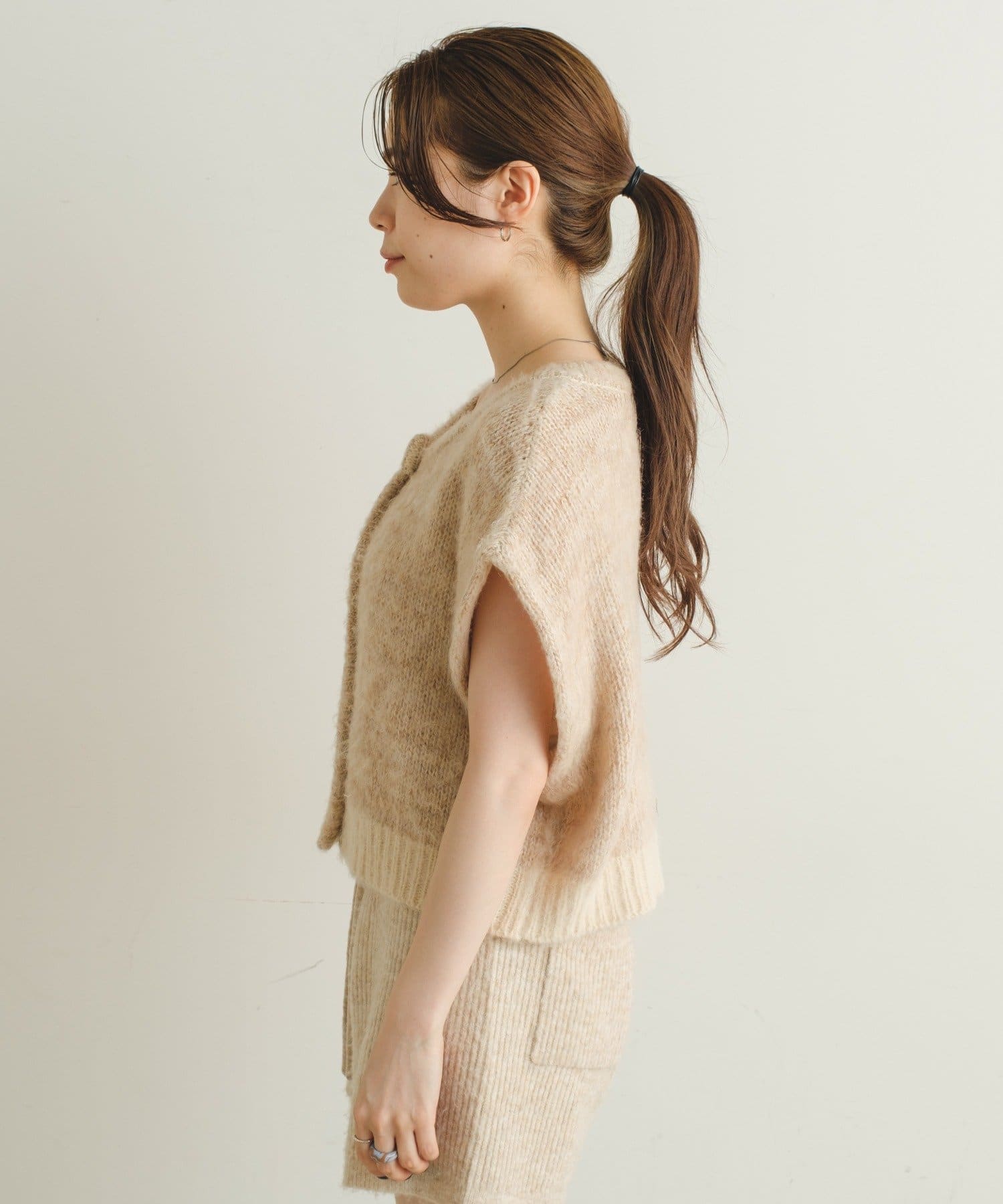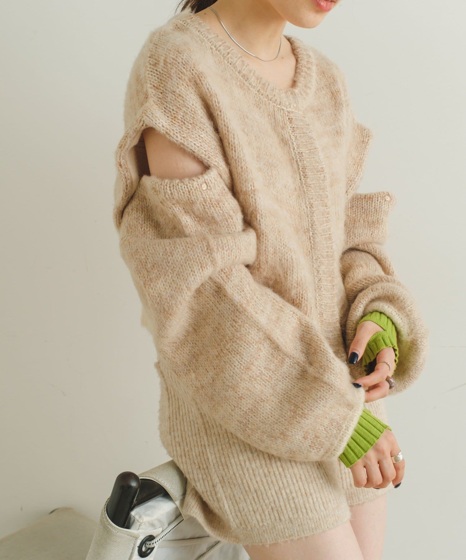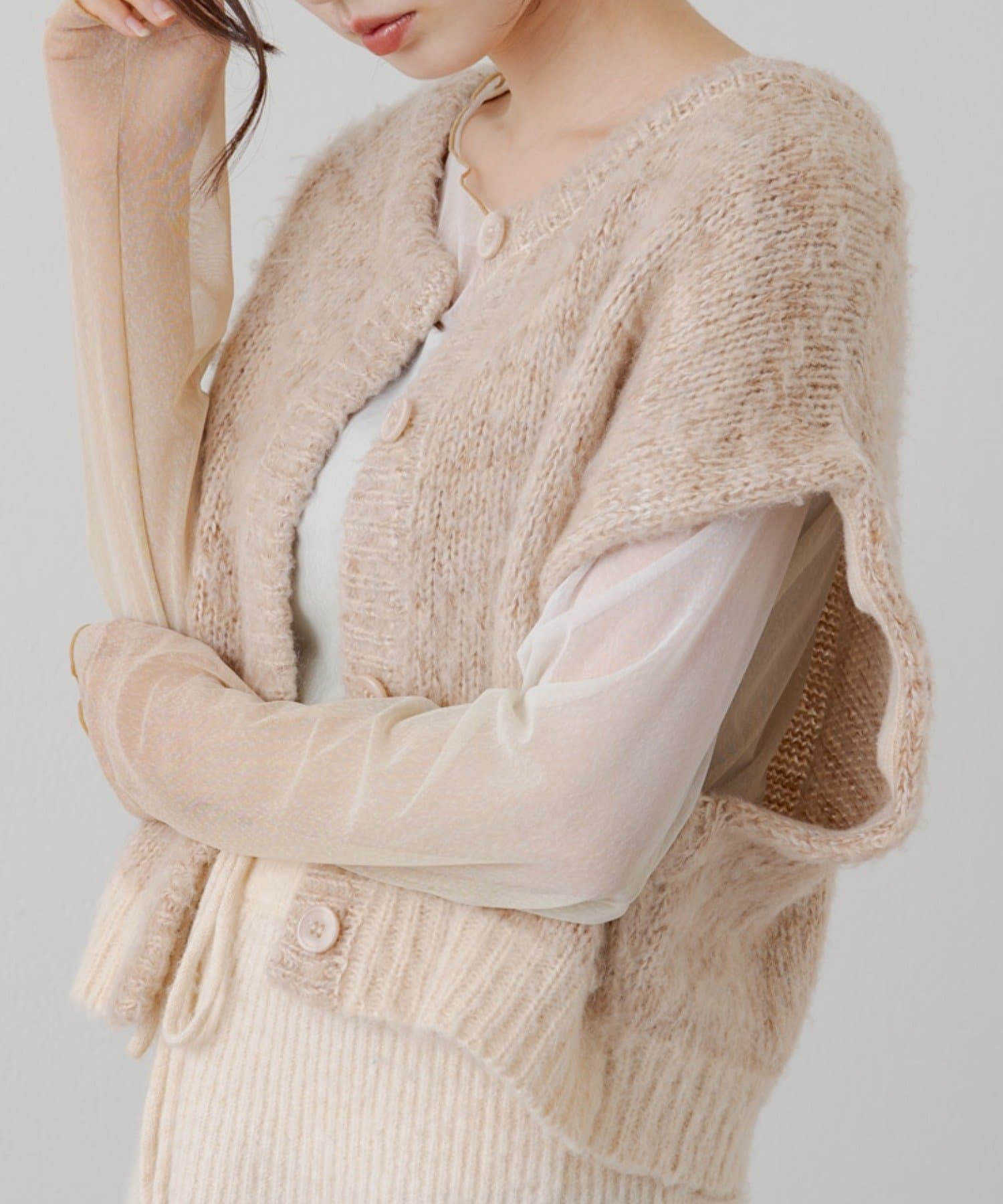 袖にボタンが付いている為、取り外すとニットベストとしてお使い頂けます。