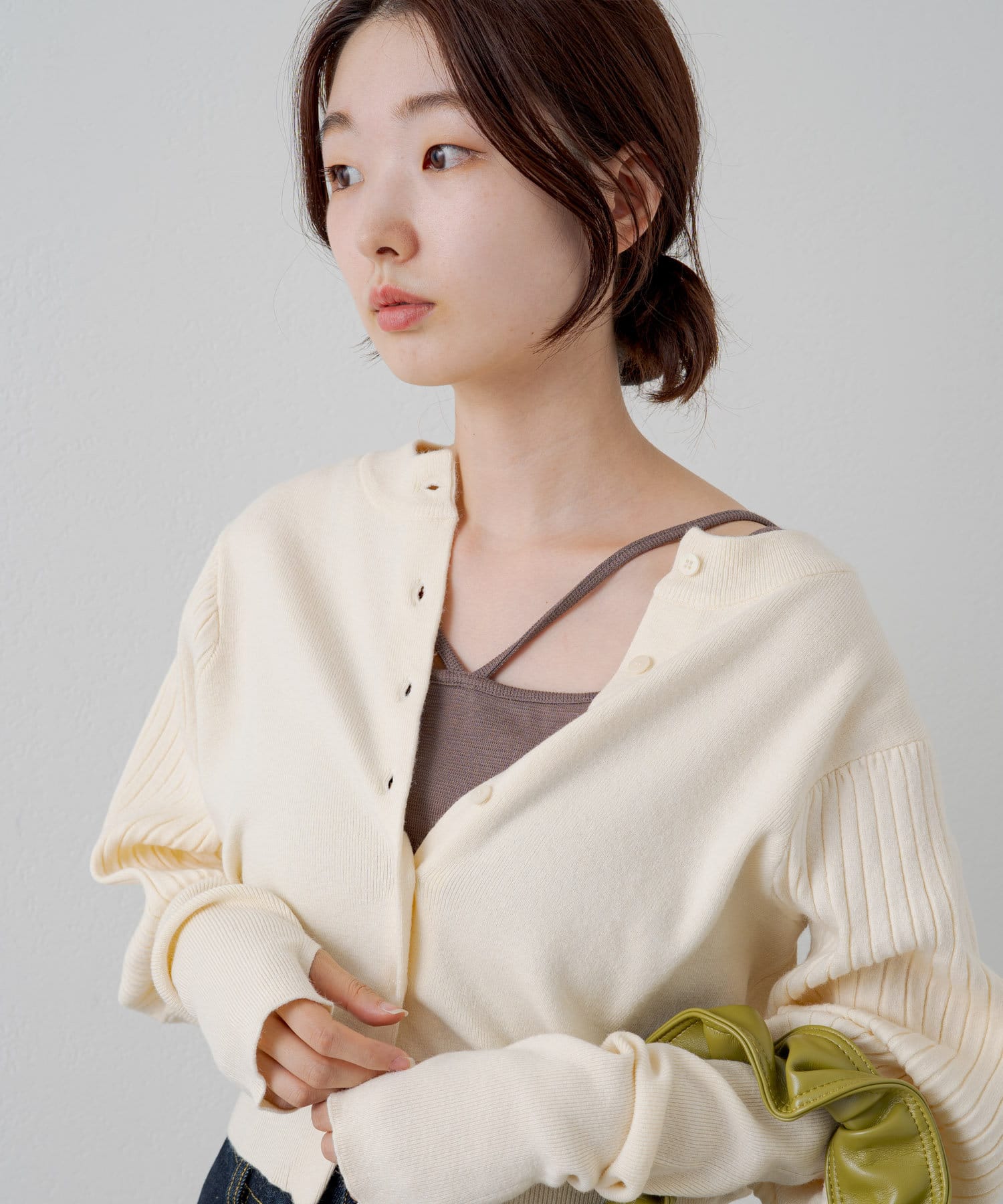 購入場所:店舗ボタンを開けても閉じてもかわいいし、キャミワンピの中に着てもかわいいです!