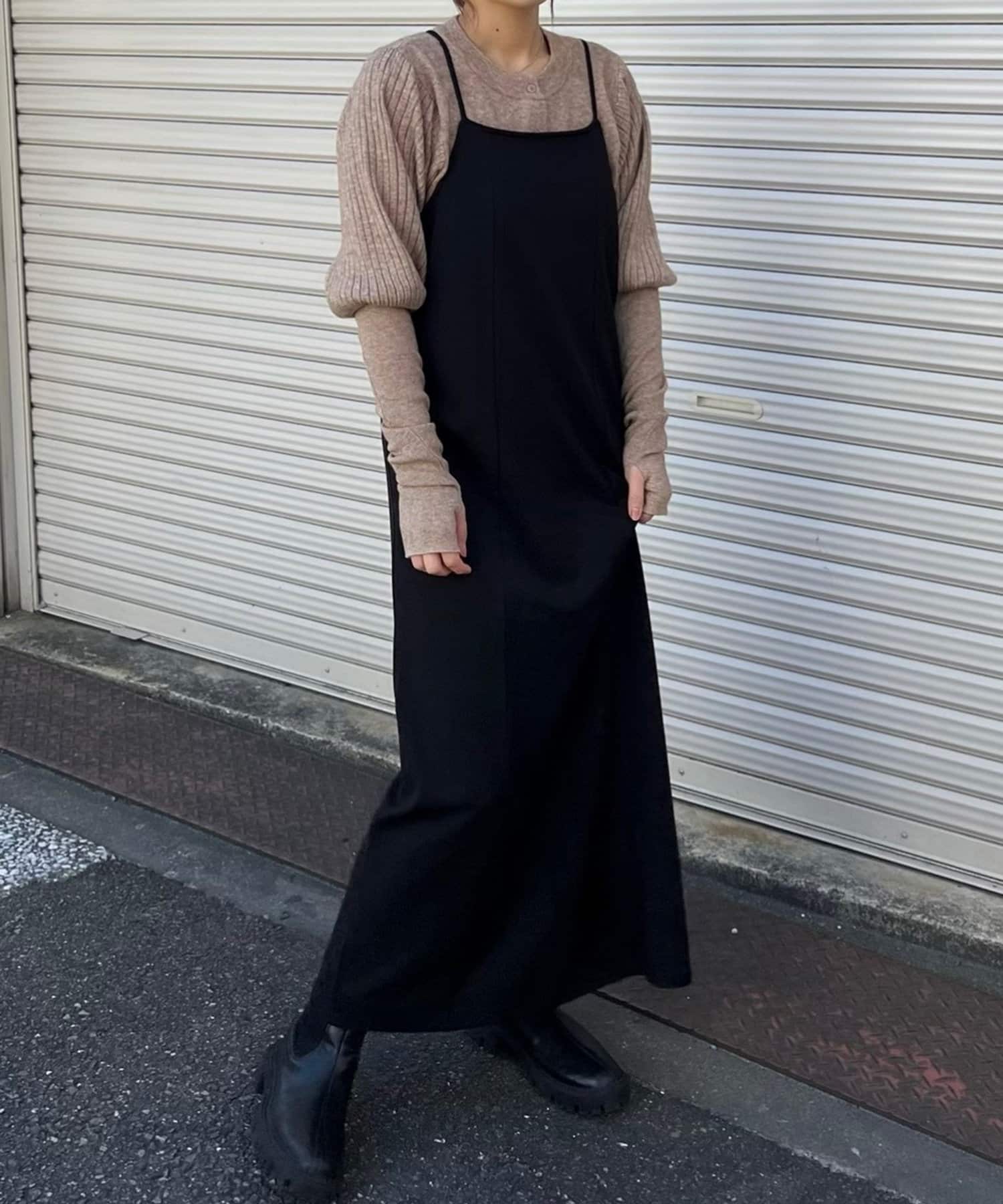 柔らかく厚手の生地ではないので細めのアウターとも相性抜群!