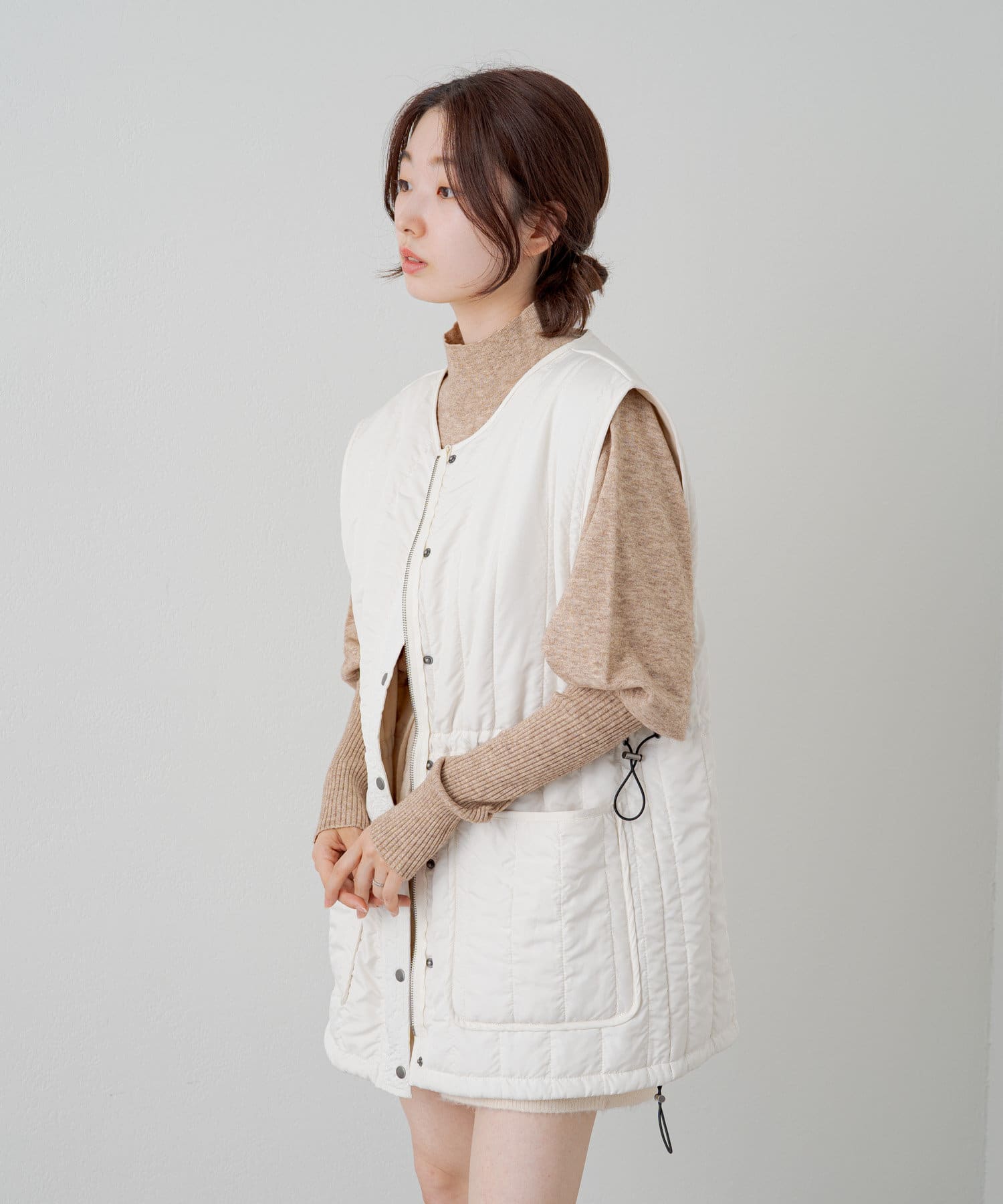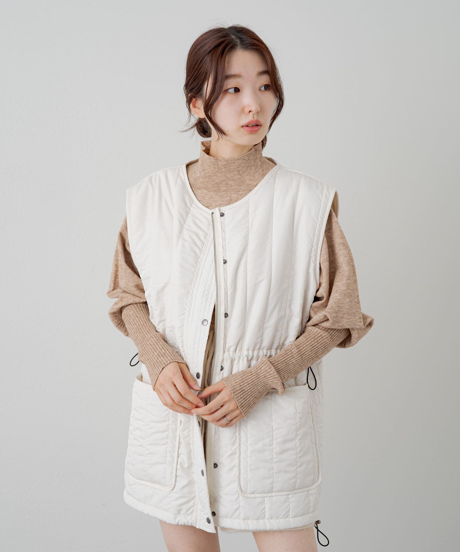 首元のハイネックが長すぎないので顔周りがスッキリして見えます!
