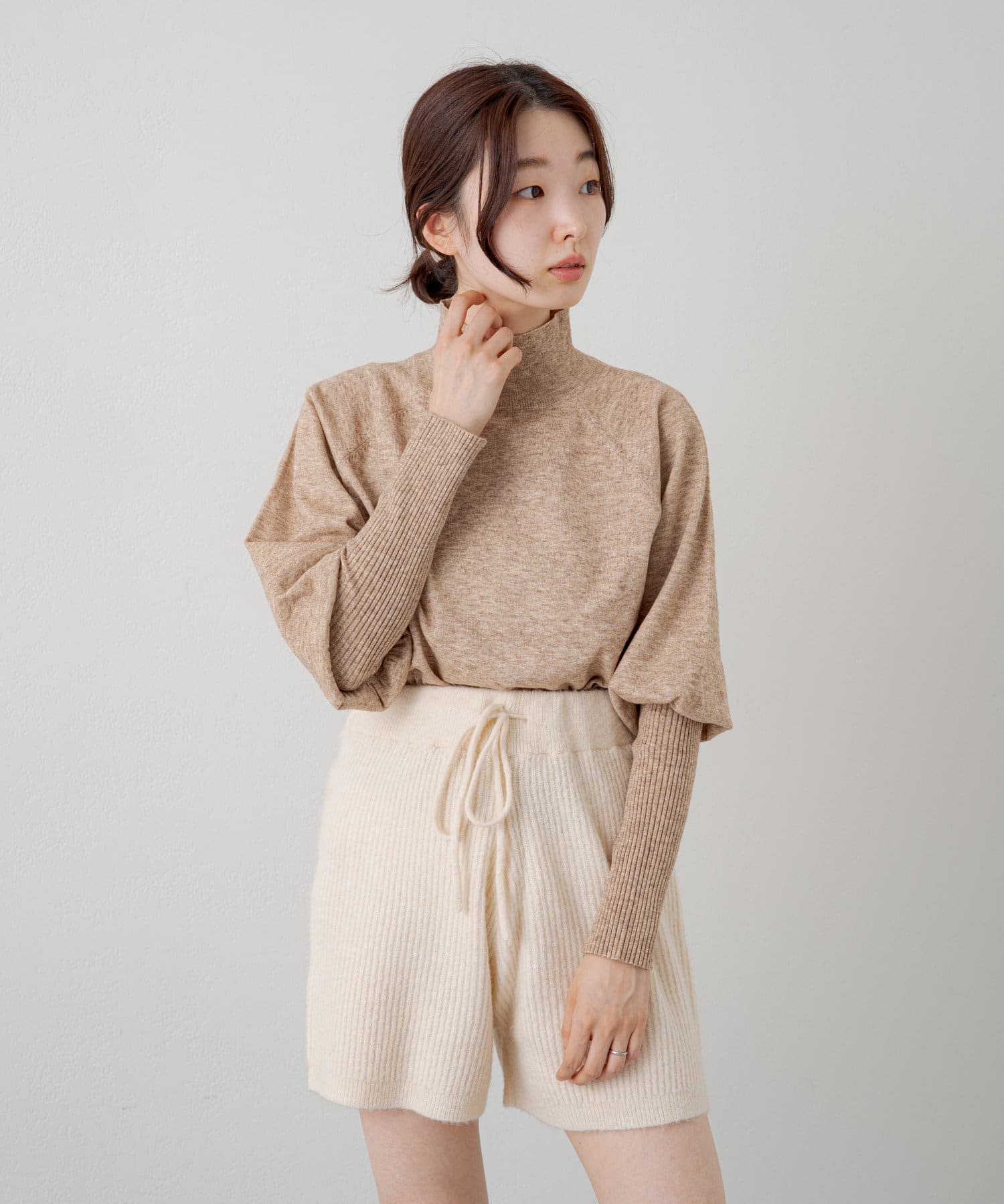 袖は途中から長めのリブになってるので、好きなように袖のふくらみを出せる感じです。