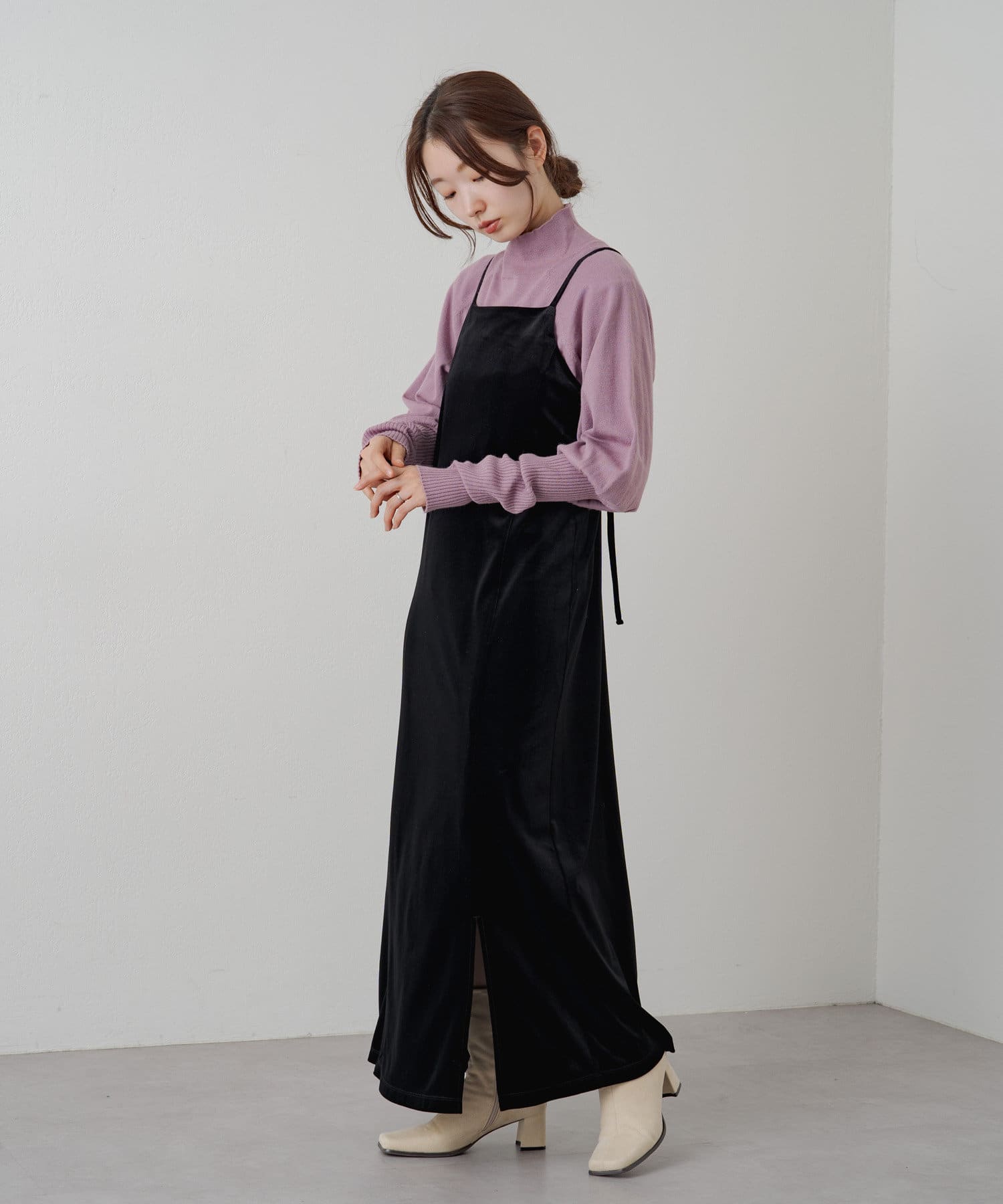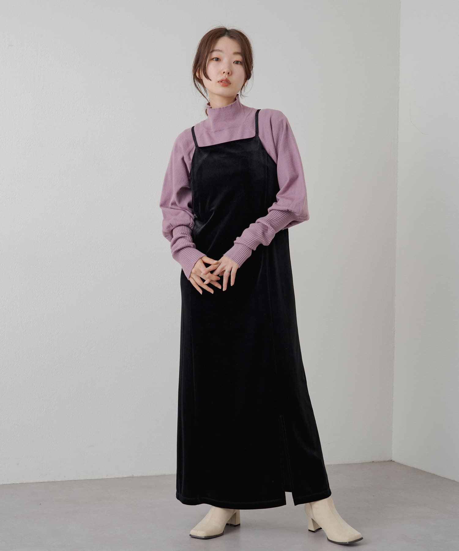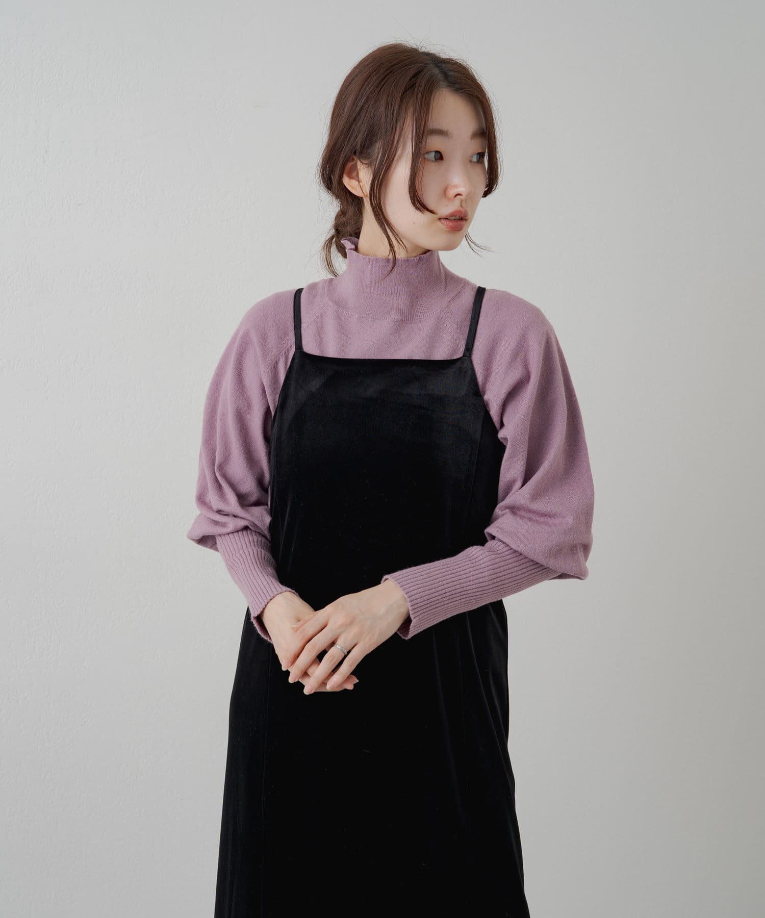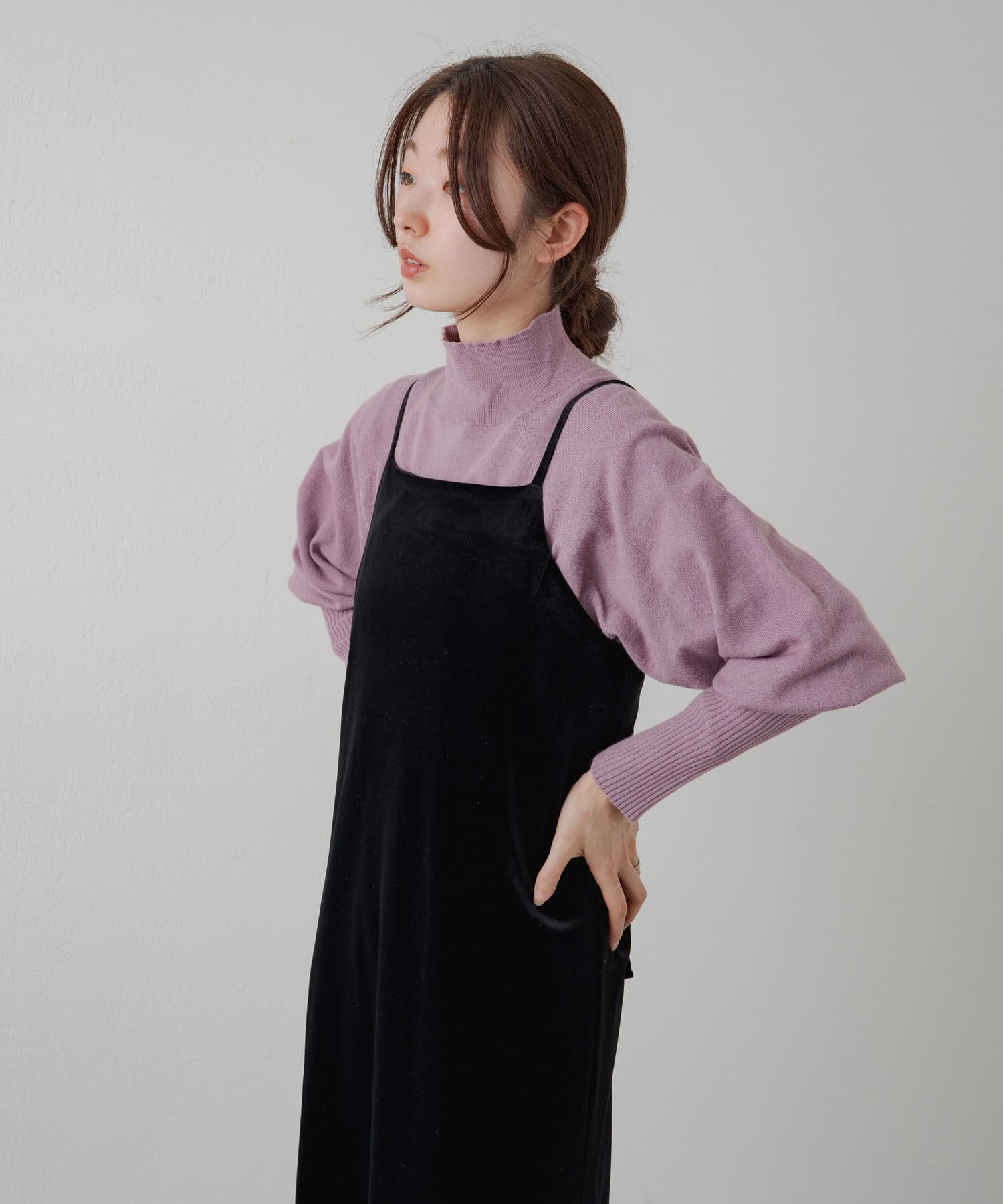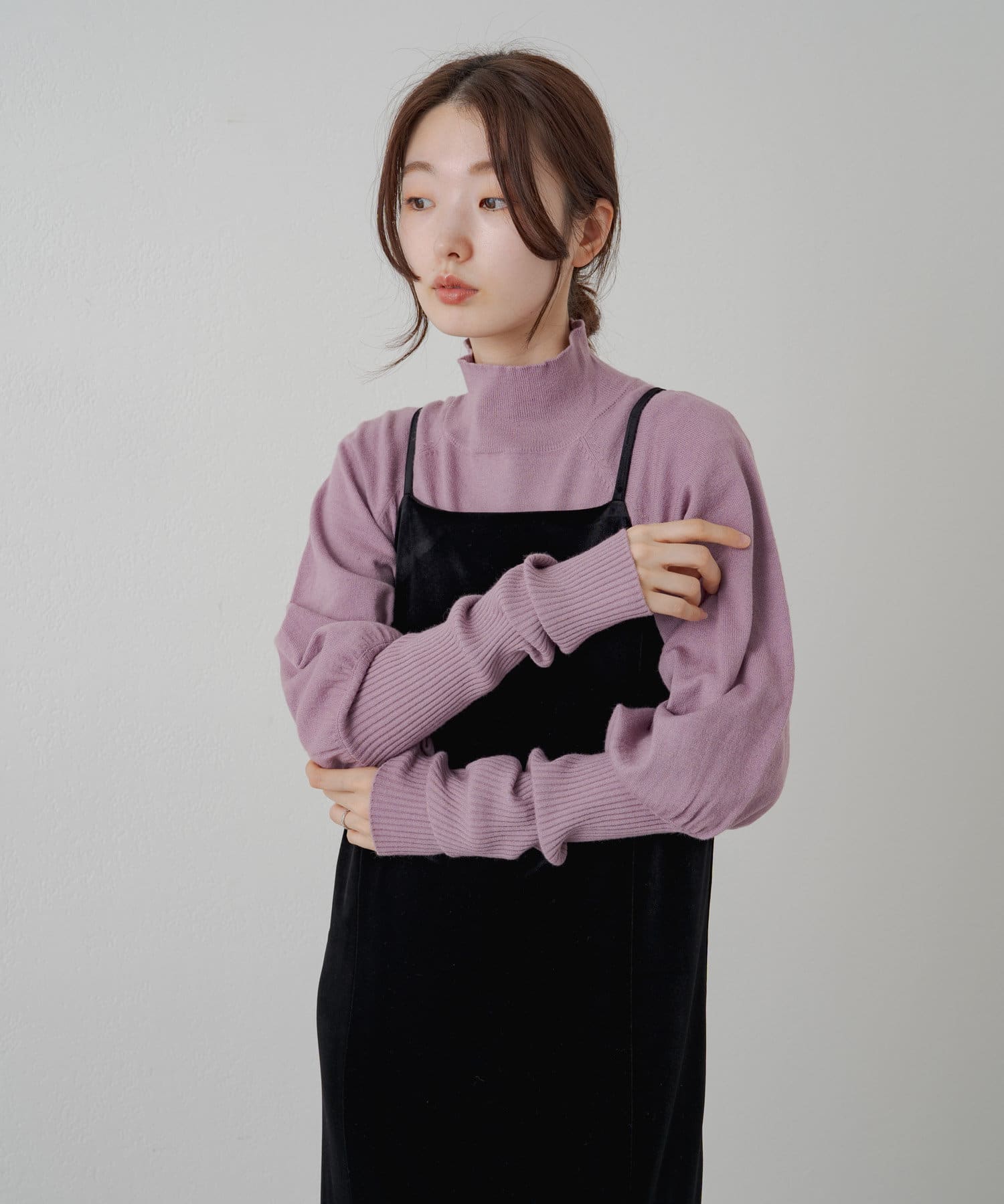 購入場所:店舗薄めだからキャミワンピのインナーとして使ったり、ハイネックの部分を出してチラ見せでレイヤードしても可愛い!