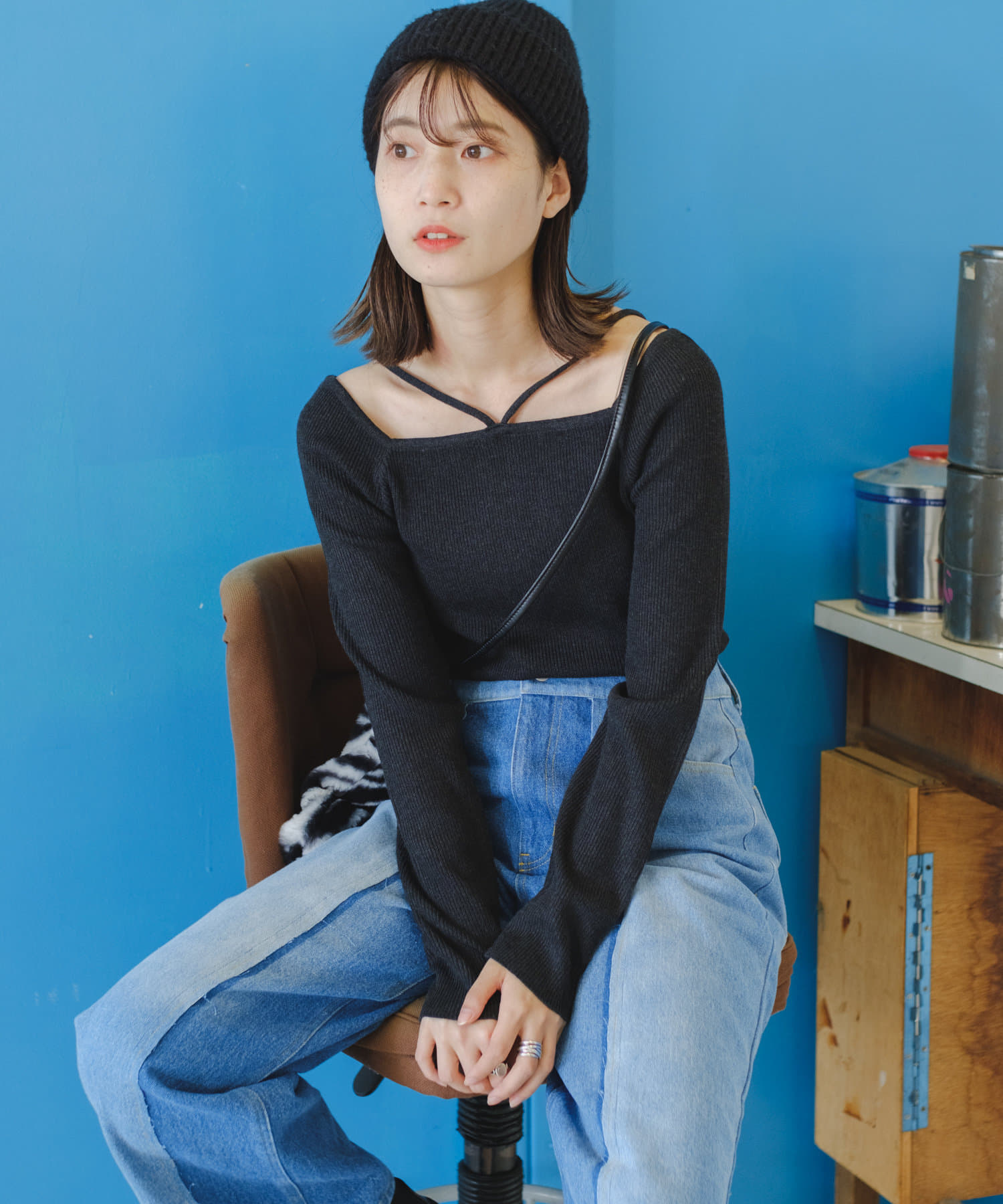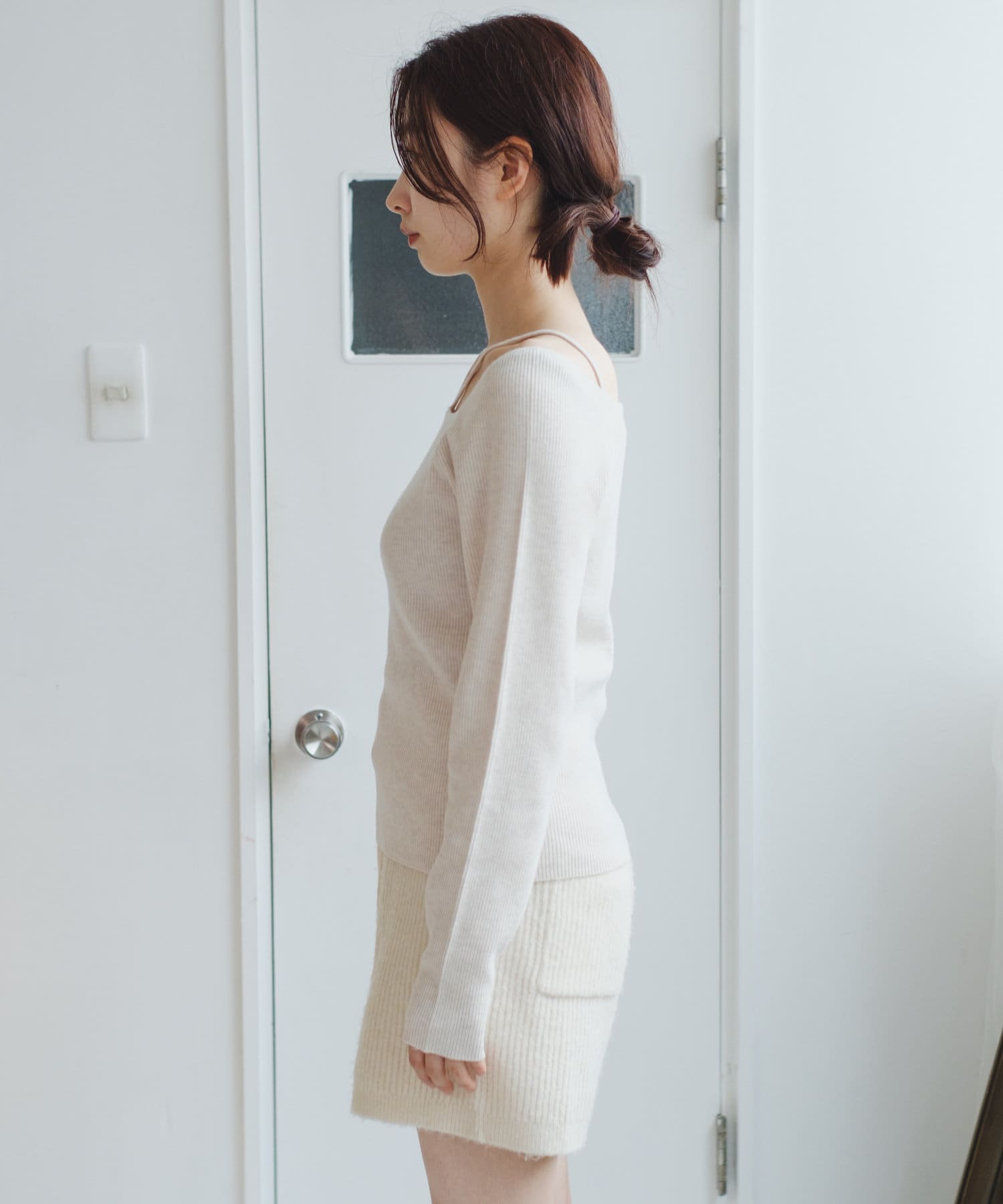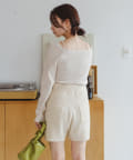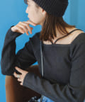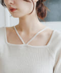 スクエアネック紐ニット