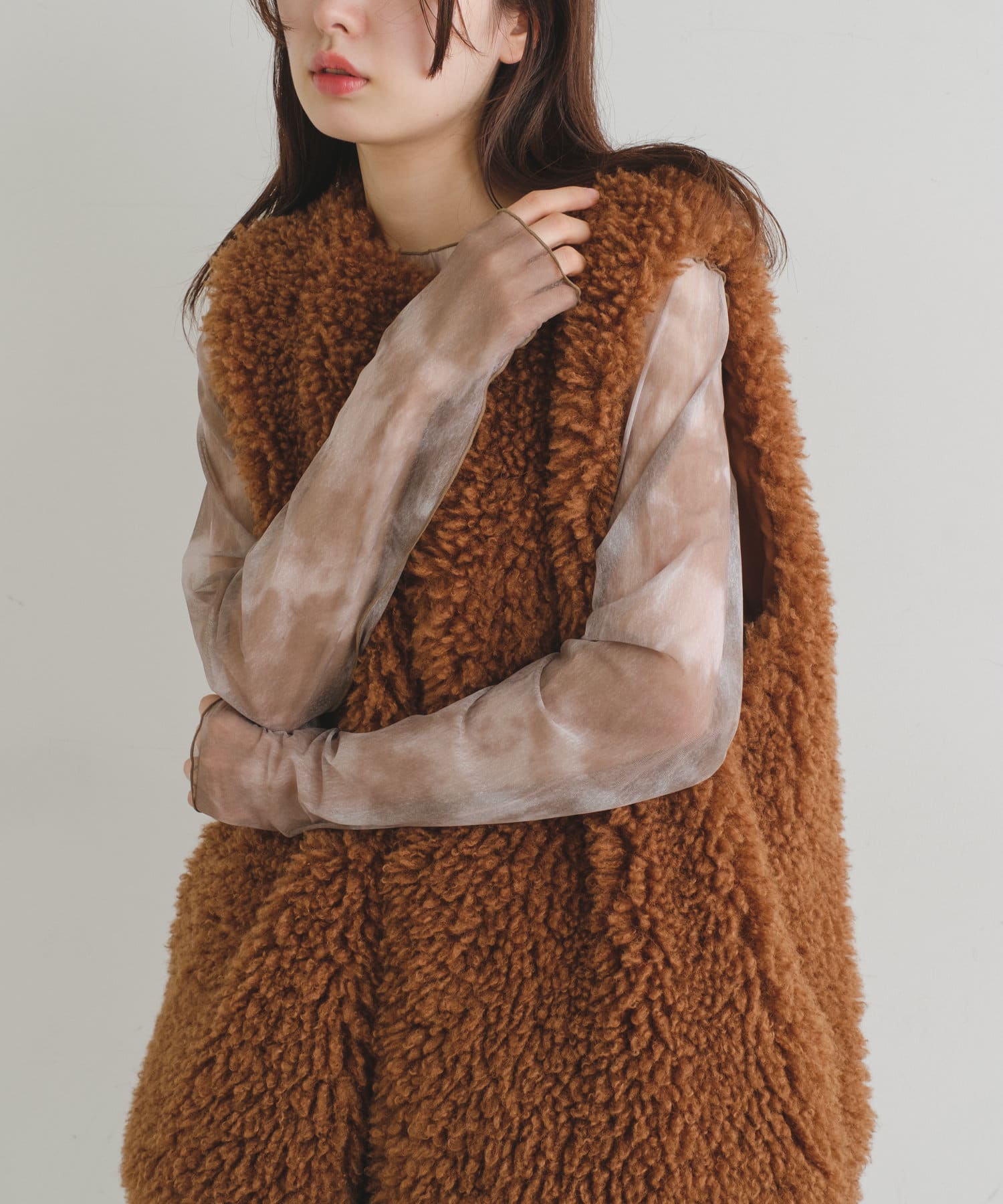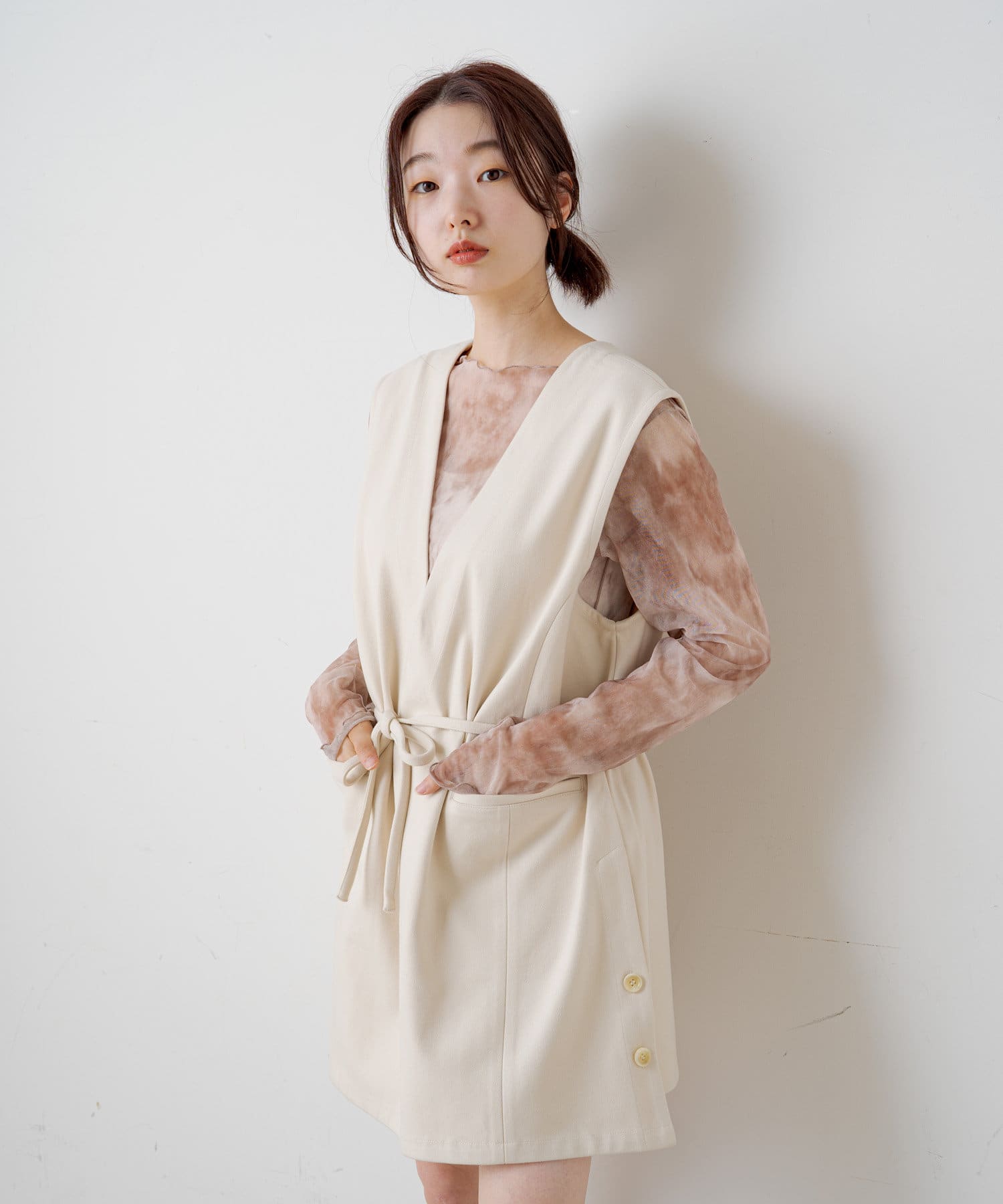 シアー素材×タイダイ柄で旬なレイヤードスタイルが叶う!